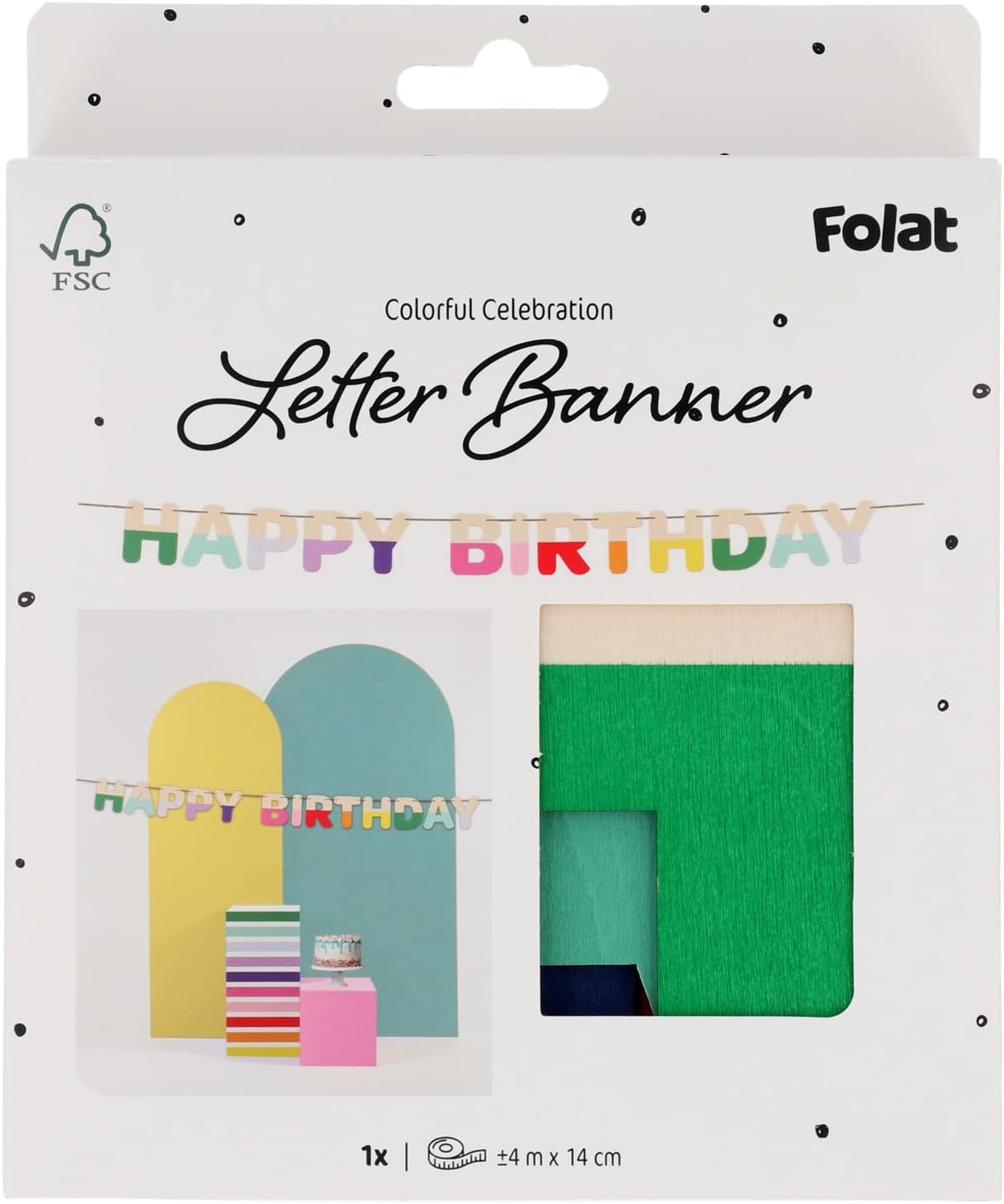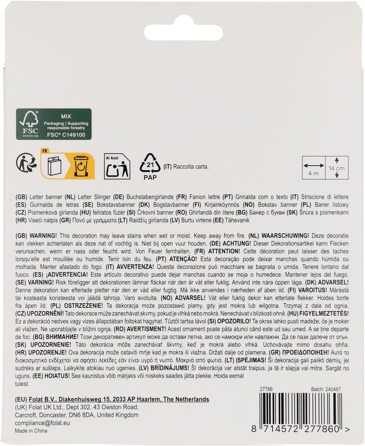 Una variante in legno del classico. Ghirlanda di Lettere - Legno - "HAPPY BIRTHDAY" - Stripetastic - 4 m. Una collezione per feste allegra e attraente con strisce luminose e colorate per tutti. Offre una gamma molto ampia di articoli divertenti e festosi che possono essere utilizzati per qualsiasi celebrazione o evento durante tutto l'anno. Ad esempio da utilizzare durante le seguenti occasioni di festa / celebrazione: Compleanno, Festa per bambini. La classica ghirlanda di lettere, ma in legno. Le lettere formano "HAPPY BIRTHDAY" e sono colorate ciascuna con un colore diverso nella parte inferiore. Le lettere misurano 11 x 14 x 0,3 e possono essere spostate sul nastro beige. Poiché questo striscione con lettere è realizzato in feltro, può essere utilizzato per più compleanni. Questa stamina fa parte della collezione Stripetastic di Folat. Questo articolo è realizzato in legno.