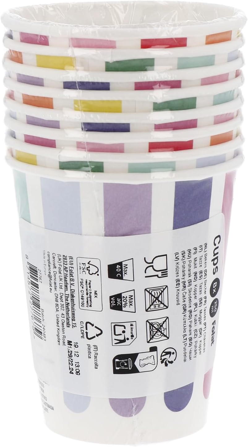 Brindisi sempre festosi! Biecchieri - Stripetastic - 250 ml - 8 pezzi. Una collezione per feste allegra e attraente con strisce luminose e colorate per tutti. Offre una gamma molto ampia di articoli divertenti e festosi che possono essere utilizzati per qualsiasi celebrazione o evento durante tutto l'anno. Ad esempio da utilizzare durante le seguenti occasioni di festa / celebrazione: Compleanno, Festa a tema, Festival. Questi tovaglioli a righe colorate stanno sempre bene sulla tavola. I tovaglioli fanno parte della collezione Stripetastic di Folat. Contiene: 8 biecchieri di carta. Questo articolo è realizzato in carta.