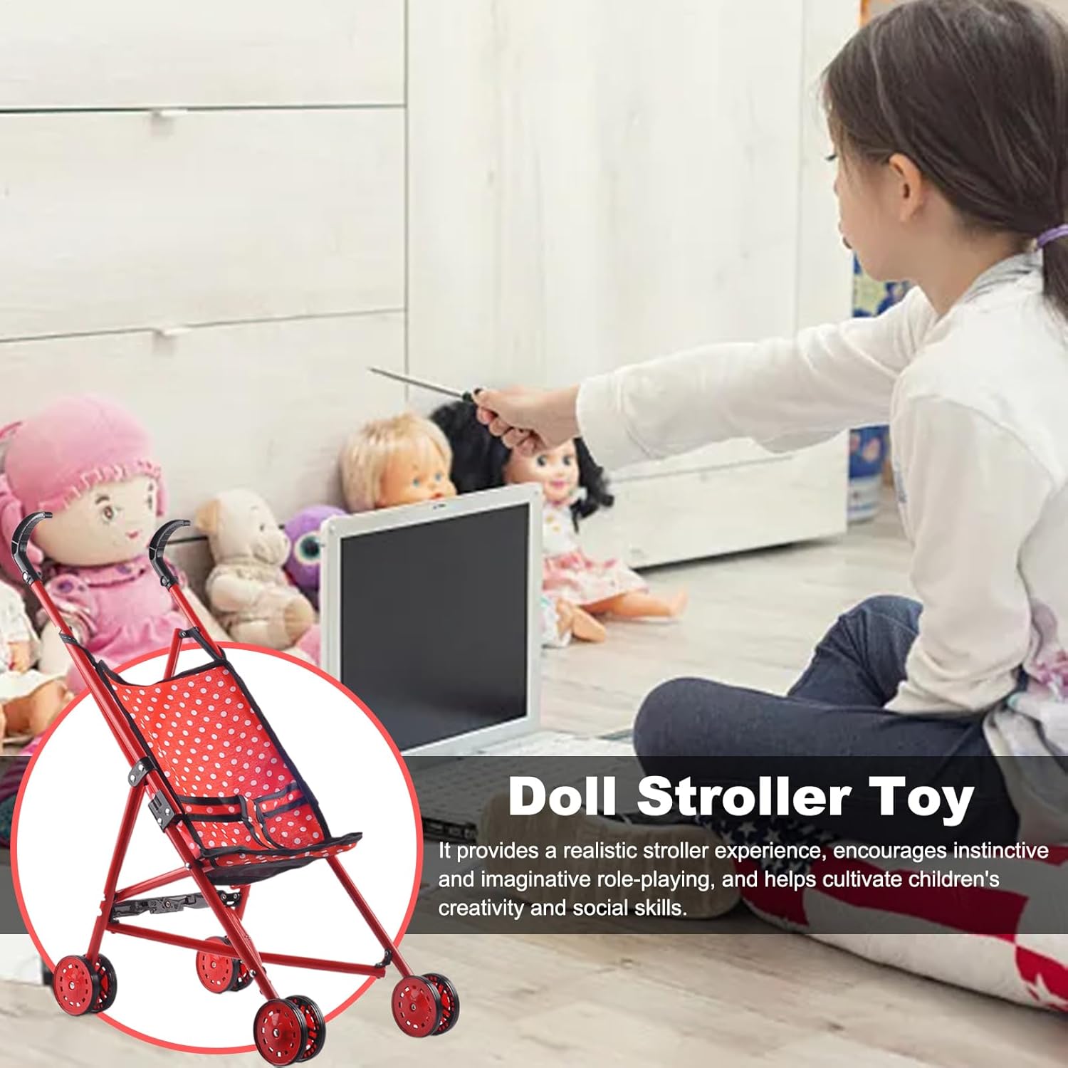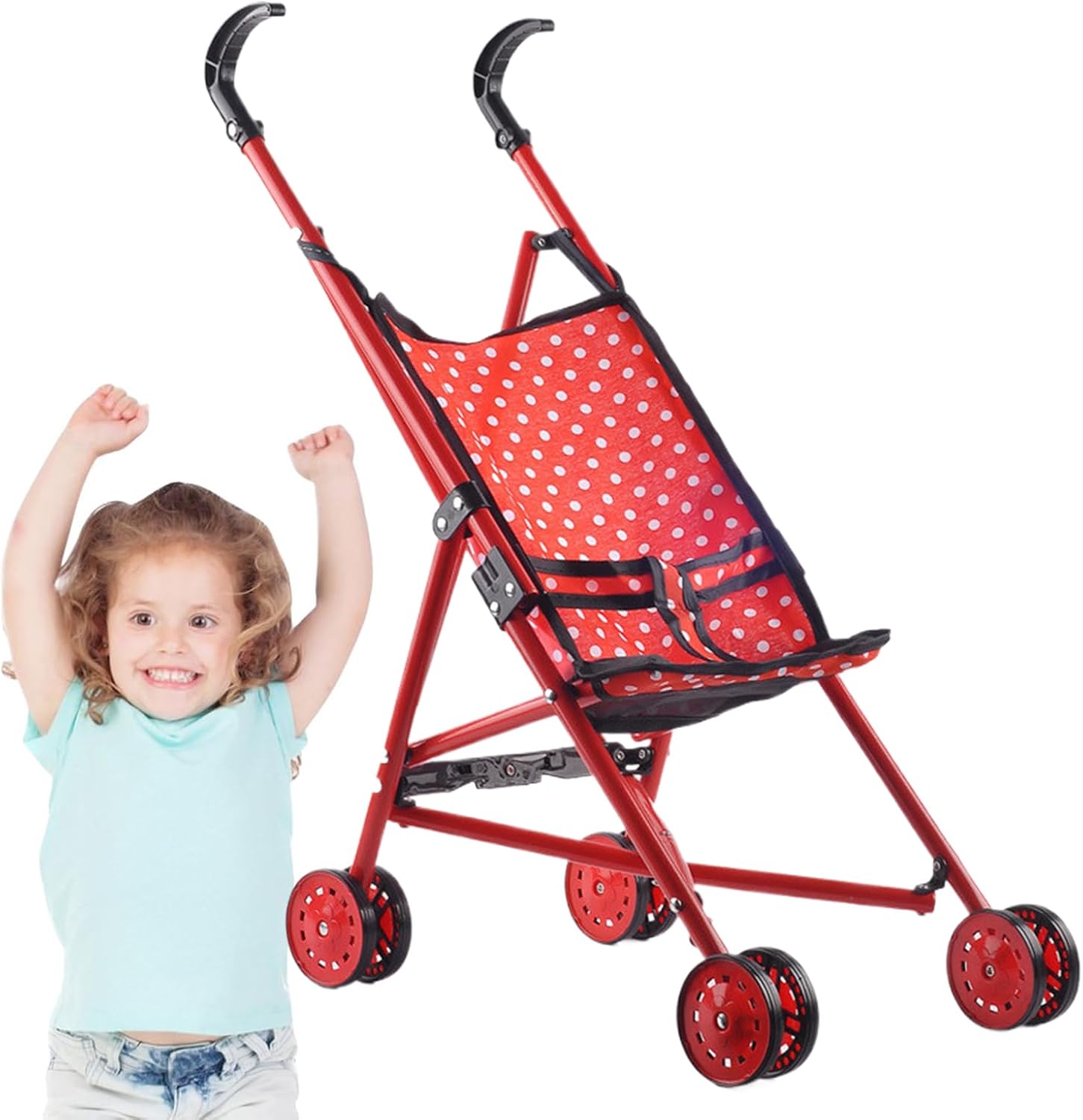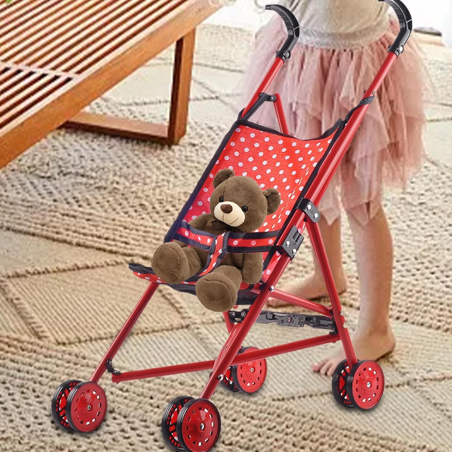 Sturdy Iron Frame with ABS and Cloth Construction: Built with a strong iron structure for support and paired with ABS and soft cloth seating this stroller combines stability with comfort for dolls during everyday pretend adventures Quick Fold Mechanism for Space Saving Storage: Easily folds down flat for convenient storage or transport letting children take it on trips to the park or neatly tuck it away when playtime ends without taking up extra room Two-Wheel Setup for Smooth Rolling Action: Features a rear two-wheel design that steady movement on flat surfaces helping children push their dolls with ease during both indoor and outdoor play Perfect for Gifting During Holidays and Celebrations: Makes a thoughtful present for birthdays Christmas Thanksgiving or Children's Day offering hours of fun and encouraging role play and social development through nurturing play Bright and Colorful Design to Spark Creativity: Eye-catching prints and colors bring excitement to every playtime helping children imagine different stories and pretend scenarios while caring for their favorite baby dolls