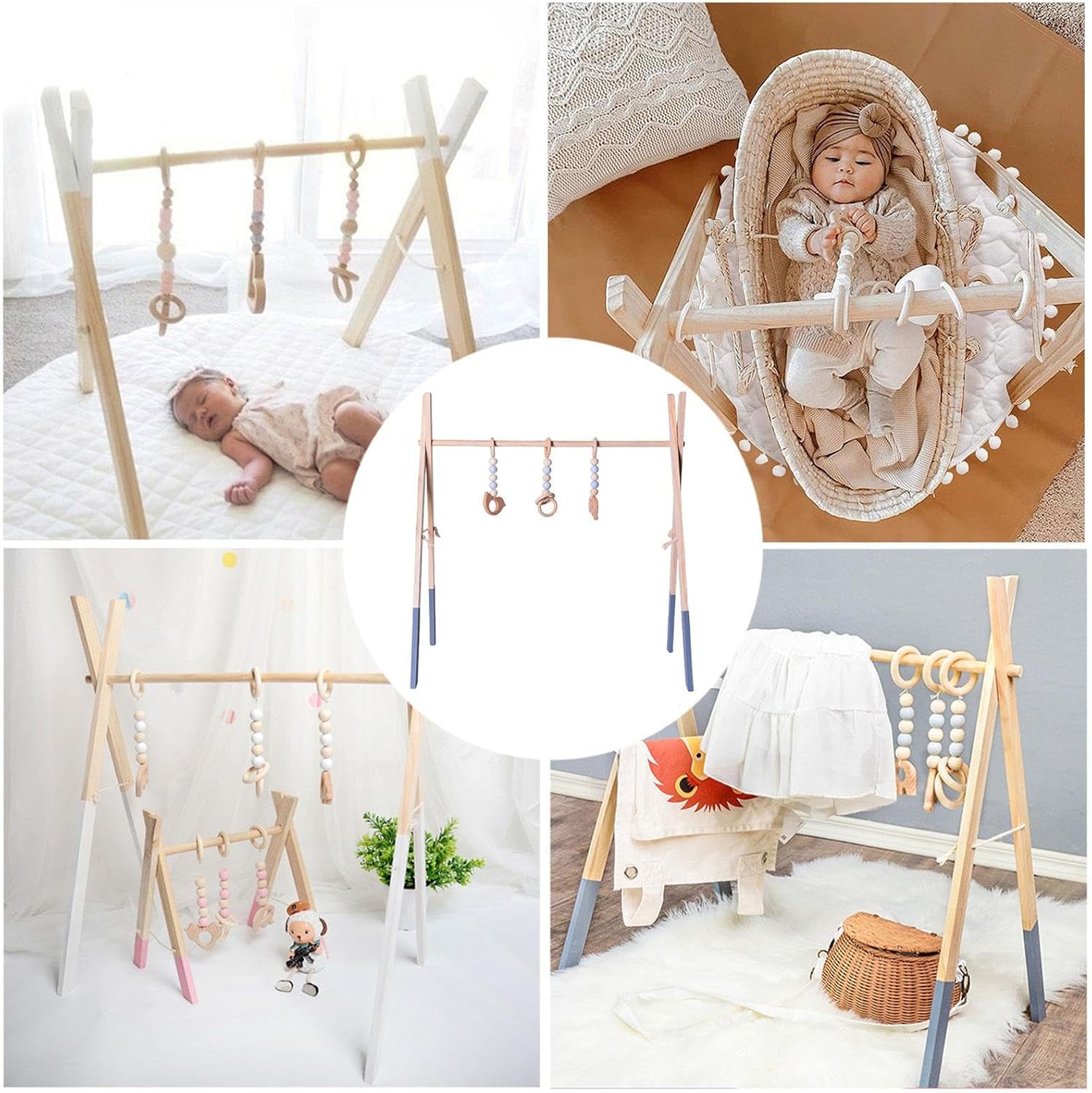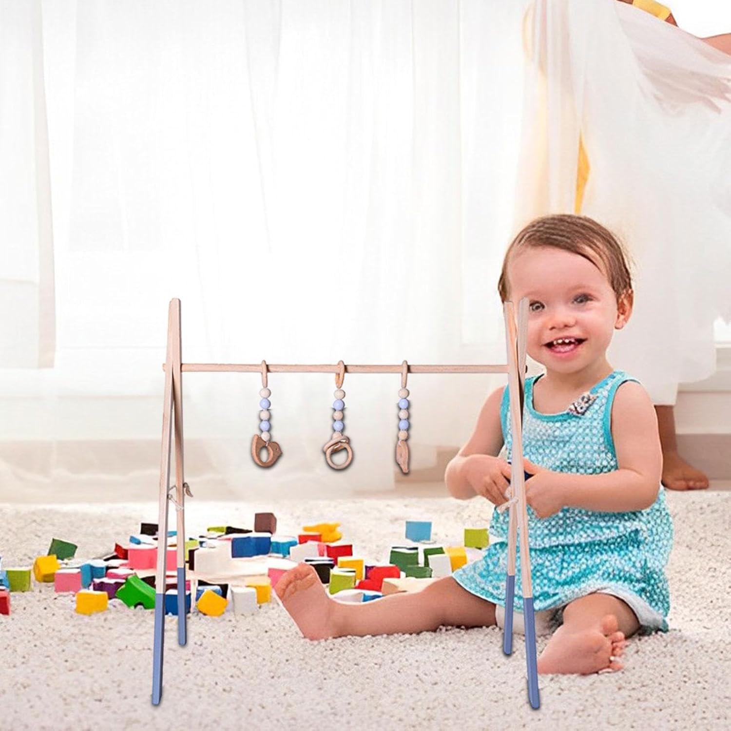Sustainable Material: Crafted from organic, harmless and eco-friendly pine wood, our play gym is harm-free for your and nature. Rest assured with its sustainable material for long-lasting use. Early Motor Skills: Give your the best start with our interactive sensory toys, designed to teach them to grasp and crawl. Featuring 3 wooden toys and a sturdy frame, this gym fosters early motor skills and stimulates their senses. Outdoors Fun: Keep your little kid entertained with our play gym. Featuring a versatile design for strollers and cribs, the easy-to-apply c-ring hooks make toy switching a breeze. Perfect for playtime wherever you go. Convenient Assembly: this play gym in minutes with no tools required. Made of lightweight wood, it's easy to fold and store when not in use. You have not need to worry about the storage. Motor Skill Enhancer: Nurture your toddler's curiosity and enhance fine motor skills with this play gym. Suitable for boys and girls aged 0-12 months, it's a foldable toy that exercises hand-eye coordination. A great gift idea to stimulate young minds.