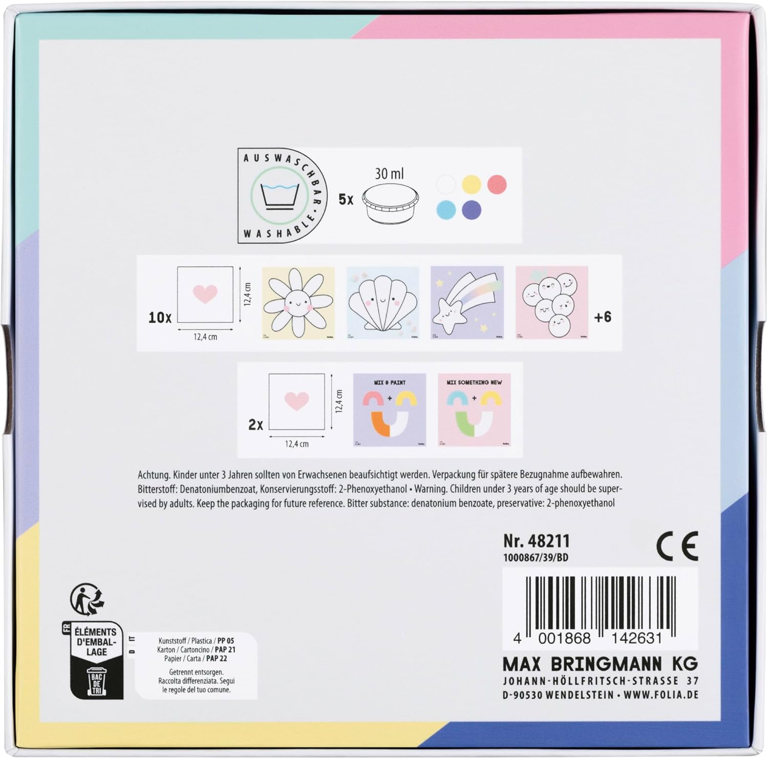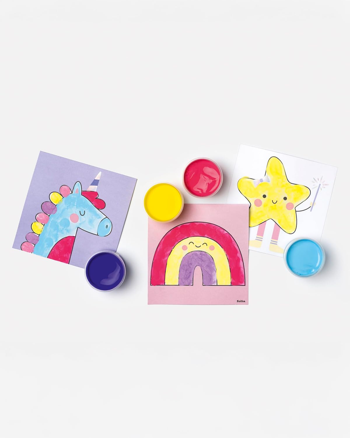Set per dipingere con le dita per bambini dai 3 anni in su Contenuto: 10 sagome da colorare, 5 colori a dita da 30 ml e 2 sagome per la miscelazione. Colori: Bianco, giallo, rosa, blu chiaro e scuro Pagine da colorare con simpatici motivi e finitura iridescente Promuove l'immaginazione e l'uso dei colori, incluse istruzioni dettagliate