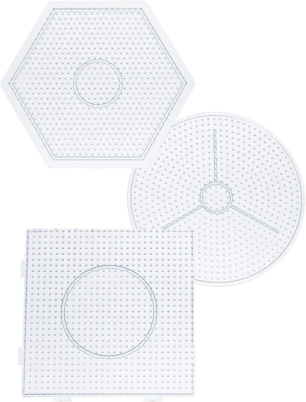 Set di 3 piastre per perline da stirare Motivi: quadrato, cerchio ed esagono Colore: trasparente Adatto per perline con un diametro di 5,0 mm Base per diversi motivi