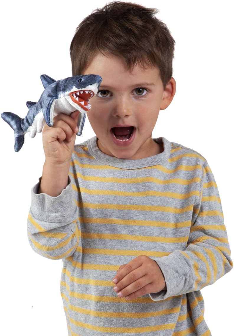 Anima facilmente gli scherzi di questo coinvolgente burattino mini squalo sul tuo dito o tienilo nel palmo della mano Ideale per teatro teatrale e marionette, narrazione, insegnamento, scuola materna, giochi di ruolo, presentazioni, giochi, oggetti da collezione, feste e regali Scorri sul dito per esprimere questo burattino interattivo con vita marina Realizzato con materiali di alta qualità con dettagli eccezionalmente realistici, facile da pulire per anni di gioco Scivola comodamente sulle dita; misura 8" x 4" x 3" (L x P x A)