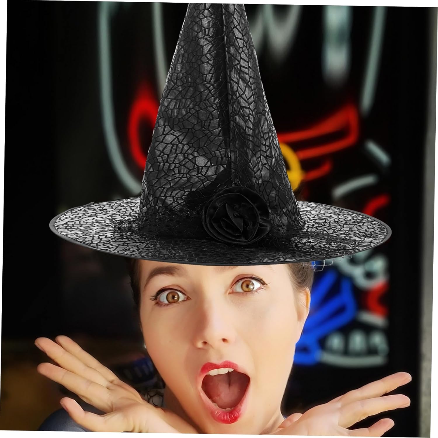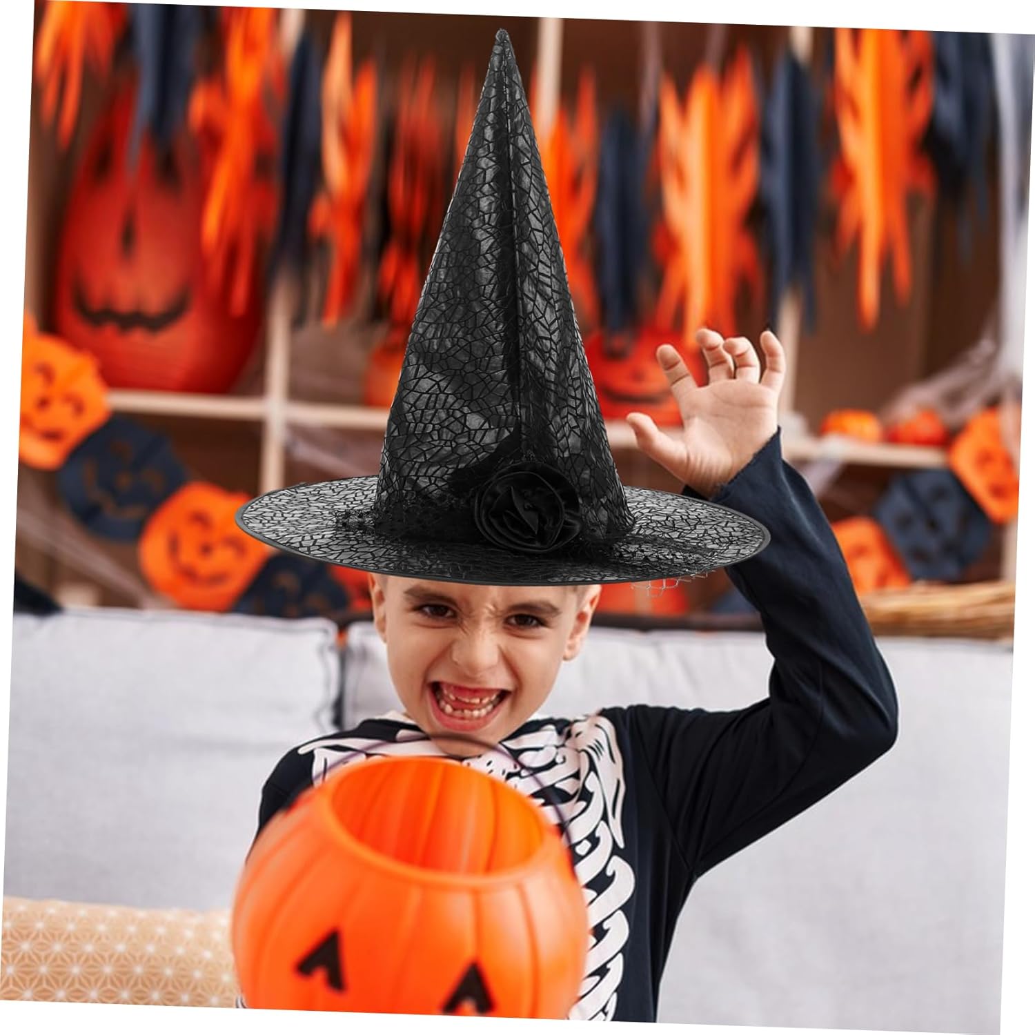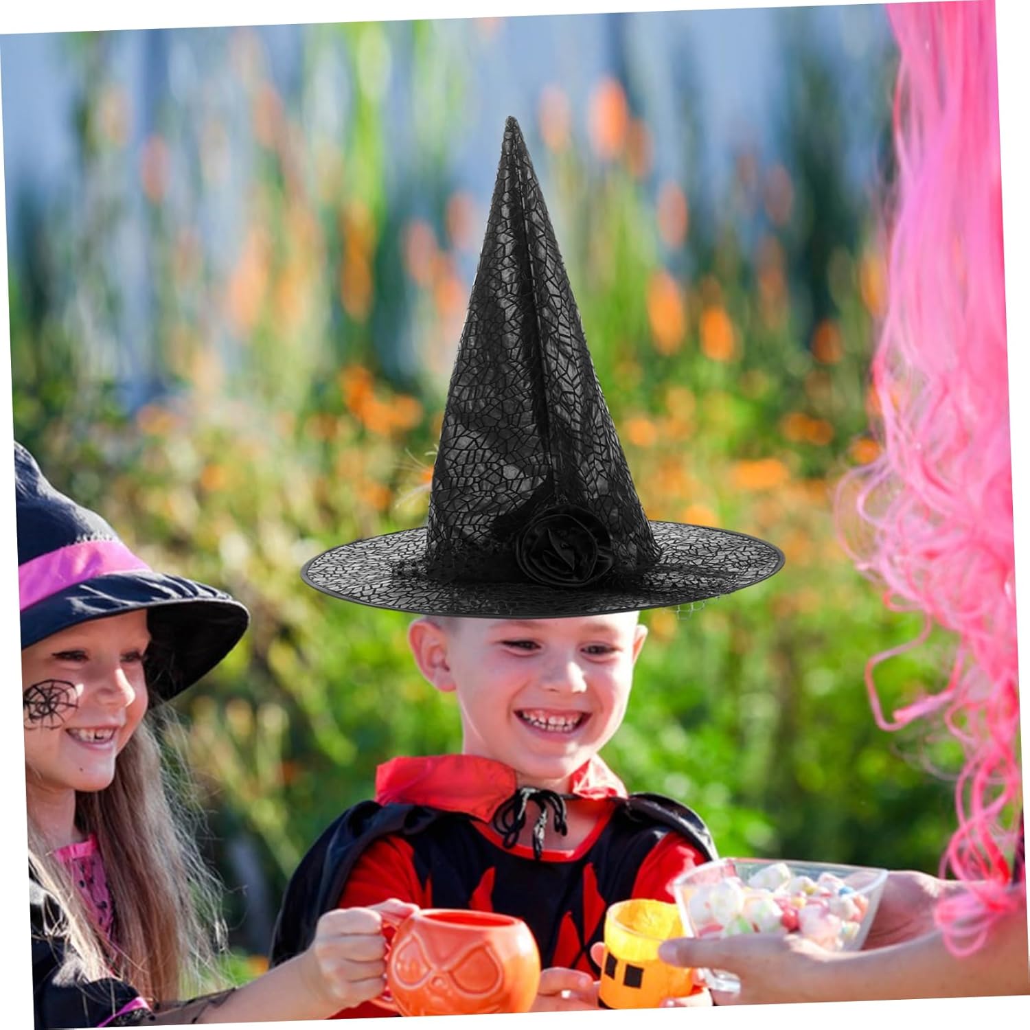 Adatto a tutte le età: adatto a bambini e adulti, rendendolo un'aggiunta versatile a qualsiasi collezione di costumi, accessori per costumi di Halloween, cappello da strega in pizzo. Costruzione durevole: realizzato in tessuto robusto, questo cappello da strega è costruito per durare, permettendoti di usarlo per più stagioni di Halloween. cappello da strega per festa di Halloween, moderno cappello da strega di Halloween Vestibilità comoda: progettato per un comfort a lungo termine in modo da poter goderti la festa senza alcun disagio. cappello da strega per bambini, cappello magico per bambini Comodo da indossare: questo cappello è progettato per il comfort e ti assicura di goderti la festa senza alcun disagio o irritazione. Cappello da mago per bambini, decorazioni per copricapo di Halloween Accessorio versatile: adatto a bambini e adulti, una grande aggiunta a qualsiasi festa di Halloween o in costume, cappello da mago per Halloween, cappello da strega con velo di pizzo