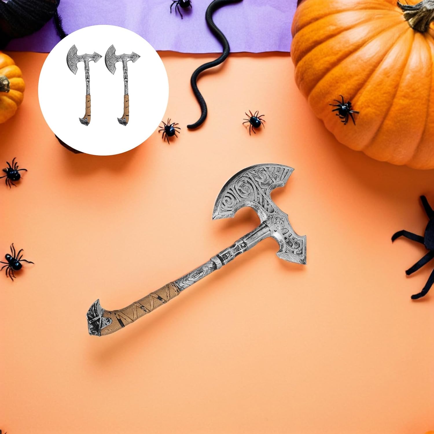 Design realistico: gli oggetti di scena dell'ascia sono realizzati in plastica di alta qualità e offrono un livello di dettaglio impressionante che porta la tua esperienza cosplay a un livello superiore. Leggeri e comodi: con un peso di soli 200 g, questi oggetti di scena sono facili da maneggiare e garantiscono un'esperienza confortevole da indossare durante il tuo costume di Halloween. Sicuro e innocuo: i bordi dell'ascia non sono affilati, rendendola una scelta sicura per bambini e adulti, ideale per qualsiasi tipo di evento. DUREVOLI E AFFIDABILI: Realizzati in plastica resistente, questi oggetti di scena sono abbastanza robusti da poter essere utilizzati più e più volte in diverse occasioni. Uso versatile: questi oggetti di scena per asce sono perfetti per costumi di Halloween, eventi cosplay o come oggetti di scena per sessioni fotografiche per aggiungere un ulteriore fattore wow al tuo aspetto.