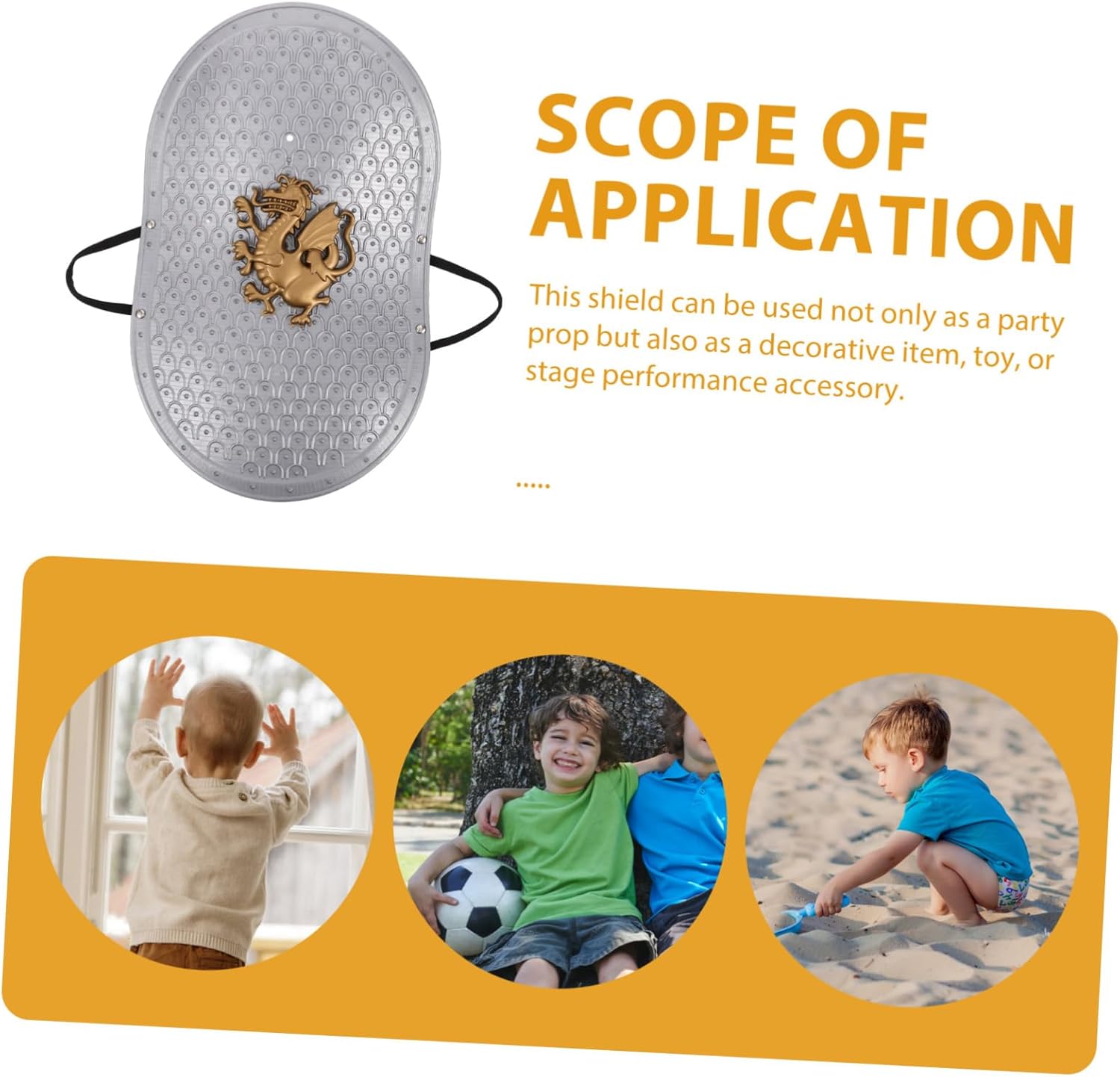 Leggero e portatile: lo scudo è leggero e facile da trasportare, permettendoti di portarlo ovunque e di usarlo senza sforzo. Giocattolo per giochi di ruolo per bambini, scudo giocattolo per bambini Materiale sicuro: realizzato in plastica, questo scudo è sicuro per i bambini e offre un'esperienza di gioco sicura. scudo giocattolo per, gioco di ruolo per Sicuro per: Realizzato in plastica, questo scudo è stato progettato pensando ai bambini ed è quindi una scelta adatta per scudi giocattolo, scudi giocattolo per Design elegante: il colore e la lavorazione dettagliata dello scudo lo rendono un accessorio attraente per costumi e giochi per bambini Uso versatile: questo scudo versatile può essere utilizzato come oggetto di scena per feste o oggetto decorativo, rendendolo adatto a varie occasioni