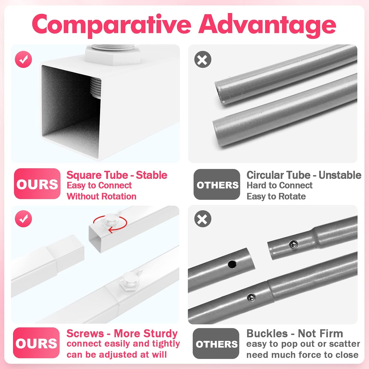 Archi nuziali per cerimonia: hai sicuramente bisogno di questo supporto quadrato per arco nuziale per la decorazione del tuo matrimonio. La classica forma quadrata e la solida struttura in metallo di questo supporto per fondale ad arco in metallo offrono una base robusta per uno sfondo epico per la tua celebrazione. Supporto per arco nuziale massiccio: 1,8 x 1,8 m (A x L). Il supporto per fondale quadrato per arco nuziale può essere utilizzato per creare la maggior parte degli archi nuziali, archi di porte, palloncini o archi floreali. I tubi quadrati rivestiti in resina epossidica resistenti agli agenti atmosferici creano un aspetto davvero sorprendente sia all'interno che all'esterno. Traversa aggiuntiva: supporto per arco nuziale bianco con una traversa per migliorarne la stabilità, abbastanza forte e robusto per contenere tutti gli oggetti su di esso. L'arco nuziale in metallo è stabile da solo finché i dadi ad alette che lo tengono insieme sono fissati e serrati. Facile da montare: questo supporto per arco nuziale può essere assemblato in pochi minuti con le viti. Facile da trasportare per creare la maggior parte degli archi nuziali, archi di porte, palloncini o archi floreali. Portatile per posizionarlo ovunque tu voglia. MULTIUSO - L'arco in metallo è perfetto per il tuo matrimonio, festa di compleanno, giardino, fondali per cabine fotografiche, decorazioni o ricevimenti per feste di Halloween, addio al nubilato, proposta romantica o festa di fidanzamento. Possiedi questo supporto quadrato con cornice ad arco per palloncini per migliorare la felicità dei tuoi giorni speciali!