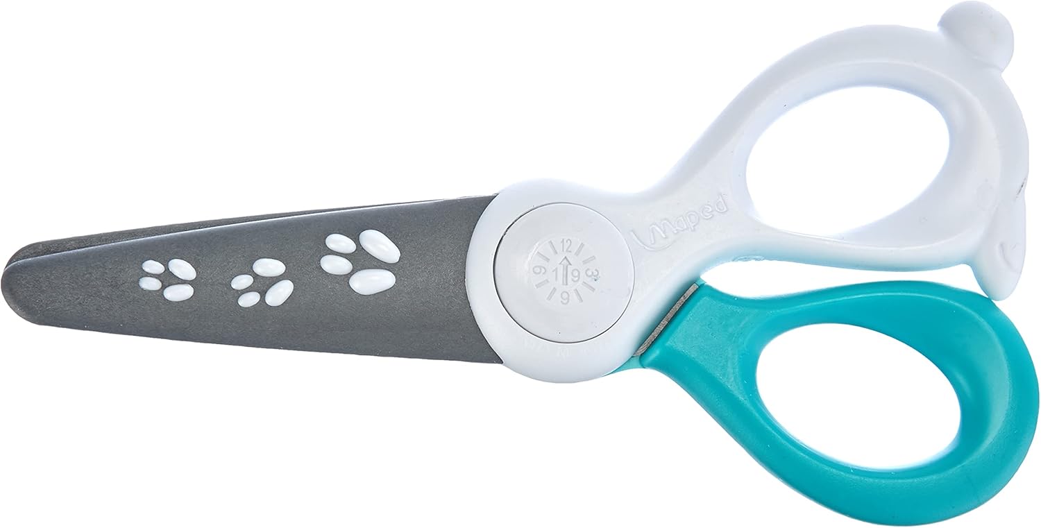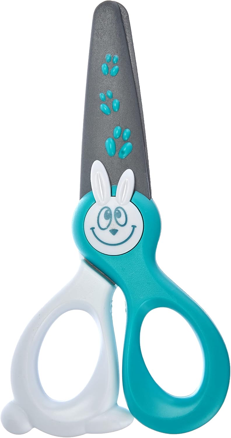 Lunghezza: 120 mm, per bambini a partire da 2 anni Taglia solo carta, senza pelle, senza capelli, senza vestiti Non antistatico, a forma di coniglietto, manici in plastica Lama in fibra di vetro, con punta arrotondata e stampa "stella" Colore: verde menta