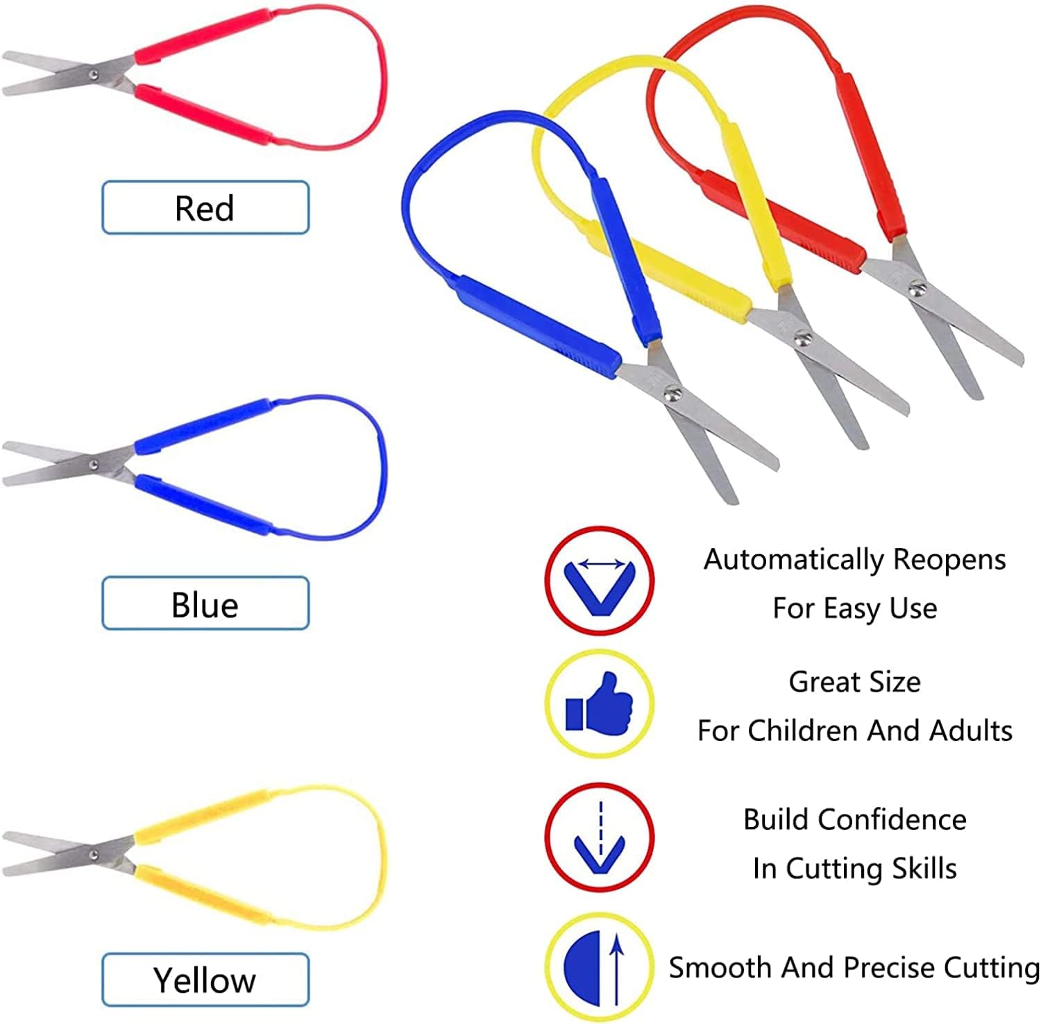 Materiale: le forbici ad anello sono realizzate in acciaio inossidabile con manici in polipropilene, robuste e durevoli Dimensioni: 20 × 8 cm. Include 3 forbici circolari. Design pratico: più facile da usare rispetto alle normali forbici, aiuta i bambini a padroneggiare la presa, non pizzica il palmo della mano Facile da usare: la facilità, il comfort e l'efficienza delle forbici ad anello lo rendono perfetto per bambini, adulti anziani o persone con bassa coordinazione. Multifunzione: ha una vasta gamma di usi, adatto per tagliare la carta, fare diari, fare biglietti di auguri e fai da te per migliorare le capacità manuali