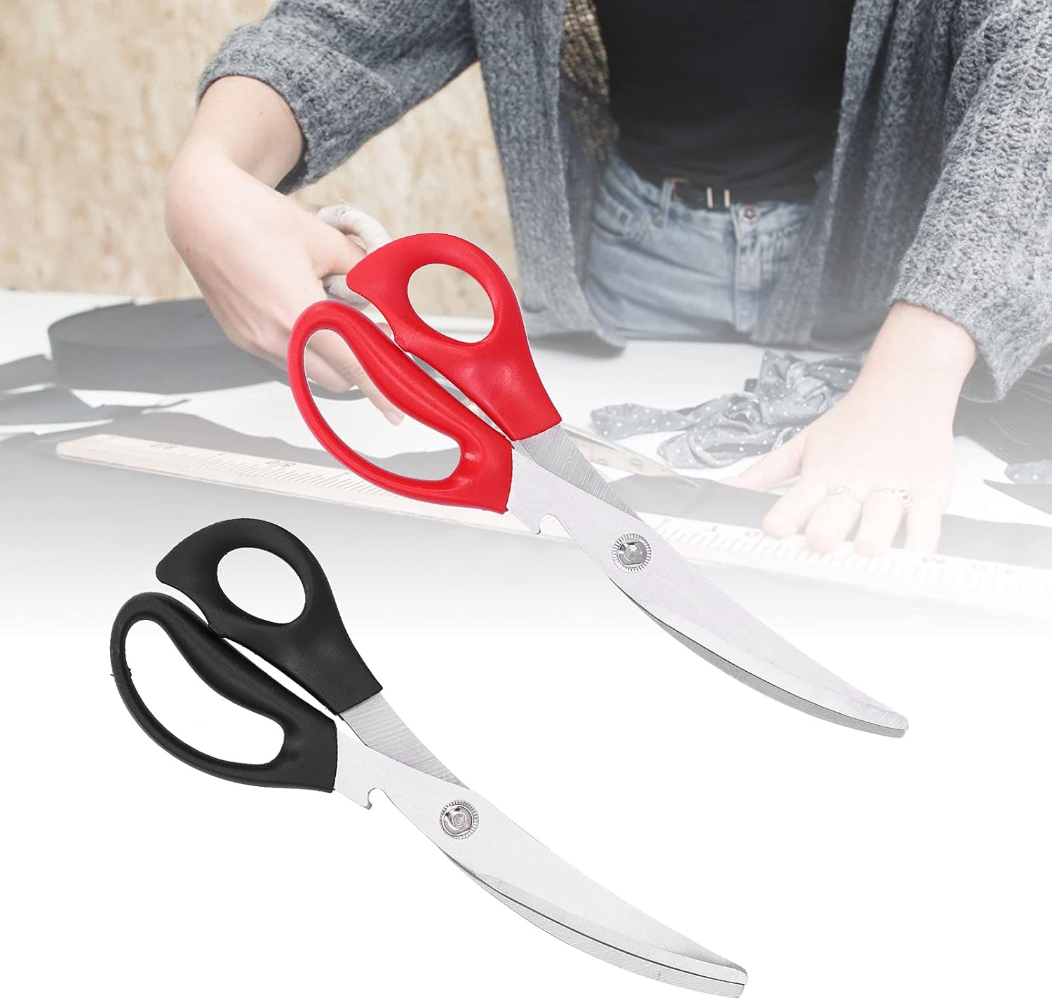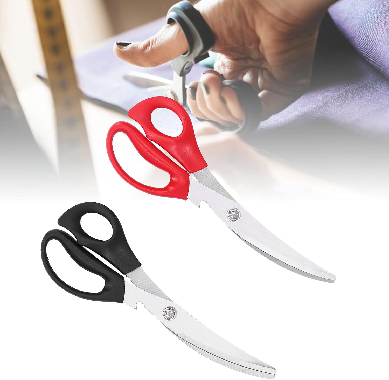 [Utilizzo versatile] Scissori in acciaio inossidabile affilato e sicuro per la cucitura e il taglio del tessuto, anche adatti per tagliare erbe, cracking dadi, frutti di frutta e altro ancora. [Materiale durevole] realizzato in acciaio inossidabile di alta qualità, garantendo un taglio liscio e resistente che può durare per anni. [Design multifunzionale] può essere utilizzato per varie attività come l'apertura di bottiglie, il taglio del cartone e le materie plastiche rigide, con una maniglia ergonomica per l'impugnatura confortevole. [Taglio preciso] fornisce tagli puliti ogni volta, rendendolo uno strumento affidabile per una vasta gamma di attività di taglio. [Performance di lunga durata] Con prestazioni eccellenti e un design versatile, queste forbici sono un must per qualsiasi appassionato di famiglie o cuciture.