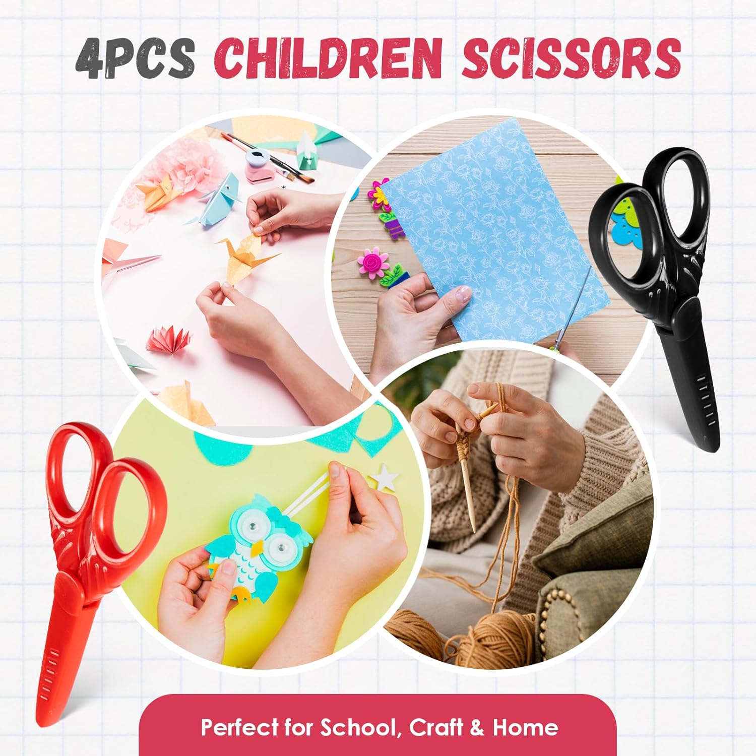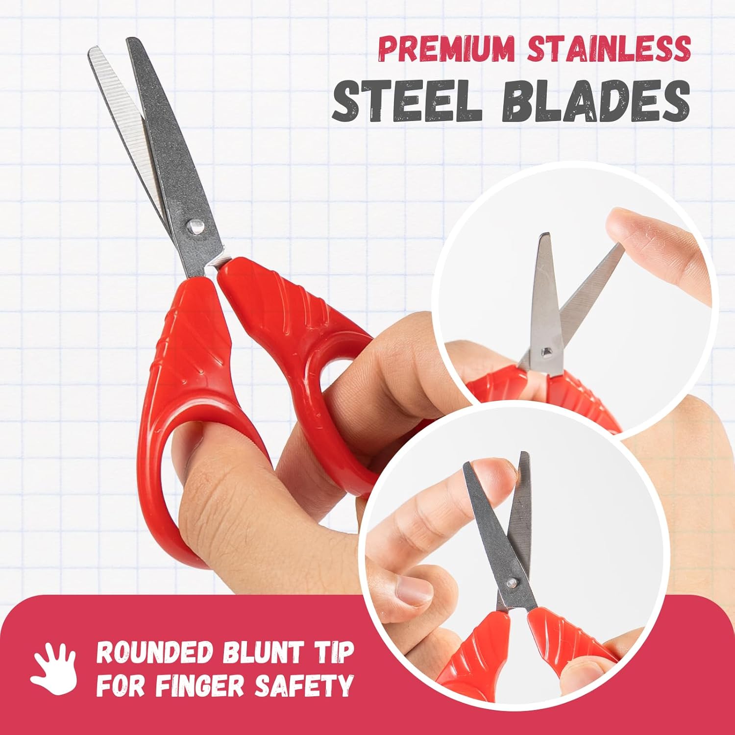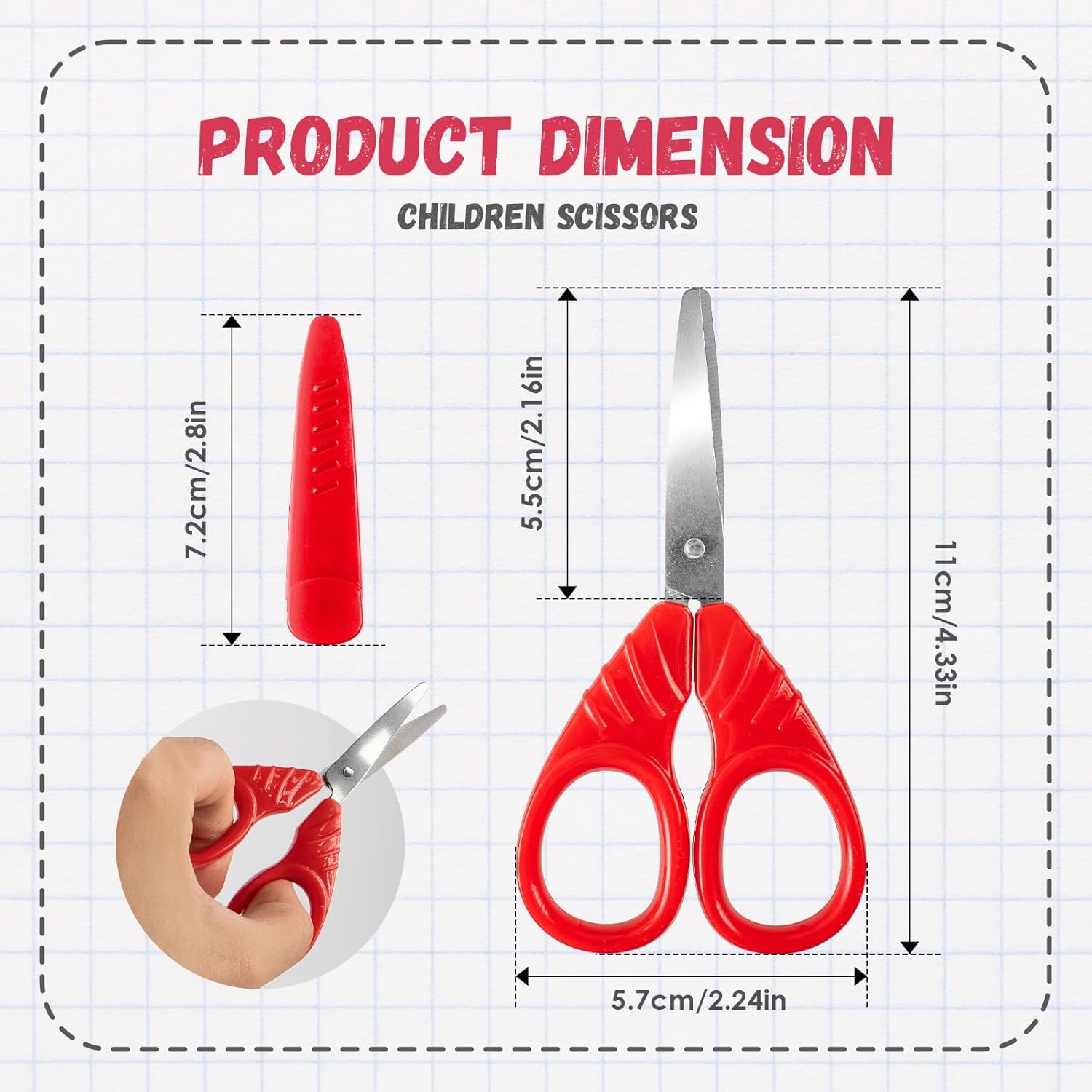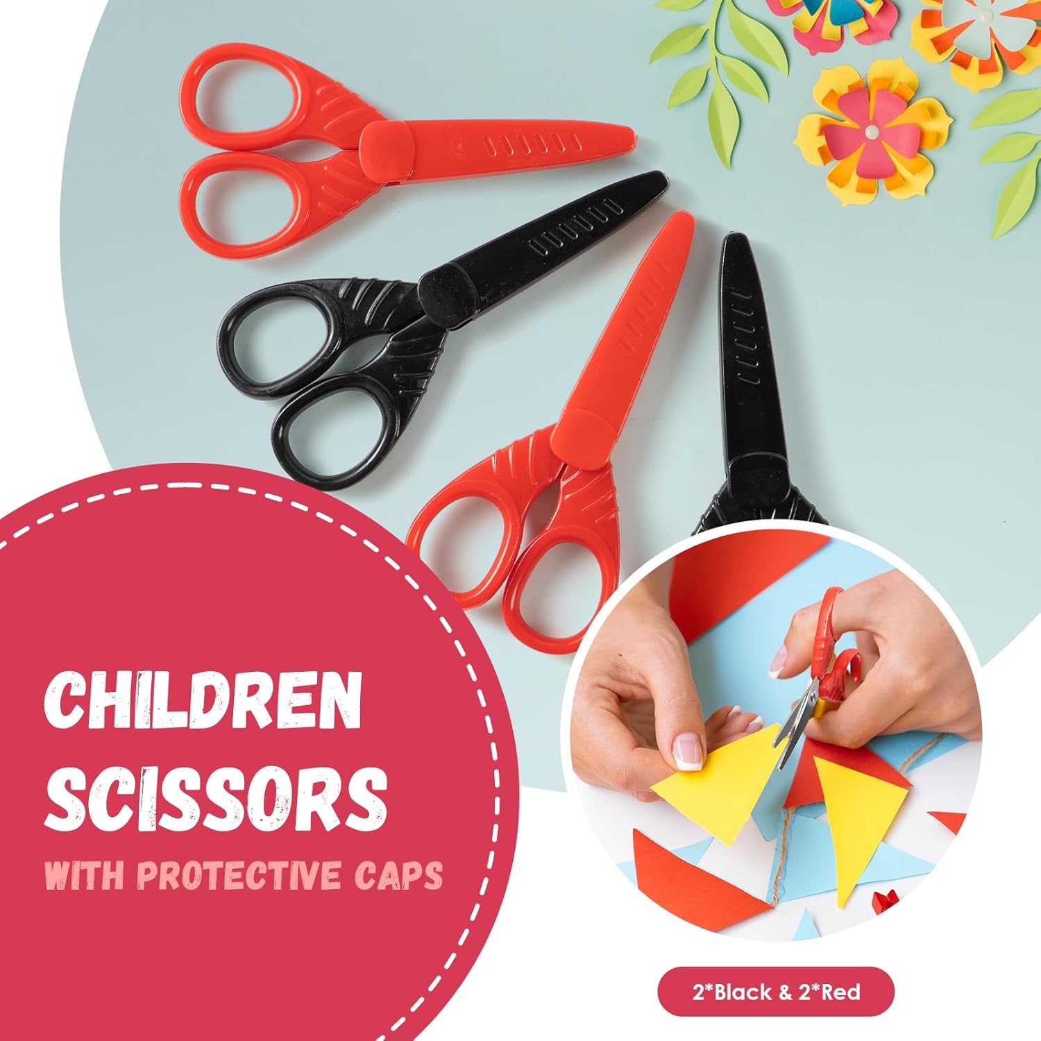 Set da 4 pezzi con tappi protettivi (2 rossi e 2 neri): questo set di forbici per bambini include 2 forbici rosse e 2 nere con tappi protettivi, perfetto set da 4 pezzi per casa, classe o viaggi Con copertura di sicurezza: le forbici per bambini con estremità arrotondata con lama smussata includono una guaina in plastica che copre la lama per una conservazione sicura e una portabilità. È conveniente per i bambini portarlo in aula scolastica, a casa e per uso esterno Forbici di sicurezza a punta smussata per bambini: il design arrotondato della punta smussata delle forbici scolastiche previene tagli accidentali, appositamente realizzate come forbici di sicurezza per bambini Manici ergonomici in plastica (30 x 5,6 cm): queste forbici per bambini ergonomiche e antiscivolo (30 x 5,6 cm) si adattano comodamente alle mani piccole, riducendo al minimo l'affaticamento Forbici versatili per artigianato e scuola: le forbici per bambini sono perfette come forbici artigianali o forbici per la scuola, versatili per progetti fai da te, scrapbooking, attività prescolari e lezioni d'arte