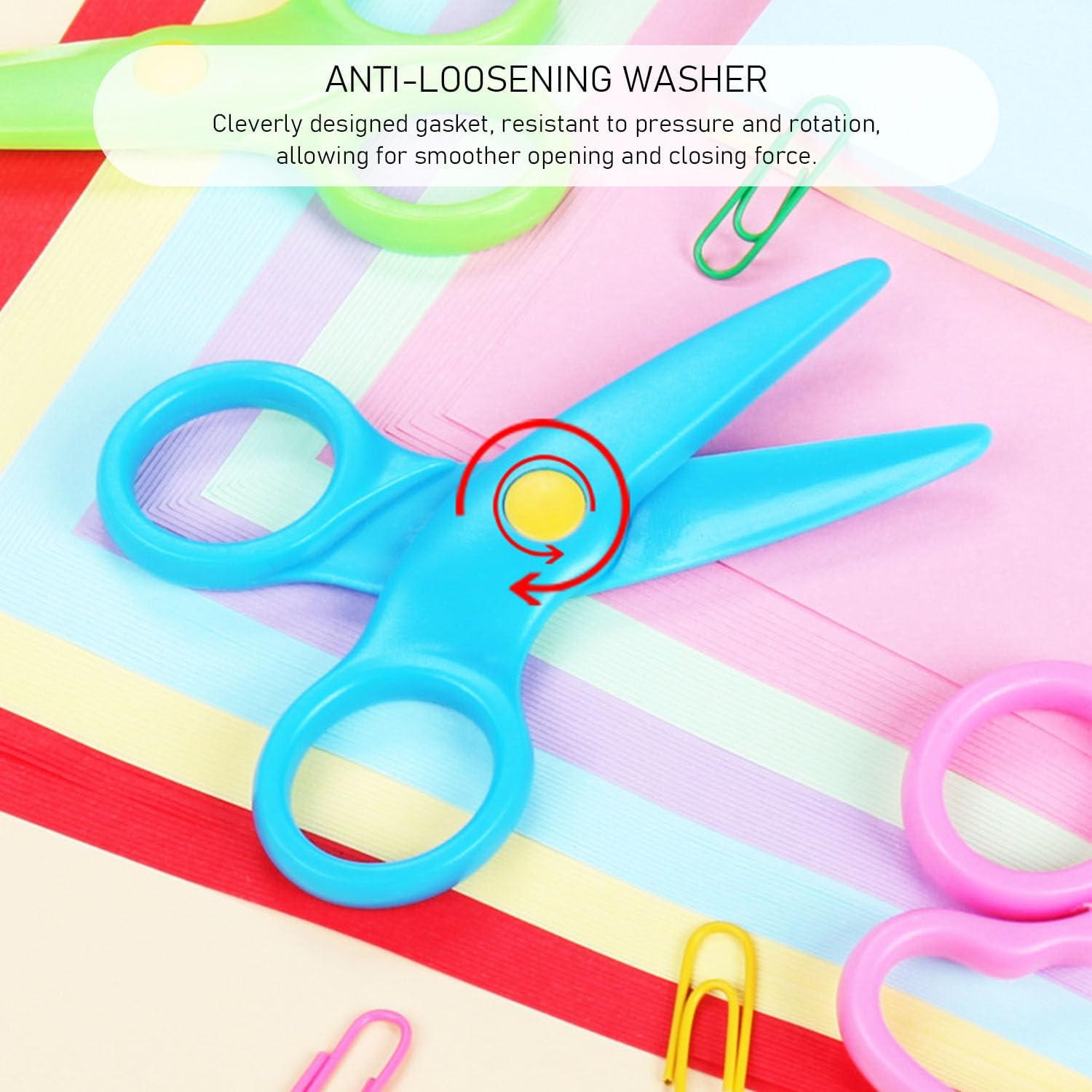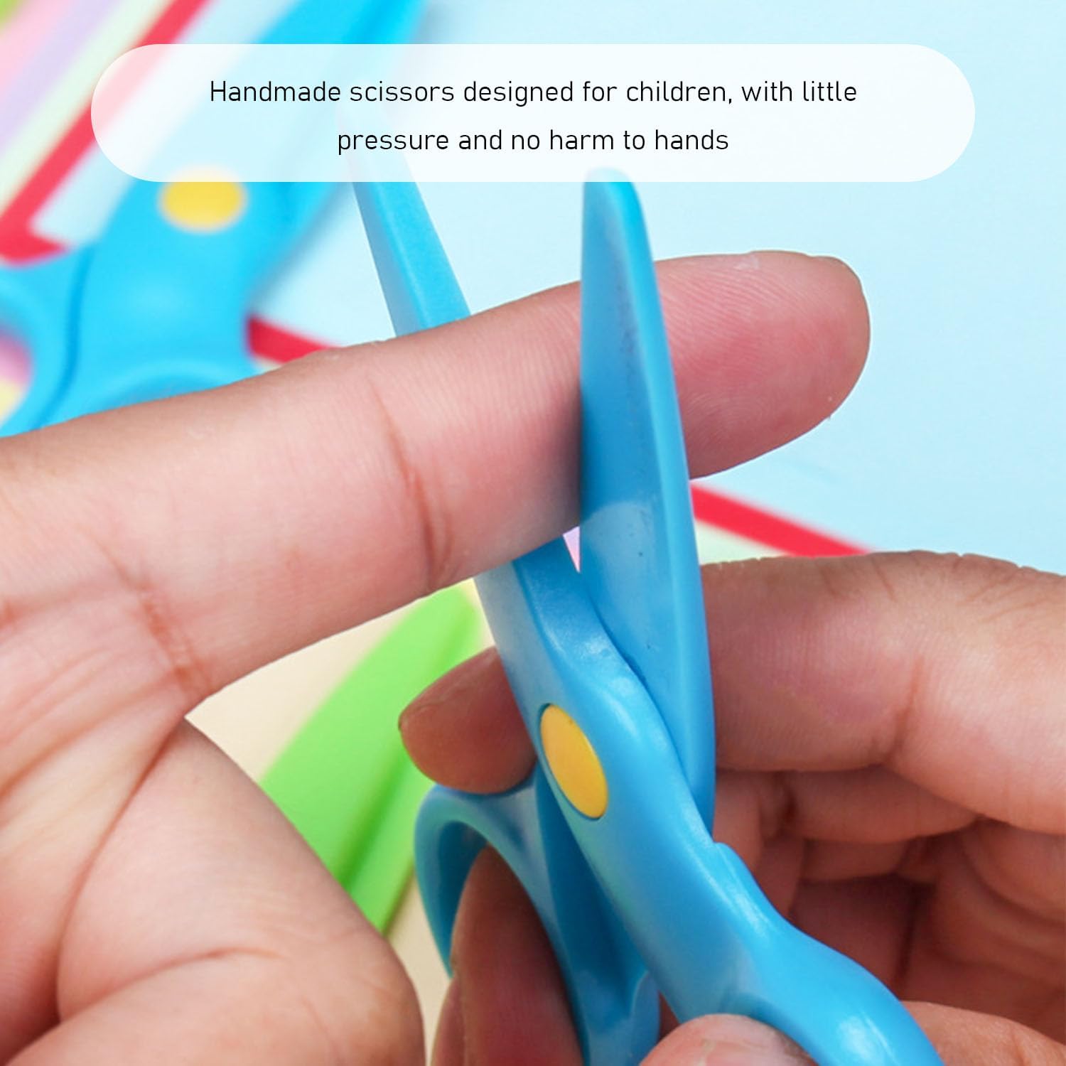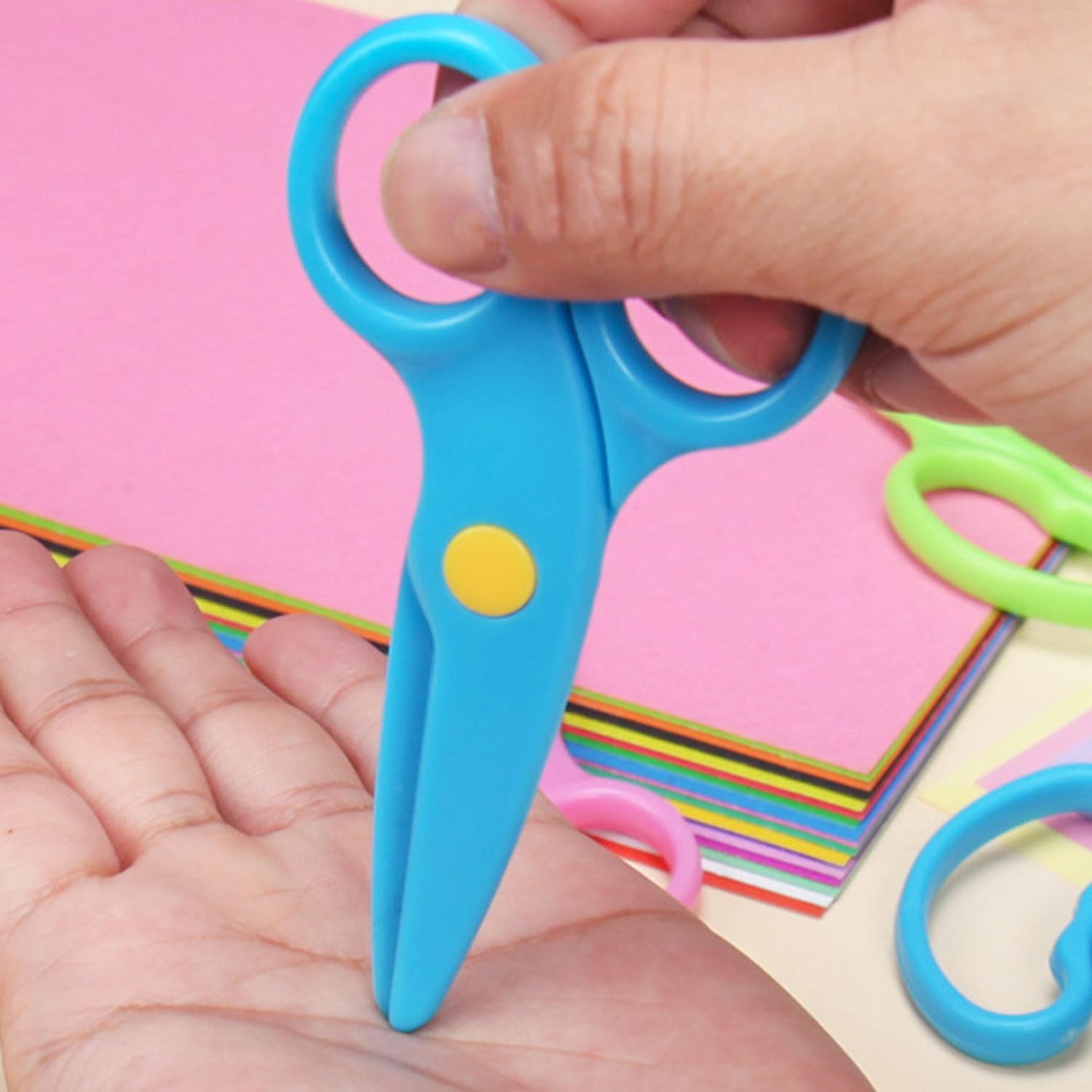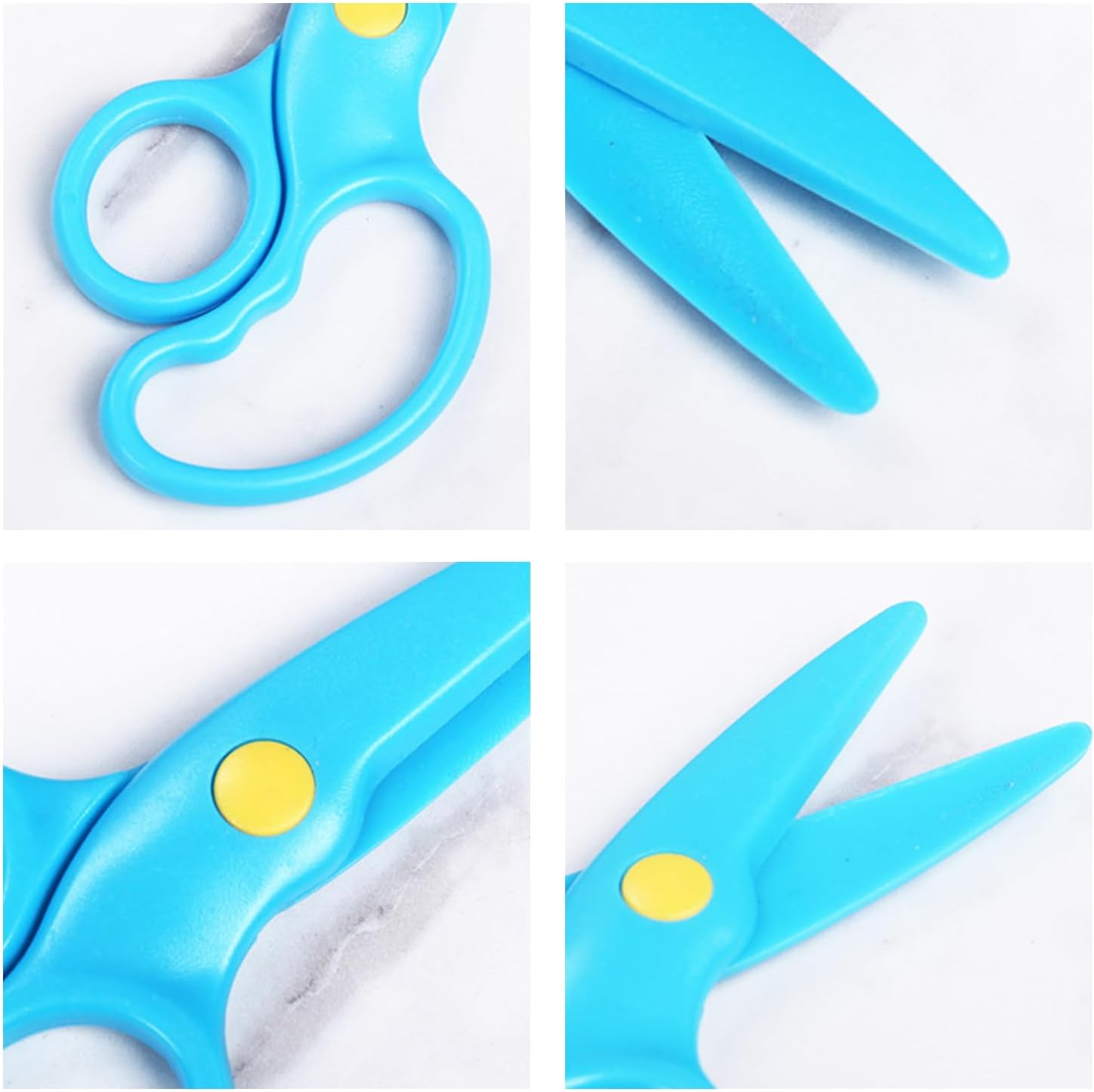 Contenuto della confezione: riceverete 2 forbici di sicurezza per bambini da 10,5 x 5,8 cm, 1 pezzo rosa e blu, con forme carine, molto adatte per i vostri bambini per il fai da te a scuola. Materiale del prodotto: le forbici per bambini sono realizzate in polipropilene che è sicuro, ecologico, inodore, resistente all'usura e durevole. Questo materiale è leggero e facile da pulire, quindi i genitori non devono più preoccuparsi della pulizia. Design intimo: le forbici hanno una testa rotonda, liscia e arrotondata. Anche se il bambino cade accidentalmente o si scontra, i graffi possono essere efficacemente evitati, il che rende il bambino più sicuro durante il gioco. Apertura e chiusura regolabili: i genitori possono regolare la difficoltà di apertura e chiusura delle forbici in base all'età e alla capacità di coordinamento delle mani dei loro figli, consentendo ai bambini di allenare gradualmente i loro movimenti sottili della mano e migliorare la creatività durante l'uso. Strumenti per esplorare il mondo: sia per tagliare carta, dipingere o fai da te, queste forbici consentono ai bambini di dare sfogo alla loro immaginazione, sviluppare le loro abilità pratiche e aprire la porta alla saggezza durante il processo pratico.