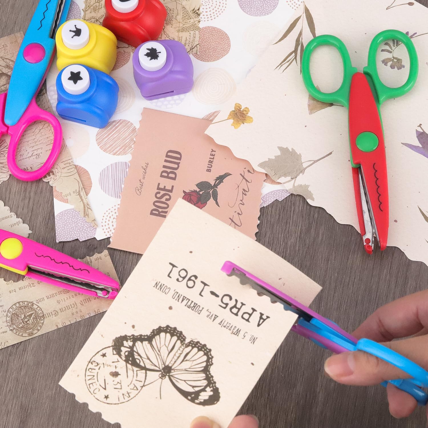 Set di forbici per bambini: le nostre forbici per bambini sono state appositamente progettate per i bambini per imparare a usare le forbici. La lama a forbice con parte superiore rotonda è coperta dalle ciotole in plastica, in modo che i bambini siano sicuri da usare e non possano tagliarsi facilmente. Design multipli: le forbici per bambini 7 pezzi hanno motivi unici e disegni di colori vivaci, che offrono diverse forme e disegni e offrono ai vostri bambini infinite possibilità di progettazione per il fai da te. Set di punzonatrici per bambini: le nostre forbici di carta per bambini si adattano anche a 6 colori casuali di perforatori con un totale di 6 diversi motivi, tra cui fiocchi di neve, mulini a vento, cuori, foglie d'acero, quadrifogli, ragazze. Forniamo anche una custodia nera per una facile conservazione. Alta qualità Le forbici asilo per bambini sono realizzate in ABS di alta qualità e lega di alluminio, sono resistenti all'usura, antiruggine e hanno una lunga durata. La maneggevolezza è eccellente e tagliano molto bene. Garanzia di qualità: queste forbici artigianali per bambini sono perfette per progetti fai da te, classi prescolari, album di ritagli, classi di scuola materna e altro ancora. Se c'è un problema di qualità con le nostre forbici per bricolage, vi preghiamo di contattarci via e-mail. Risponderemo entro 24 ore e ti offriremo una soluzione soddisfacente al 100%.