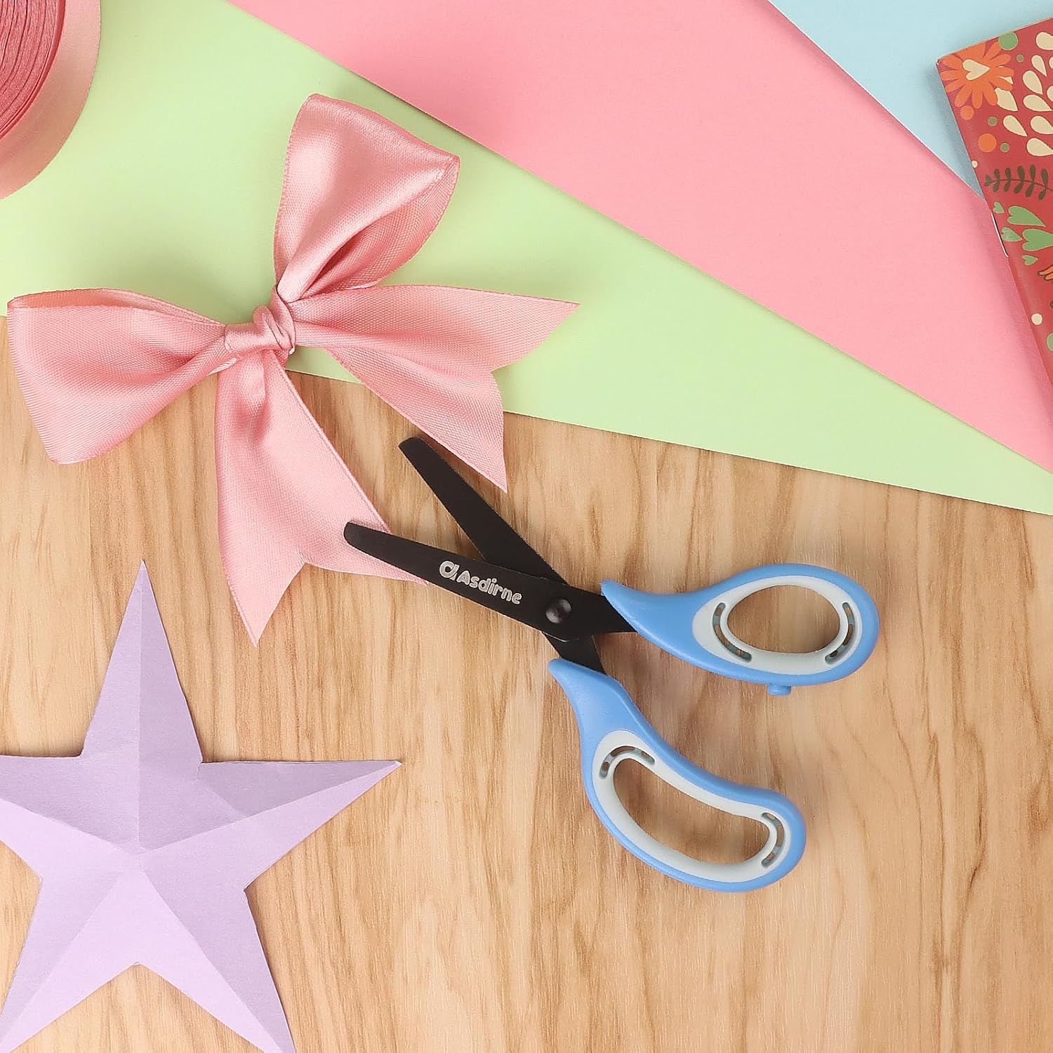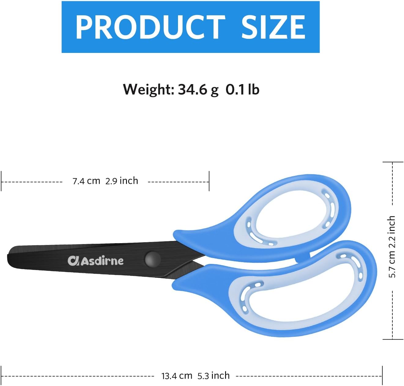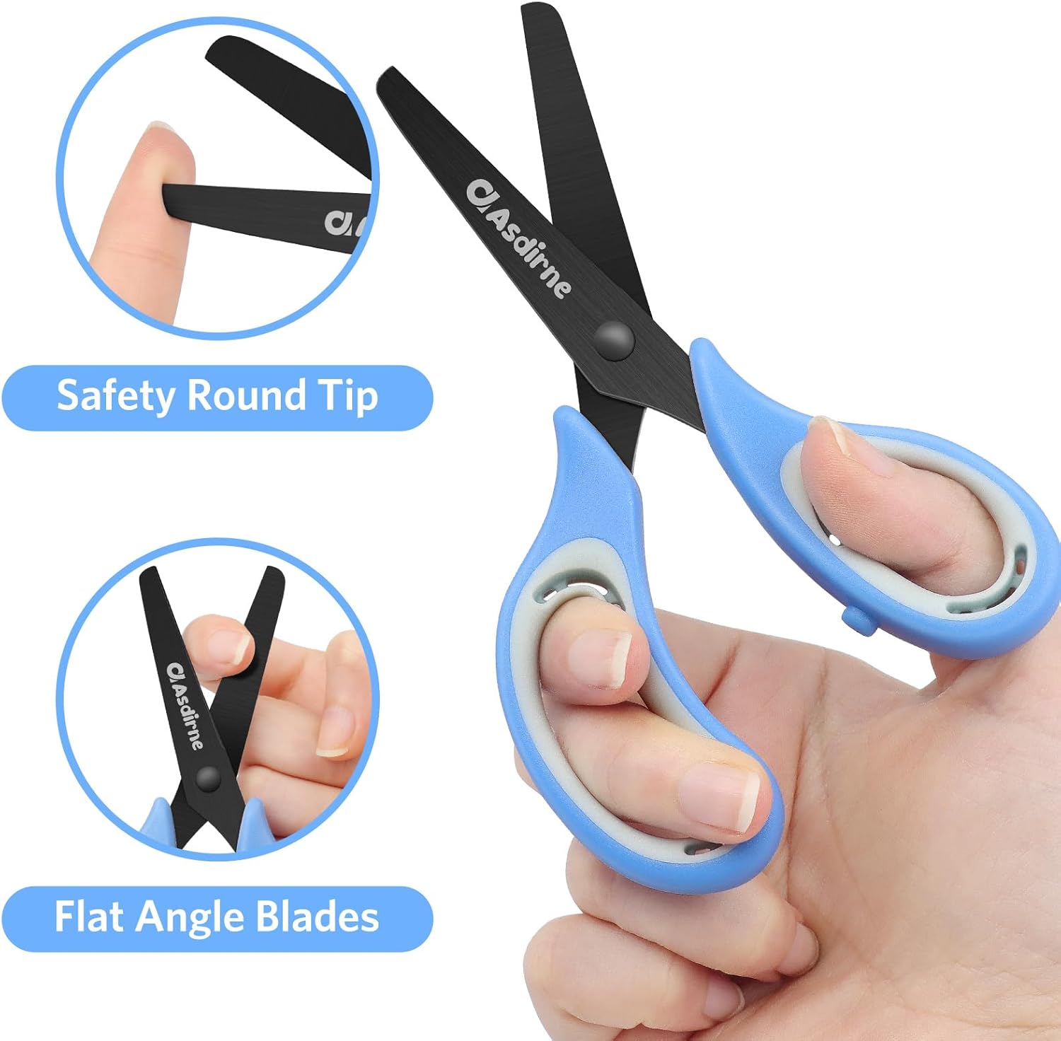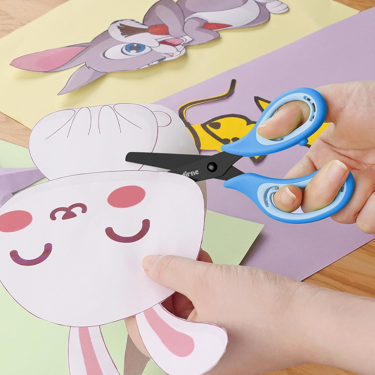 Materiale di alta qualità. Le forbici per bambini sono realizzate in acciaio inossidabile di alta qualità, gomma e materiale ABS, antiruggine, durevole e inodore. Punta smussata di sicurezza. Il design ad angolo ottuso sulla punta delle forbici per bambini tiene i bambini lontani dal rischio di essere pugnalati. Taglio senza intoppi. Rispetto alla lama in plastica, la lama in acciaio inossidabile lavorata con affilatura professionale può tagliare la carta più liscia. Robusto e durevole. Le lame rivestite in teflon rendono le forbici belle e durevoli. Ottima idea regalo. L'adorabile design del prodotto lo rende la scelta migliore per un regalo. I bei colori rendono i bambini più interessati alla realizzazione a mano. Nota: adatto a bambini di età superiore ai 3 anni.