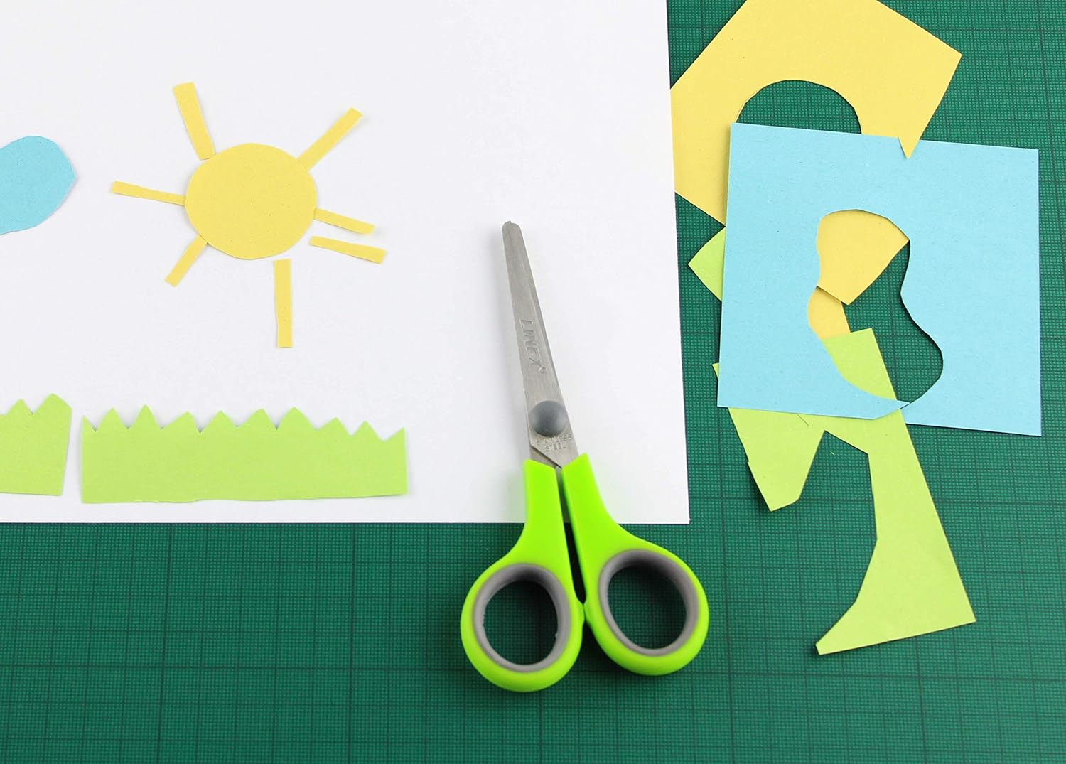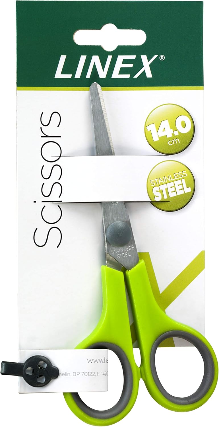 Forbici per bricolage, lunghe 14 cm Modello speciale per mancini e destrimani Con punta arrotondata Manico resistente agli urti in plastica ABS Verde mela con applicazioni grigie
