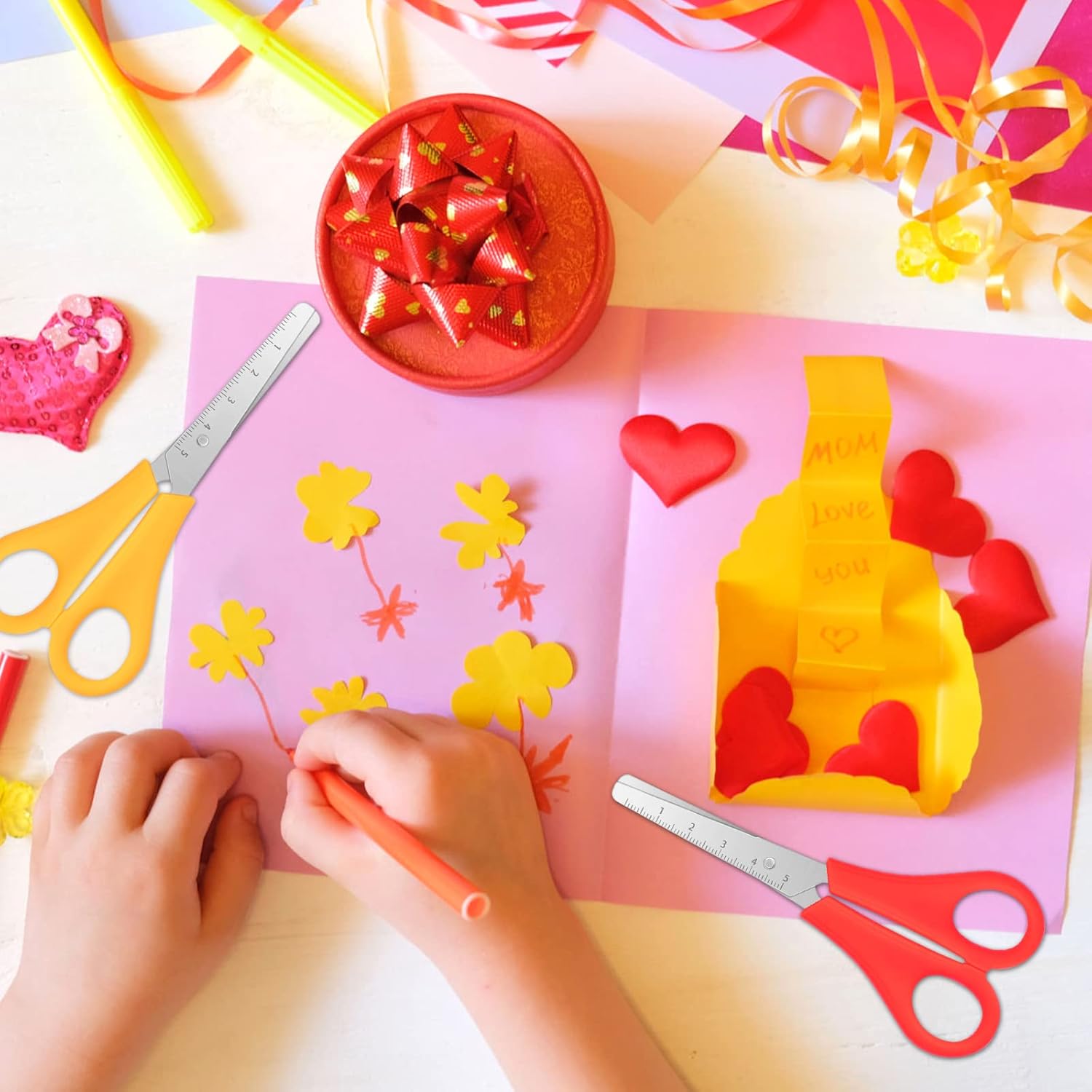 ✂️Il pacchetto include: Riceverai 12 forbici di sicurezza per bambini con scala in cm in 6 colori diversi, incluso il rosso; blu; verde; arancione, nero e giallo, sufficienti per l'uso quotidiano dei bambini. 📝Materiale premium: Le nostre forbici per bambini sono realizzate in plastica PP di alta qualità e acciaio inossidabile. Il manico delle forbici è realizzato in plastica PP, leggera, resistente al calore e liscia. La lama è in acciaio inossidabile, non arrugginisce facilmente, è dura e pratica. ✂️Design pratico: Il design della testa a forbice a forma di arco può proteggere le mani e prevenire efficacemente che i bambini si feriscano durante l'utilizzo. Inoltre, il design con scala in cm è comodo per il taglio. Possono tagliare la carta senza righello aggiuntivo. 📝Facile da usare: Queste forbici per l'addestramento prescolare sono comode da tenere e facili da controllare. Il design delle lame su entrambi i lati delle forbici garantisce che possano essere utilizzate sia dai bambini mancini che da quelli mancini. È facile per loro usarlo. ✂️Ampia applicazione: Queste forbici di sicurezza con punta smussata sono adatte a molte occasioni come creazione di cartoline, taglio di carta per album fai-da-te, album, creazione di libri di ricordi, ecc. Strumento ideale per la scuola materna e l'uso quotidiano.