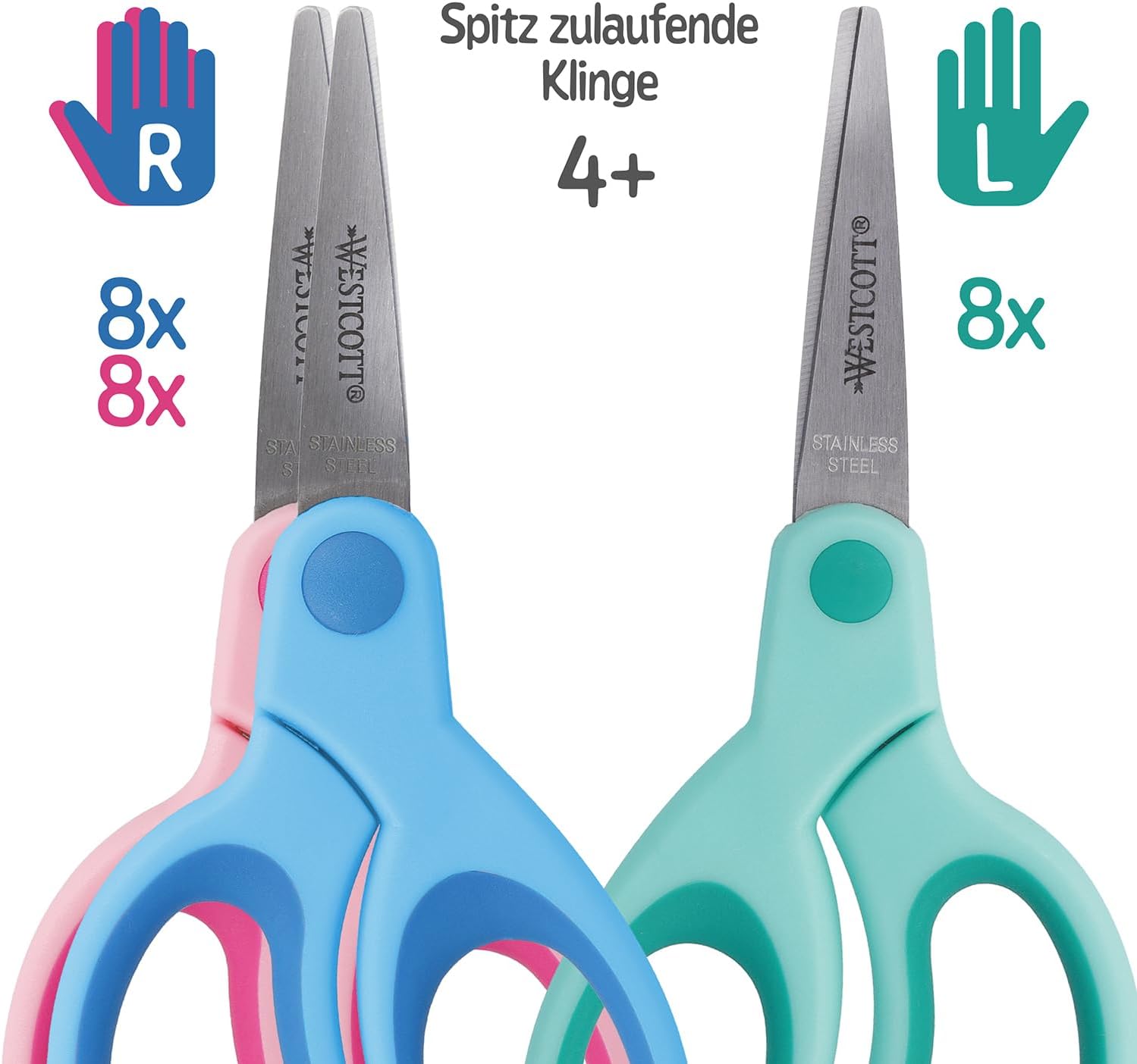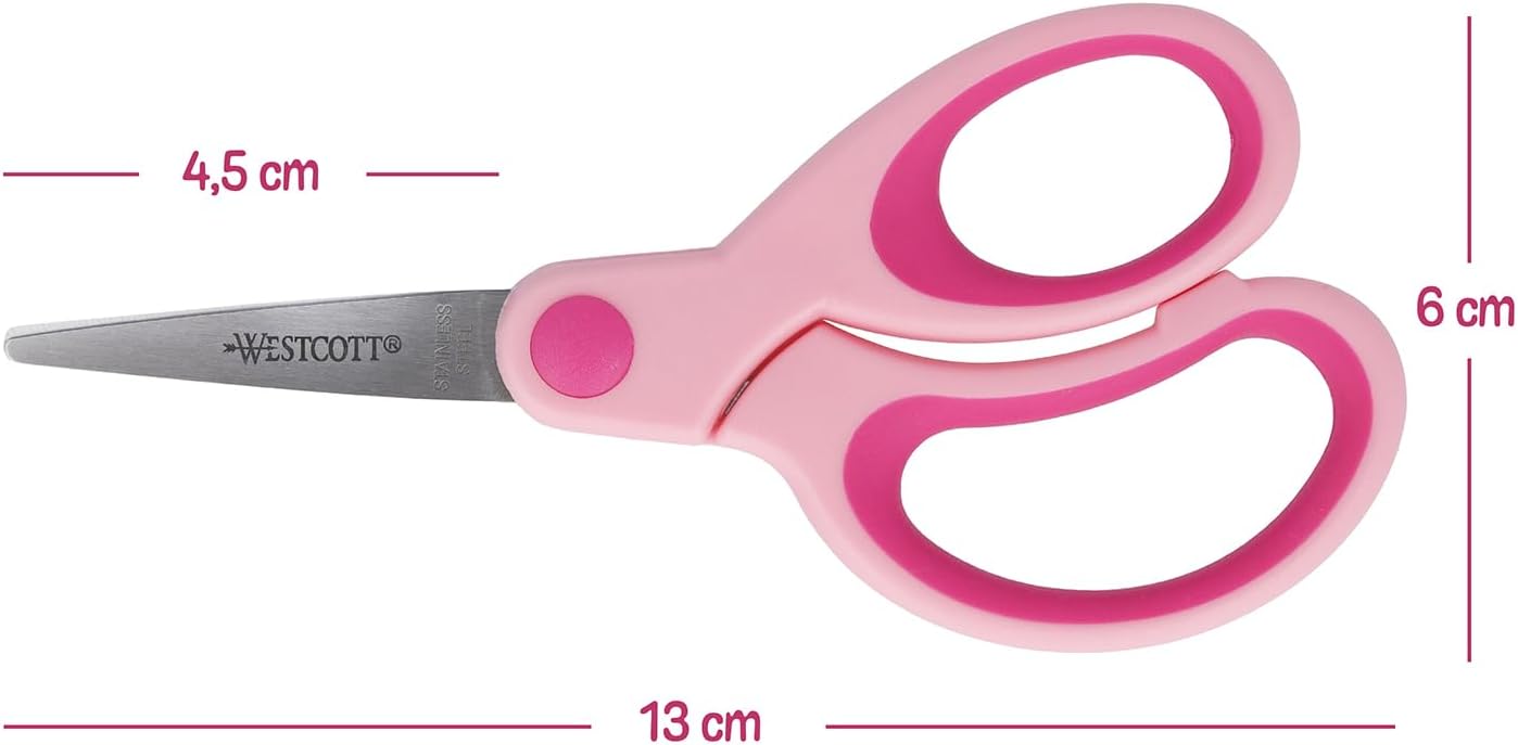 Impugnatura ergonomica e confortevole con impugnatura morbida: l'impugnatura morbida appositamente sviluppata offre alle mani piccole una presa sicura e confortevole, rendendo il taglio facile e confortevole. Dimensioni compatte - Con una lunghezza di 13 cm (5"), le forbici si adattano perfettamente alle dimensioni delle mani dei bambini e facilitano il taglio preciso. Perfetto per i bambini in età scolare dai 6 anni in su - Queste forbici per bambini sono state progettate appositamente per i bambini in età scolare per sviluppare le loro capacità di taglio in modo sicuro ed efficace. Qualità dal 1872 - Il marchio Westcott è da oltre 140 anni sinonimo di prodotti per la casa e l'ufficio con un design inconfondibile e un rapporto qualità-prezzo senza pari. La scatola espositiva contiene 16 forbici per destrimani. 8 forbici per mancini.