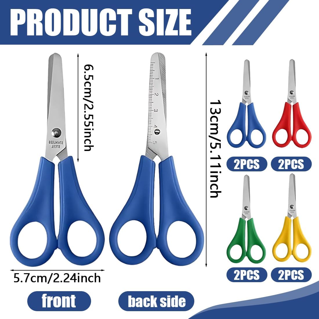 【Contenuto Della Confezione】 La Confezione Contiene Forbici Scuola Elementare In 4 Colori 2 Paia Di Ogni Colore E 8 Paia, Sufficienti Per Soddisfare L'Uso Quotidiano Dei Bambini. 【Durevoli】: l'acciaio inossidabile di alta qualità delle lame è durevole e leggero, garantendo un uso confortevole ed elevate prestazioni durature nel tempo. 【Design Di Sicurezza A Testa Rotonda】Le forbici per bambini sono progettate con testa rotonda e l'impugnatura è progettata con doppio anello, facile da impugnare e utilizzare. Che può essere utilizzato dalle mani sinistra e destra, appositamente progettato per i bambini. La testa rotonda può evitare di ferire i bambini, sicura da usare. 【 Qualità premium】le forbici sono realizzate in acciaio inossidabile di alta qualità. sono durevoli, non tossici, forti e non facili da rompere. 【Ampiamente Utilizzato】 Le forbici piccole scuola sono comode e pratiche, adatte a bambini e studenti. Puoi usarlo per tagliare la carta, creare artigianato, decorare album fotografici e album di ritagli e creare biglietti di auguri.