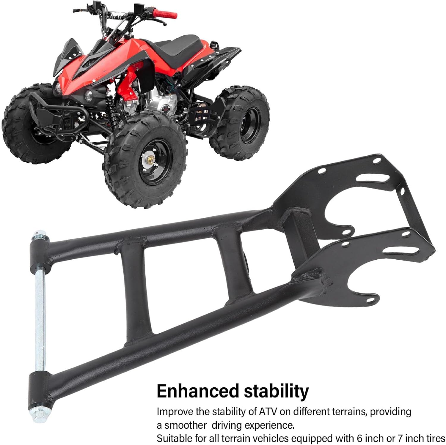 FORTE COMPATIBILITÀ: compatibile con veicoli fuoristrada dotati di pneumatici da 6" o 7". Questo telaio a braccio oscillante si adatta a varie esigenze di installazione ed è ideale per gli appassionati del fai da te. STABILITÀ MIGLIORATA: l'aggiornamento al nostro bilanciere posteriore migliora la stabilità del tuo ATV e consente un'esperienza di guida più fluida su vari terreni. ELEVATA RESISTENZA E DURATA: Realizzato in acciaio legato ad alta durezza in grado di sopportare sollecitazioni significative, garantendo affidabilità e prestazioni di lunga durata. SOSTITUZIONE IDEALE: questo forcellone funge da eccellente sostituto dei vecchi componenti, ripristinando efficacemente il normale funzionamento e migliorando la tua esperienza di guida complessiva. FACILE INSTALLAZIONE: Progettato per una facile installazione, il nostro braccio oscillante ti fa risparmiare tempo e fatica, effettuando aggiornamenti senza sforzo e senza passaggi e procedure complicate.