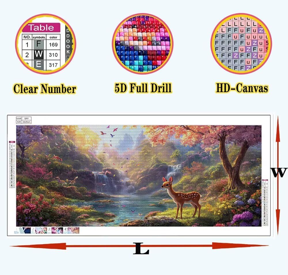 Foresta Diamond Painting Kit Completo, Cervo Diamond Painting Bambina 60x120cm DIY Full Drill Crystal Art , 5D Bambini Per Pittura Diamante Adulti Principianti Per Pittura Diamante Wall Decor A-U238