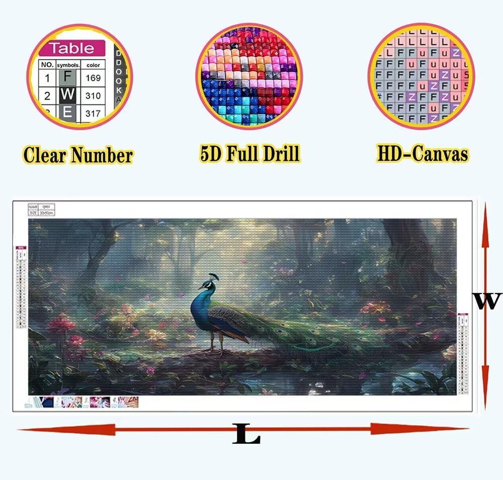 Foresta Diamond Painting Kit Completo, Pavone Diamond Painting Bambina 90x180cm DIY Full Drill Crystal Art , 5D Bambini Per Pittura Diamante Adulti Principianti Per Pittura Diamante Wall Decor A-U188
