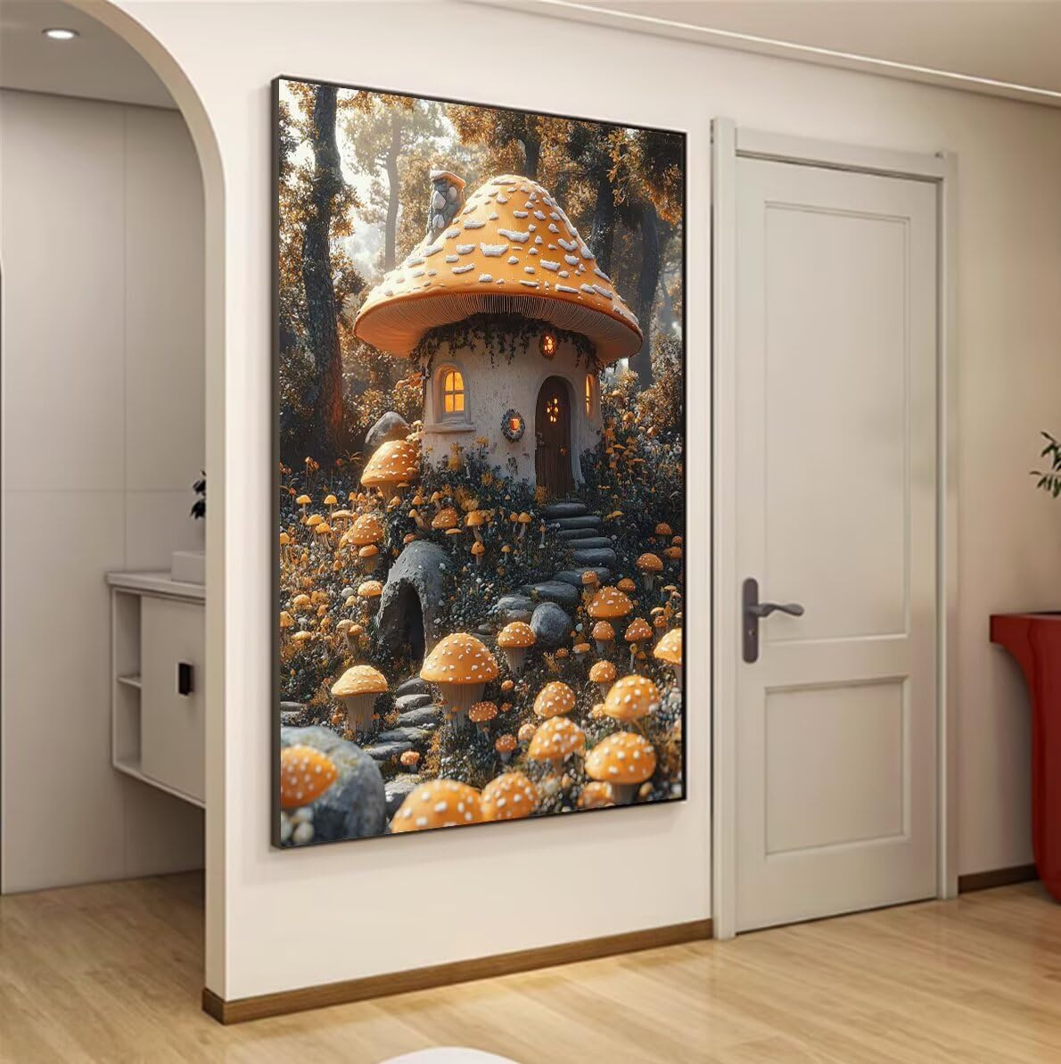 Foresta Dipingere con i Numeri Casa dei Funghi Paint by Numbers Dipingere con i Numeri Bambini con Cornice 30x40cm Tela, Kit Pittura Adulti Fai da Te con Vernici e 3 Pennelli, Home Room Decor F-744