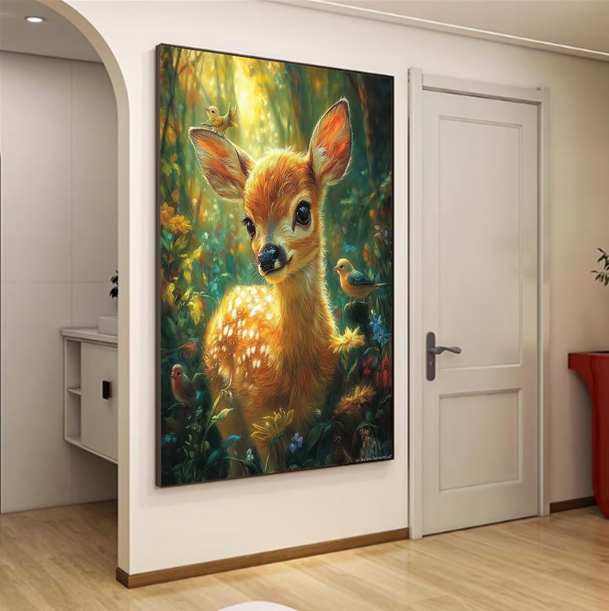 Foresta Dipingere con i Numeri Cervo Paint by Numbers Dipingere con i Numeri Bambini con Cornice 50x70cm Tela, Kit Pittura Adulti Fai da Te Creativo con Vernici e 3 Pennelli, Home Room Decor F-738