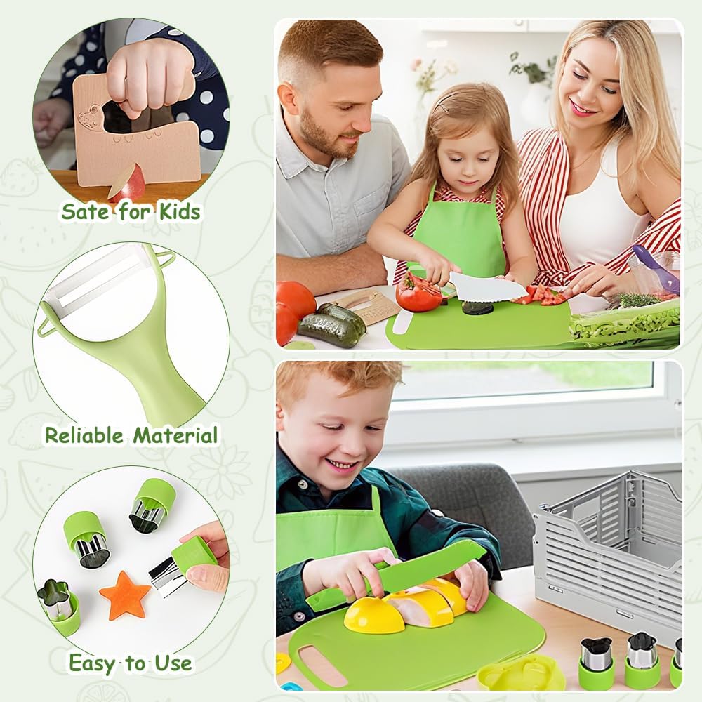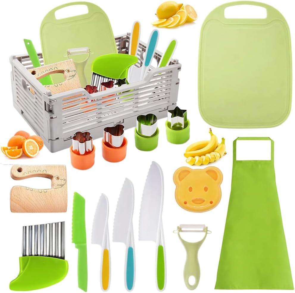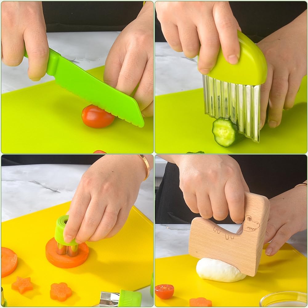 【Sicurezza e protezione ambientale】Coltelli da Cucina per Bambini realizzato in PP alimentare, plastica ecologica e altri materiali sicuri, è sicuro e inodore, con una superficie liscia. Taglia facilmente frutta, verdura e altri ingredienti senza graffiare la pelle dei bambini. Questo evita i rischi per la sicurezza dei coltelli convenzionali, offrendo ai genitori maggiore tranquillità. 【Set di coltelli conveniente】Coltelli da Cucina per Bambini include 15 accessori di varie dimensioni (come coltelli da frutta, coltelli da cucina), taglieri, grembiuli, pelapatate, ecc., che coprono una varietà di operazioni come affettare, raschiare, scavare, goffrare, ecc., adatti all'esperienza quotidiana in cucina dei bambini, alle scene fatte a mano, ecc., per migliorare il divertimento pratico. 【Design raffinato】Coltelli da Cucina per Bambini caratterizzato da un design raffinato e leggero, la superficie è decorata con raffinati motivi che emanano un'atmosfera naturale, rendendolo attraente per i bambini a prima vista, stimolando il loro interesse per la cucina e permettendo loro di godersi un momento meraviglioso mentre cucinano 【Focus sullo sviluppo delle competenze】Coltelli da Cucina per Bambini Può aiutare a sviluppare la coordinazione occhio-mano e il pensiero logico dei bambini, insegnando loro anche abilità di vita come la sicurezza in cucina e il riconoscimento del cibo, in linea con la filosofia educativa Montessori del "imparare facendo". 【Regalo perfetto per i bambini】Coltelli da Cucina per Bambini Può essere utilizzato per cucinare frutta e verdura, permettendo ai bambini di sperimentare scene di cucina reali, stimolare il loro interesse per la cucina, acquisire esperienza culinaria e aggiungere un'atmosfera gioiosa a picnic, feste di compleanno e attività genitori-figli. È un regalo perfetto per i bambini nella loro fase di crescita.