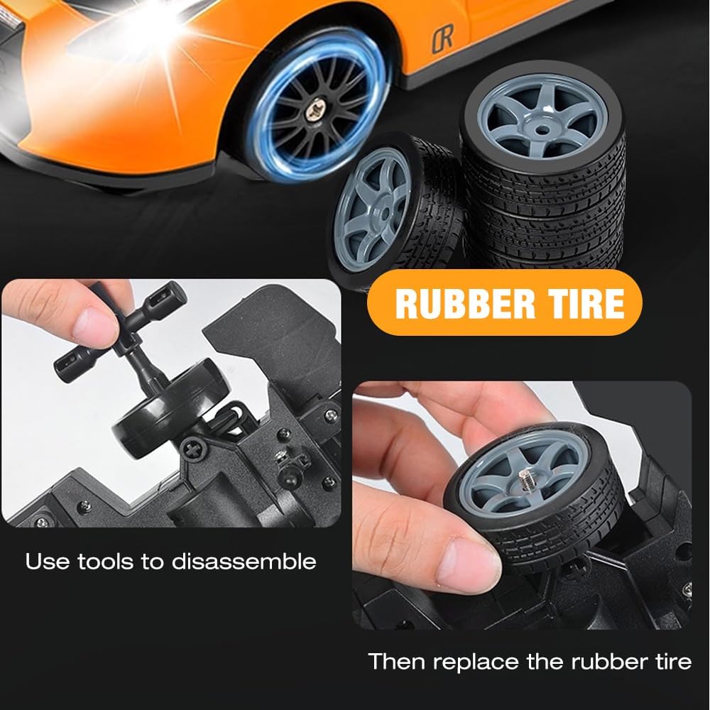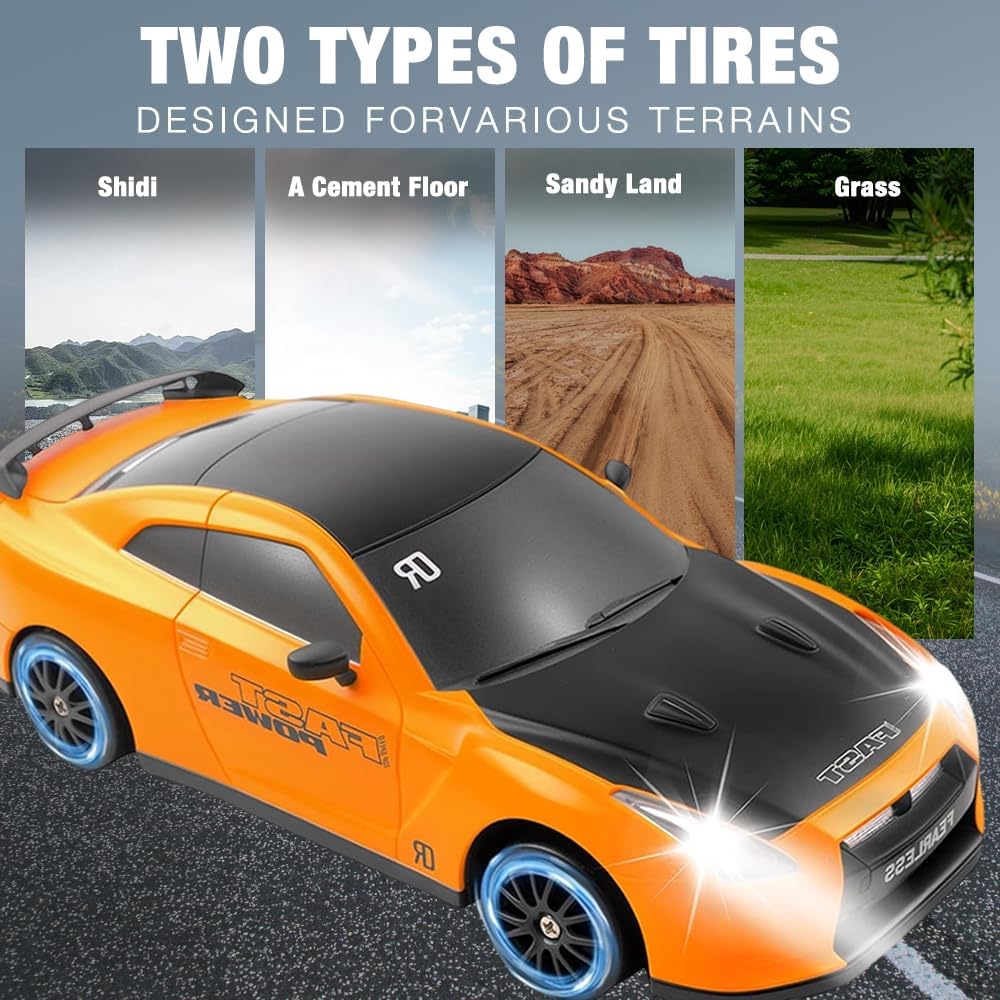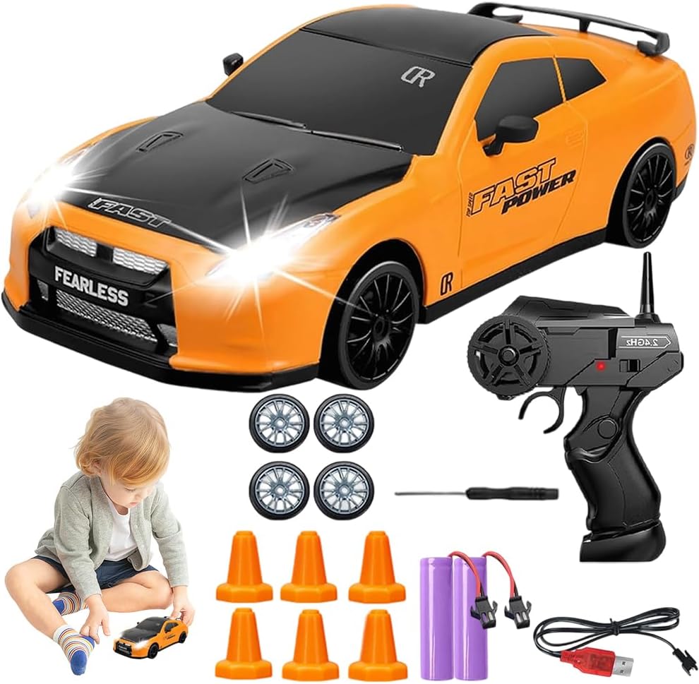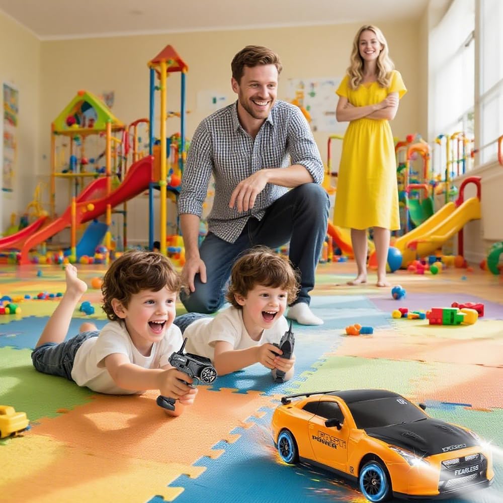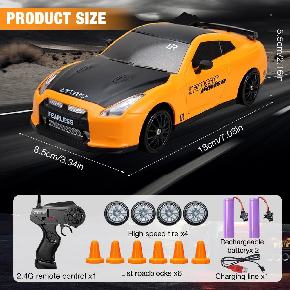 【Materiale resistente】La rc drift car è realizzata in PVC resistente e di alta qualità. Presenta una carrozzeria solida e un'elevata resistenza agli urti, mantenendo stabilità e durata in una varietà di ambienti difficili. Dotata di fari ad alta luminosità, è possibile localizzare rapidamente la rc drift car al buio. 【Batteria a lunga autonomia e ricarica sicura】Dotata di un sistema di trazione integrale e di un motore ad alte prestazioni, la velocità può raggiungere i 15 km/h. Forniamo due batterie ricaricabili da 3,7 V con cavi rinforzati e connettori premium, progettati per resistere a ripetuti utilizzi e piegamenti, prevenendo così guasti e cortocircuiti. Ogni batteria offre fino a 25 minuti di gioco dopo una carica completa. Il circuito di ricarica integrato offre protezione da sovraccarico e cortocircuito, garantendo massima sicurezza durante l'uso. 【Prestazioni potenti】Le nostre auto da corsa sono dotate di motori e sistemi di trasmissione ad alte prestazioni in grado di offrire prestazioni potenti. Grazie a un design eccellente, i veicoli mantengono stabilità e controllabilità anche ad alte velocità. Che si tratti di accelerazione in rettilineo o in curva, la rc drift car si comporta con facilità, offrendo ai giocatori un'esperienza di guida senza pari. 【Aspetto accattivante】L'aspetto di questa macchina radiocomandata è migliorato rispetto all'auto originale. È realizzata in PVC ad alta resistenza e dotata di fari ad alta luminosità, che la rendono facile da individuare al buio. Il telo copriauto in PVC di alta qualità è identico a quello di un'auto vera, offrendo un'eccellente flessibilità per prevenire rotture. 【Ideale come regalo】Questa auto da corsa telecomandata può essere utilizzata come regalo di compleanno, per la festa dei bambini o come regalo di Natale. Che tu sia un adulto o un bambino di età superiore ai 6 anni, un appassionato di auto da drift o un principiante inesperto, puoi facilmente padroneggiare le abilità di guida con un semplice utilizzo. I 6 blocchi stradali inclusi aggiungono nuovo divertimento al drifting. Vivi l'emozione delle corse ad alta velocità con la tua famiglia e i tuoi amici!
