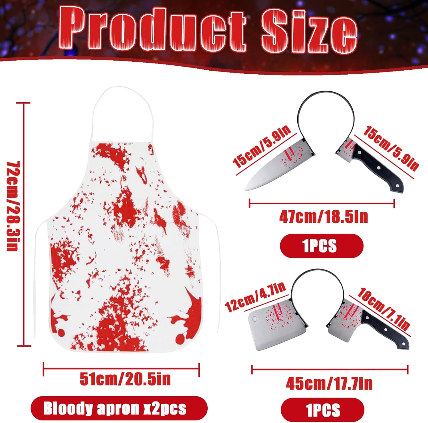 Forhome Grembiule di Sangue Halloween, Costume da Macellaio per Halloween,Confortevole e Traspirante, Materiale di Alta Qualità, Adatto a Donne, Uomini, Adulti, per Halloween, Carnevale, Feste