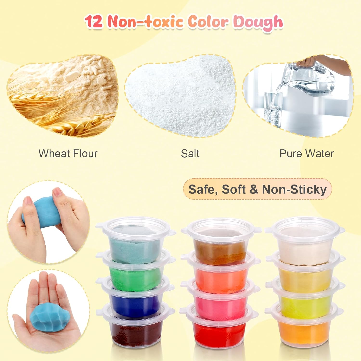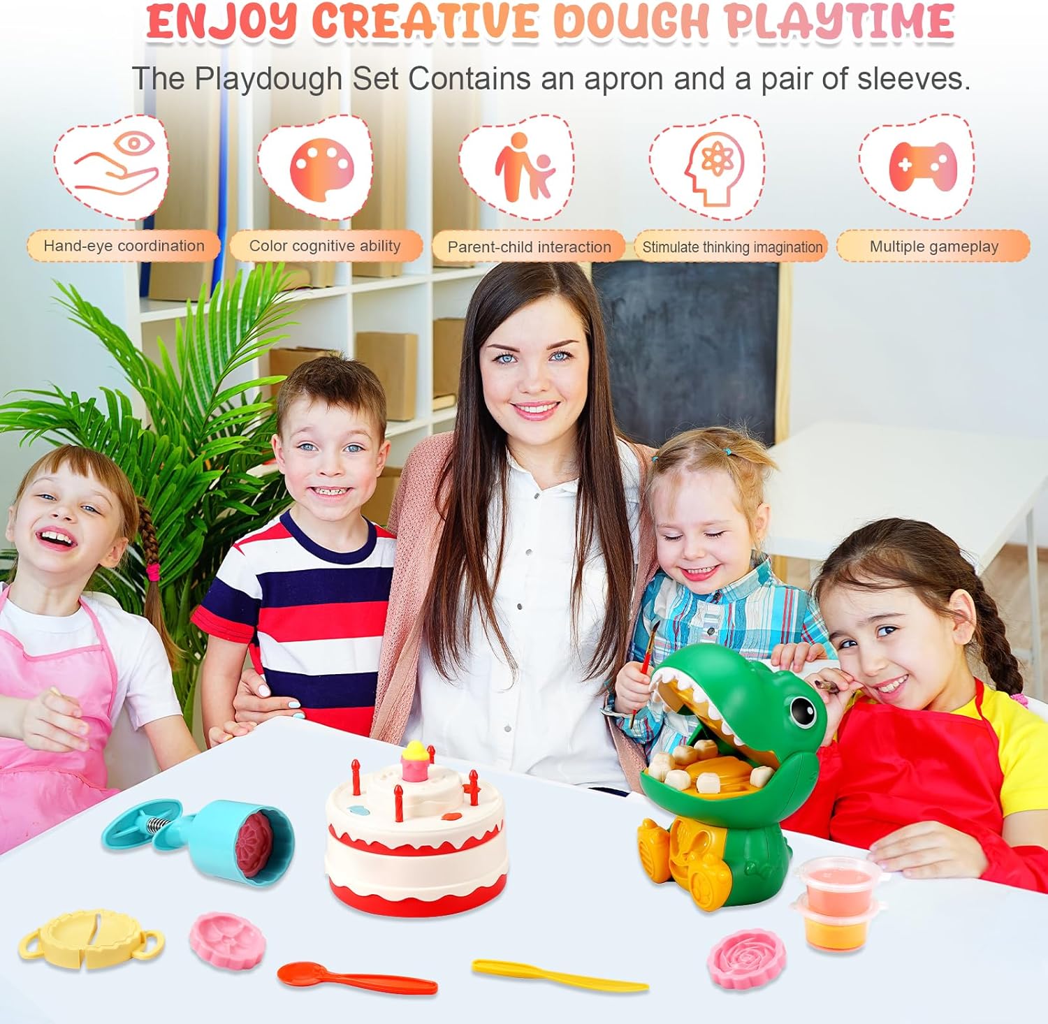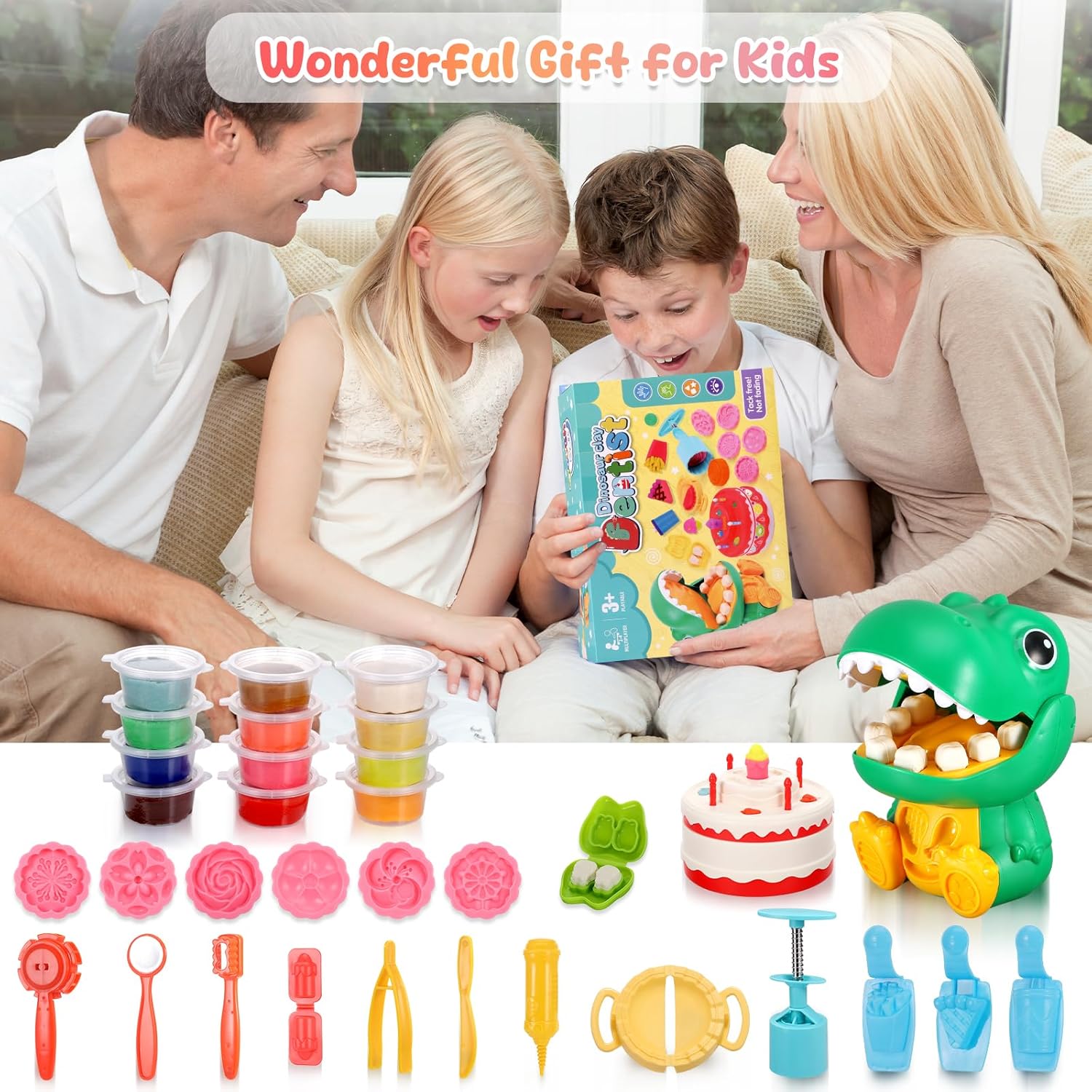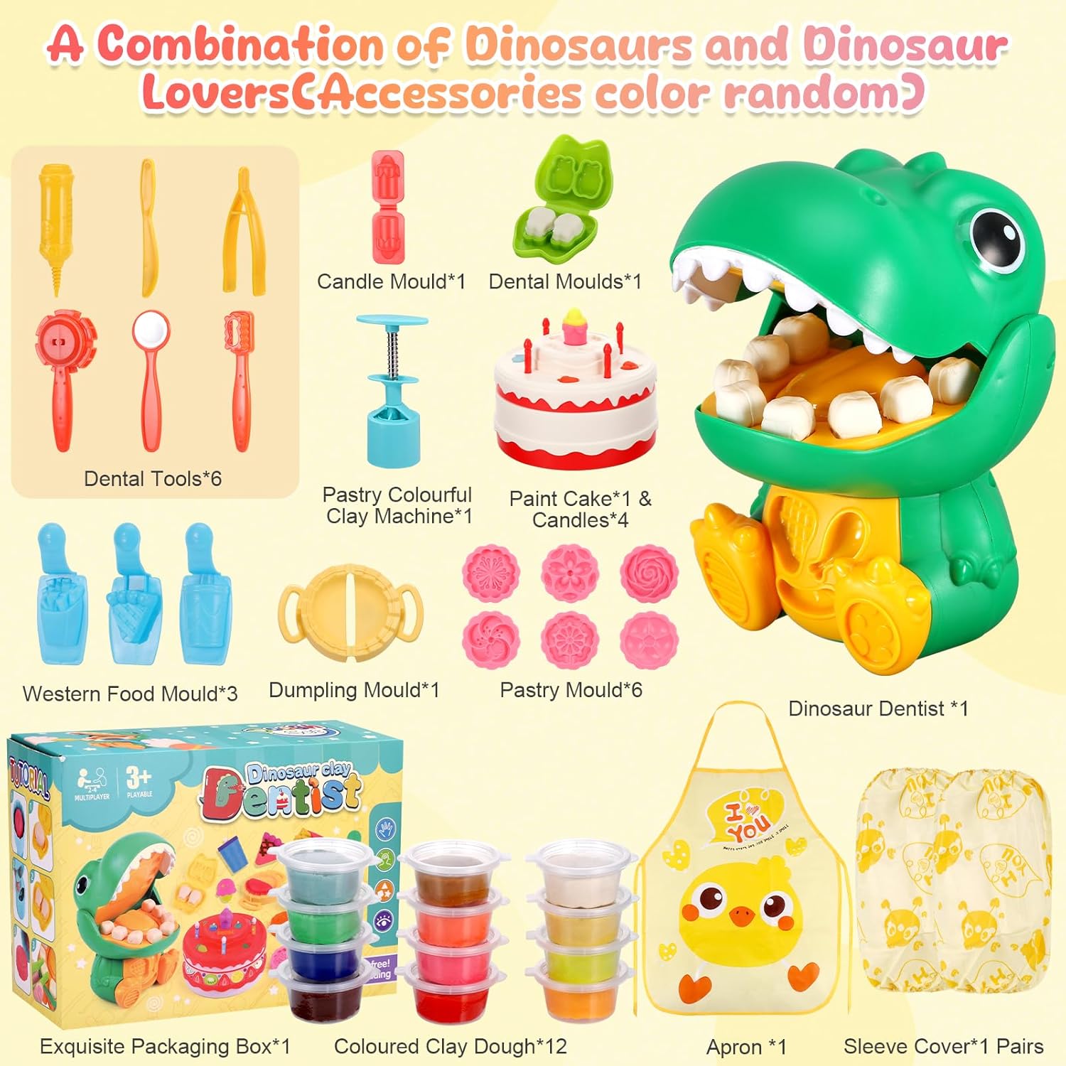 Set di pasta da gioco per dentisti: il set di pasta da gioco per dinosauri contiene un dentista dinosauro, strumenti dentali, vari stampi di pasta, strumenti dentali, pasta da gioco colorata, grembiule e manicotto. Un set di pasta da gioco completo, senza accessori aggiuntivi da acquistare, che permette ai bambini di fingere di essere un dentista e di imparare le cure dentali. Set di pasta da gioco di alta qualità: ogni accessorio della pasta da gioco è realizzato in plastica sicura e di alta qualità, un materiale molto robusto e colorato, non tossico. La pasta da gioco è realizzata con farina di grano commestibile, non grassa, non appiccicosa, può essere utilizzata più volte, sicura al 100%. Attività creative per il dentista: il set da dentista per dinosauri in argilla insegna ai bambini una lezione di scienze vivace e divertente, simulando la struttura della bocca. In questo modo, possono capire l'importanza di proteggere i denti e di sviluppare buone abitudini di igiene dentale. Incoraggia la creatività: i set di argilla da modellare dai colori vivaci e dalle forme diverse sono perfetti per incoraggiare la creatività dei bambini. Questi stampi e strumenti raddoppiano il tempo trascorso a giocare con la creta da modellare, stimolando il pensiero aperto e incoraggiando i bambini a vedere nuove possibilità! Regali per bambini: questo divertente ed educativo giocattolo di argilla da modellare per bambini offre una grande esperienza di gioco per i bambini che amano giocare con l'argilla da modellare ed è un'ottima scelta per i regali di Natale e di compleanno per bambini.