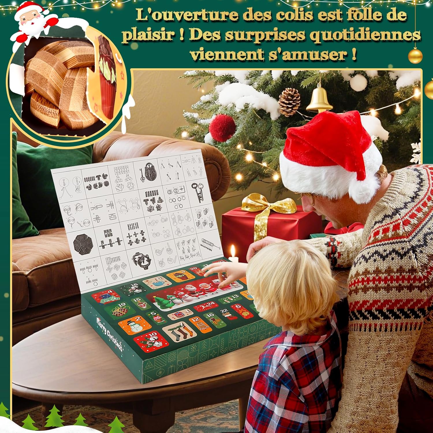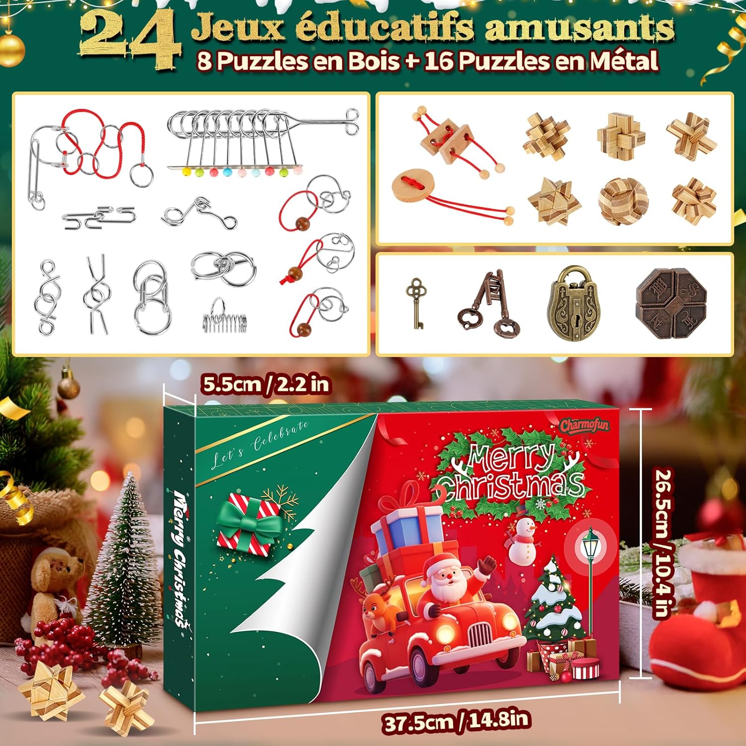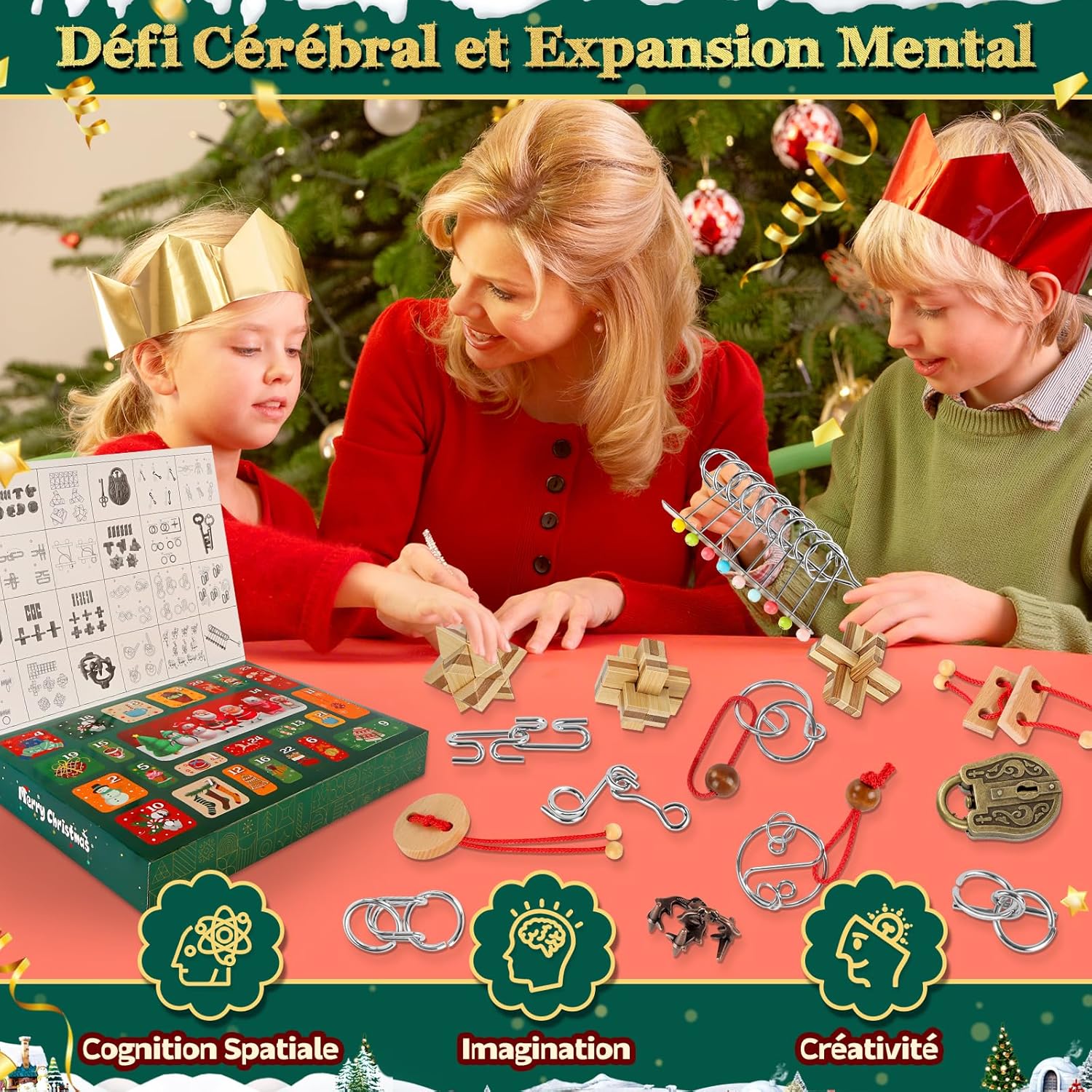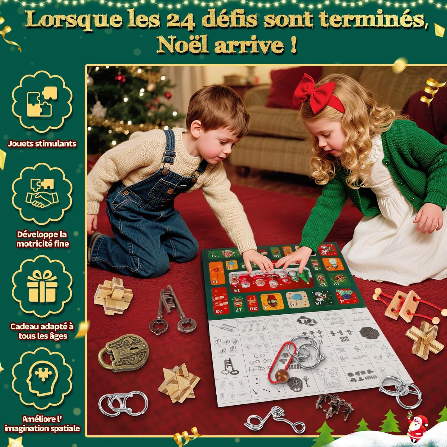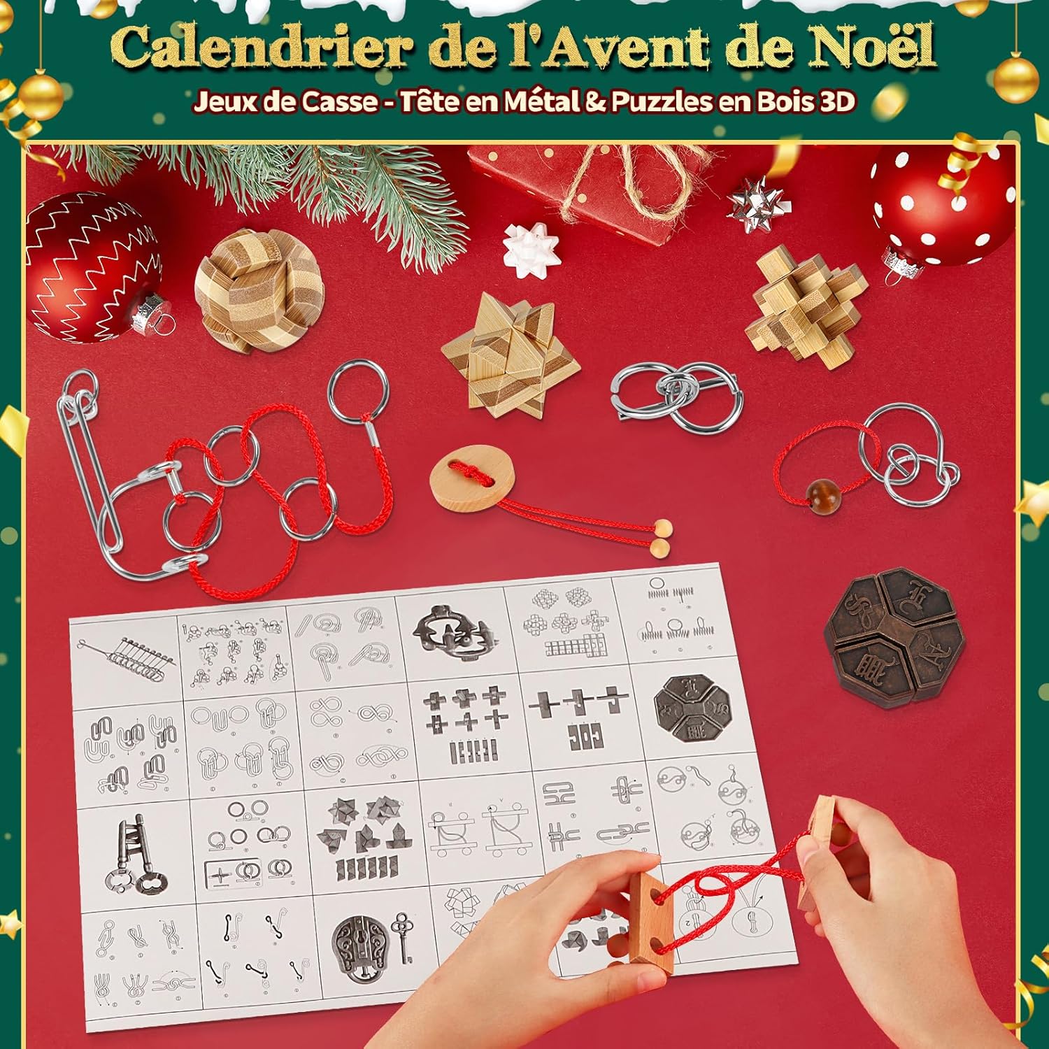 🎄【Calendario dell'Avvento 2025 – Una nuova sorpresa ogni giorno】-Vivi l'attesa del Natale come mai prima d'ora! Con il nostro calendario dell'Avvento puzzle, apri 24 piccole finestrelle piene di sorprese: 16 robusti puzzle in metallo e 8 puzzle in legno di qualità ti aspettano. Ogni giorno rivela una nuova sfida di logica, pazienza e concentrazione. Un calendario di Natale 2025 che piacerà a grandi e piccini. 🧩 【Grande varietà - Puzzle per tutti i livelli】 -Questo calendario dell'Avvento puzzle offre un colorato mix di sfide: 3 puzzle con fune metallica, 2 puzzle con corda di legno, 6 enigmatici mini-cubi e 13 puzzle in metallo particolarmente complessi. Dal più semplice al più difficile: ogni giorno diventa un successo. Ideali anche come piccola idea regalo per il calendario dell'Avvento, favorendo la creatività, la pazienza e la manualità. 🌟【Stimola il pensiero e la concentrazione – Un calendario dell'Avvento divertente e intelligente】-I nostri puzzle dell'Avvento non sono solo semplice intrattenimento. Allenano la logica, la visualizzazione spaziale e le capacità di risoluzione dei problemi. Invece di trascorrere ore davanti agli schermi, bambini e adulti scoprono qui un vero piacere di riflessione – quasi come un gioco analogico dell'Avvento, che stimola l'immaginazione e sviluppa la concentrazione. 🎅【Momenti in famiglia e piacere condiviso】 -Questo calendario dell'Avvento puzzle 2025 crea momenti unici per grandi e piccini: i bambini si divertono a risolvere, gli adolescenti affrontano nuove sfide, gli adulti si godono rilassanti pause cerebrali. Da soli o in compagnia, il piacere del puzzle unisce generazioni e trasforma l'Avvento in un'esperienza indimenticabile. Un vero favorito tra i calendari dell'Avvento 2025. 🎁【Scatola festiva – Magia natalizia garantita】-Presentato in una confezione regalo graziosamente decorata con motivi natalizi, questo calendario dell'Avvento 2025 è pronto per essere offerto. Perfetto come regalo originale per la famiglia, una piccola attenzione o una sorpresa quotidiana nel periodo dell'Avvento. Con questo calendario dell'Avvento puzzle offri molto più che un gioco: crei ricordi condivisi e momenti magici.