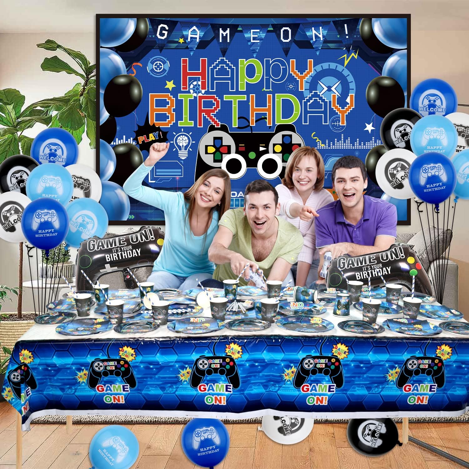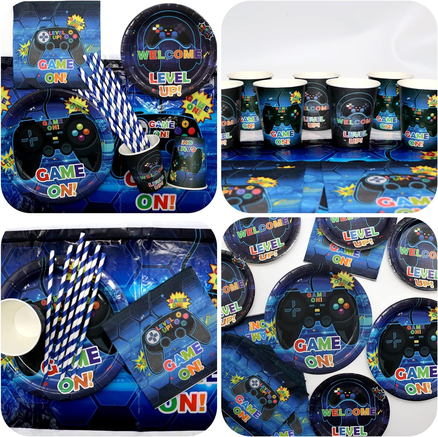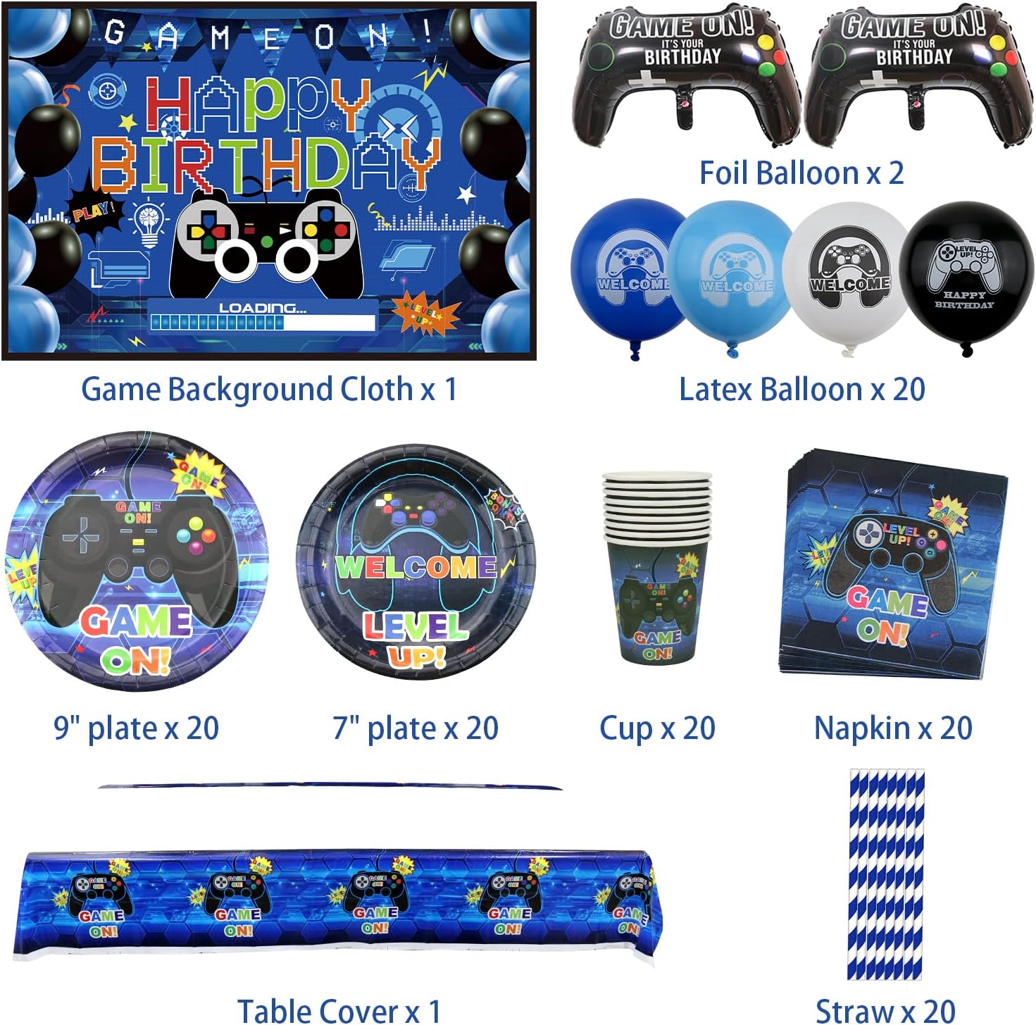 Tutto ciò di cui hai bisogno: prendi il nostro set di forniture per feste per videogiochi come regalo per loro, adulti e bambini sono pieni di temi giocosi e uno schema speciale, lo adorerai e avranno una festa di compleanno emozionante e indimenticabile. Disegni accattivanti: le forniture per feste di compleanno sono a tema videogiochi, combinando i classici motivi degli elementi di gioco con colori vivaci li rende adorabili e accattivanti, lo sfondo di gioco è ottimo per fotografia, foto, cabina fotografica, decorazioni per la casa, carta da parati e sfondo del muro scene. che sarà favorito da bambini e uomini di età diverse e ti regalerà un compleanno memorabile. MATERIALI : Piatti, tazze e tovaglioli sono fatti di carta, affidabili e sicuri da usare. Lo sfondo di buon compleanno è realizzato in oxford, colorato e luminoso senza sbiadire facilmente. PACCHETTO VALORE - Set di forniture per feste di compleanno per giochi. Include uno sfondo di gioco HAPPY BIRTHDAY, 20 piatti piani da 9 pollici, x 20 piatti da dessert da 7 pollici, 10 toppers per torta, 20 tazze, 20 tovaglioli, 20 coltelli, 20 cannucce, 1 tovaglia da giocatore. AMPIE OCCASIONI: una festa a tema di videogiochi può essere organizzata in tutti i tipi di luoghi, come la scuola e la casa, all'aperto e al chiuso. Questo pacchetto è la scelta migliore per la festa di compleanno a tema di videogiochi di tuo figlio, il festival del gioco, il carnevale del gioco o qualsiasi altra celebrazione sui giochi.
