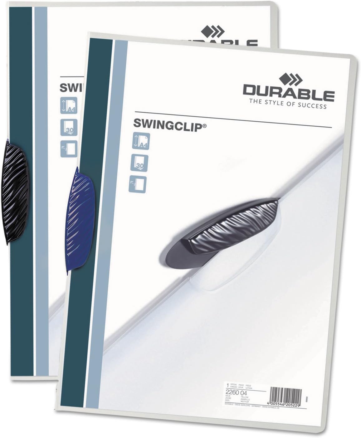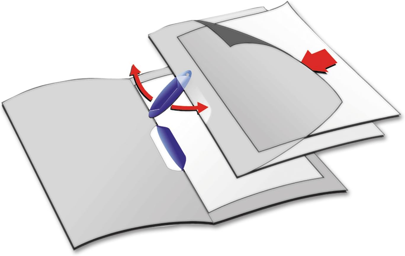 L'elegante clip sagomata lega insieme i documenti e li tiene in posizione. I documenti possono essere scambiati o recuperati rapidamente e facilmente. Non è necessario praticare fori. La copertura anteriore si apre piatta per una facile visualizzazione. Il polipropilene extra forte è trasparente su entrambi i lati.