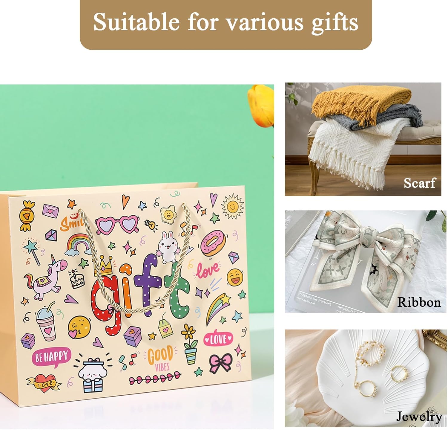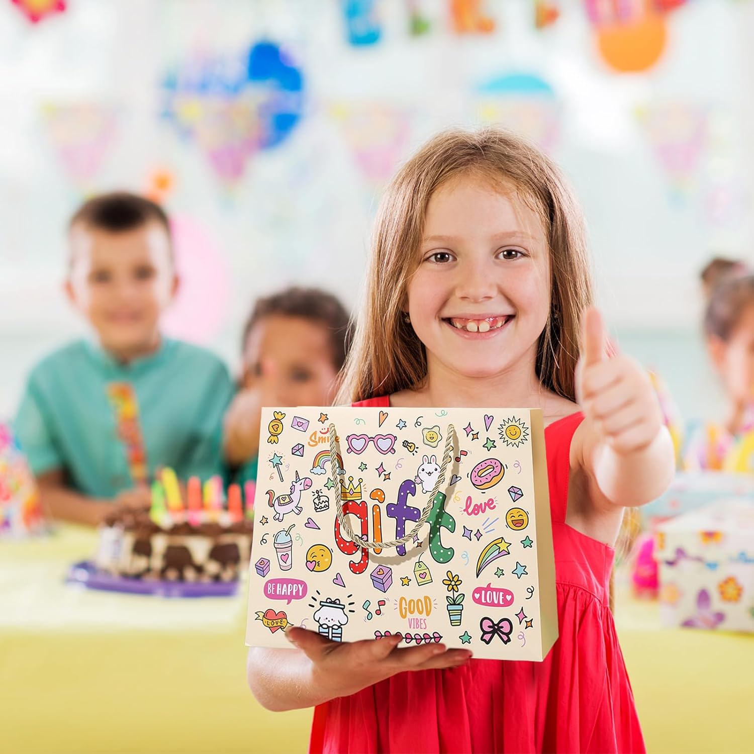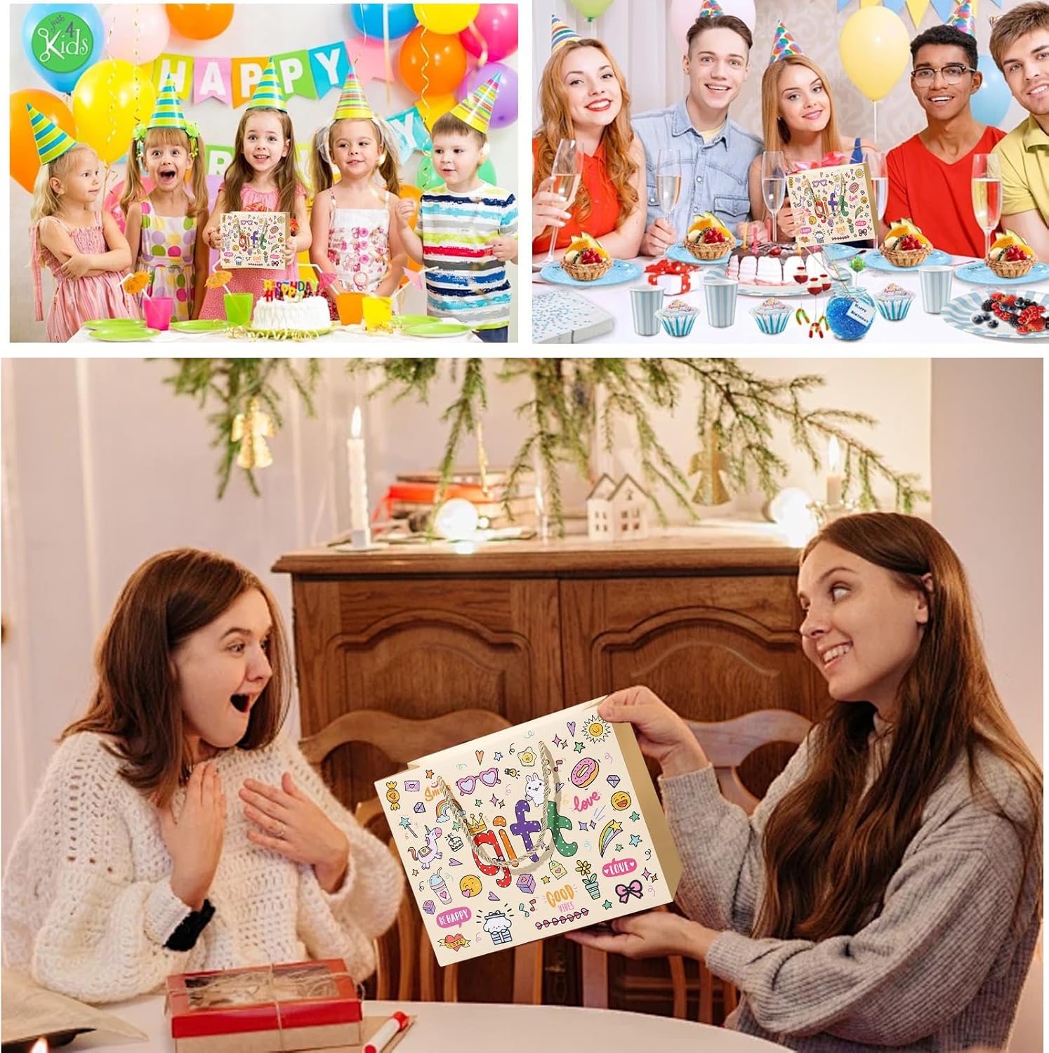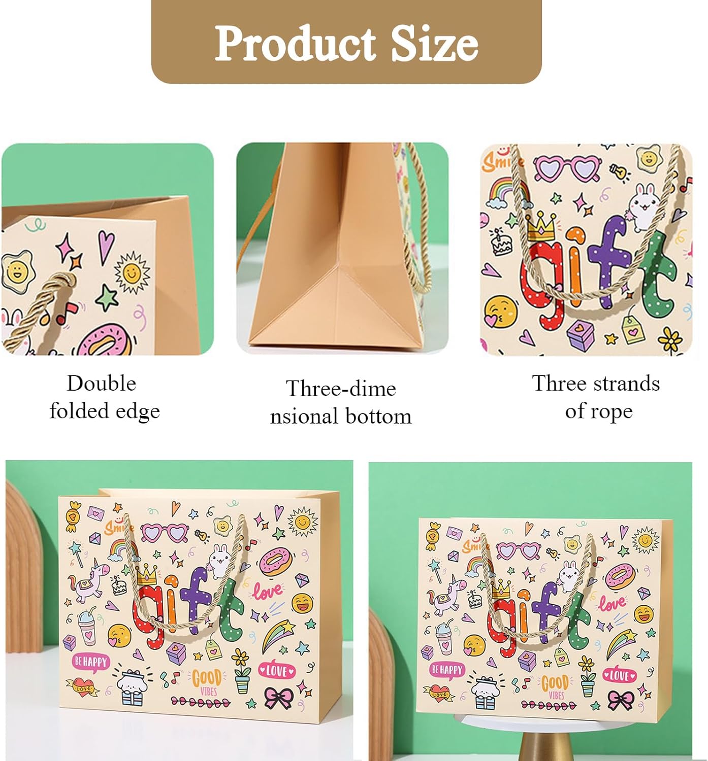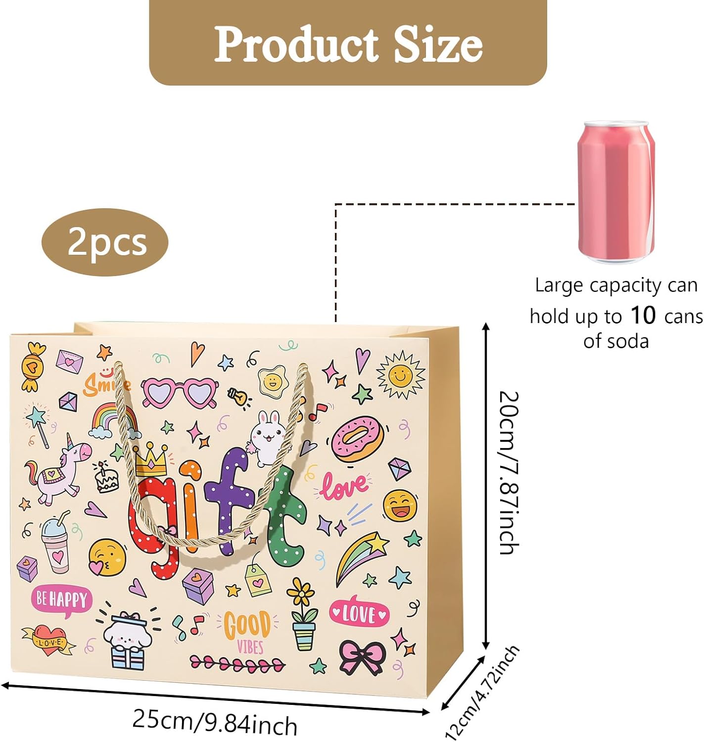 【Sacchetti regalo】 Include 2 sacchetti di carta per feste. Ogni sacchetto di carta misura 25x20x12 cm, abbastanza per confezionare dolci e regali per le feste. 【Design Creativo】I graziosi sacchetti regalo con motivi di lettere colorate in stile cartone animato deliziano i bambini. Perfetto per regali di compleanno, feste per bambini o come confezione regalo per dolci e piccoli regali. 【Dimensioni pratiche】 Misurando 25x20x12 cm, questi sacchetti regalo sono abbastanza piccoli per le mani dei bambini, ma abbastanza grandi per un sacco di dolcetti. I sacchetti di carta con manici sono facili da trasportare e da installare. 【Ecologico e sicuro】 I nostri sacchetti di carta per il compleanno dei bambini sono realizzati in materiale atossico e privo di sostanze chimiche nocive. Le robuste maniglie li rendono durevoli e adatti ai bambini. 【Ampiamente usato】 Ideale per compleanni di bambini, feste di compleanno, feste estive o come regalo. I sacchetti regalo in carta sono perfetti per confezionare dolci, piccoli giocattoli o articoli per il bricolage.