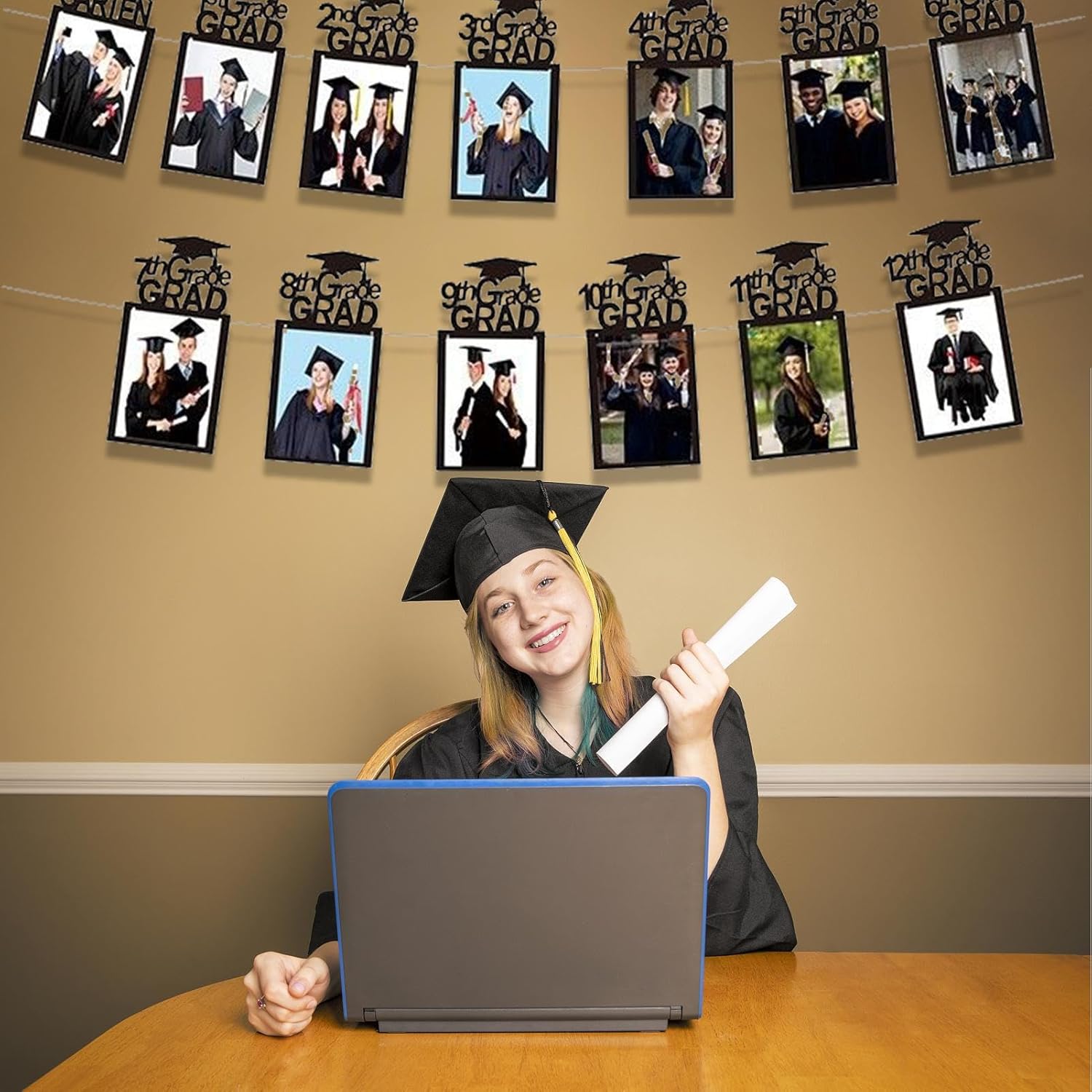 Ampia applicazione: adatto per feste di laurea dagli asili alle università, questo striscione fotografico graduale crea un'atmosfera allegra e accogliente in vari eventi educativi e crea un momento indimenticabile per tutti i partecipanti durante le celebrazioni Facile da applicare: modernizza il tuo processo di decorazione con uno striscione fotografico di chiusura appositamente progettato per una maggiore efficienza durante l'installazione. Il pratico sistema di sospensione assicura che lo striscione sia fissato in modo sicuro e senza sforzo e pronto a migliorare l'atmosfera del tuo evento. Un must per tutti coloro che apprezzano soluzioni rapide e semplici. Facile da installare rende la preparazione un gioco da ragazzi. Materiale resistente: realizzato con materiali progettati per durare nel tempo, questo striscione fotografico Graduation offre una soluzione stabile per mostrare i tuoi momenti speciali. Il materiale morbido e infrangibile assicura che lo striscione non venga danneggiato anche con un uso frequente o durante lo stoccaggio. È ideale per feste di laurea e altre celebrazioni in cui desideri apprezzare i tuoi risultati. Affidatevi a un prodotto che sia Lavorazione delicata: la pregiata lavorazione artigianale incontra il classico design finale e sottolinea significativi desideri di benedizioni. Allo stesso tempo, lo striscione offre uno sfondo visivamente accattivante per servizi fotografici. Durante le feste attira tutti gli sguardi su di sé Facile da usare: crea facilmente un piano di decorazione di laurea completo per tutti i livelli di istruzione, dalla scuola materna all'università. Usa articoli popolari come palloncini e nastri e completali con altri accessori indispensabili per feste di laurea per feste indimenticabili