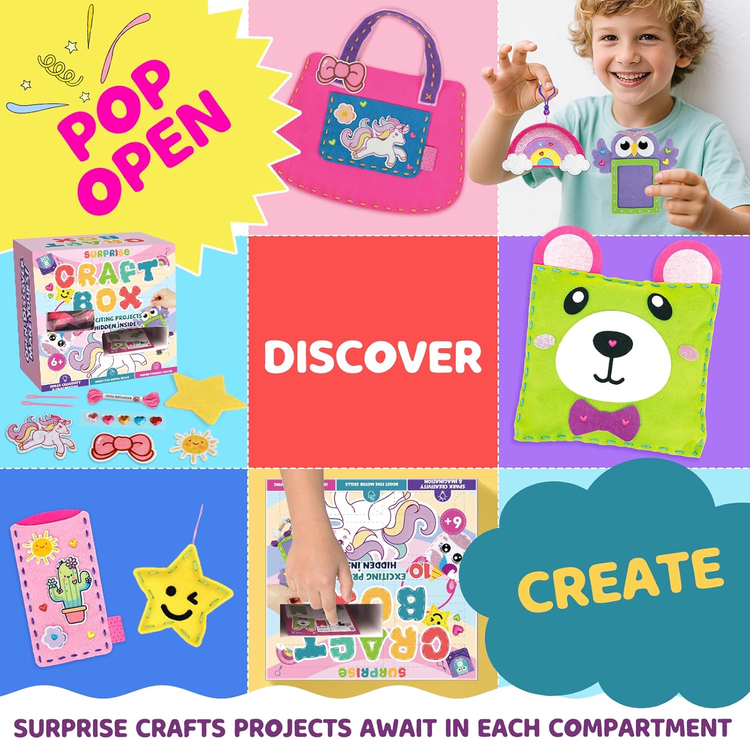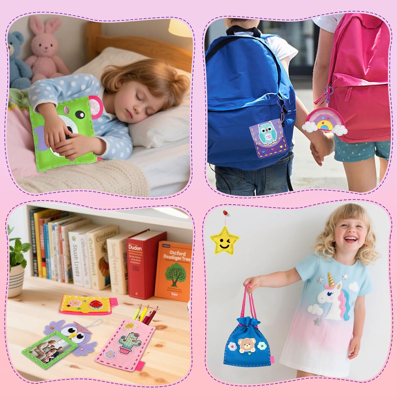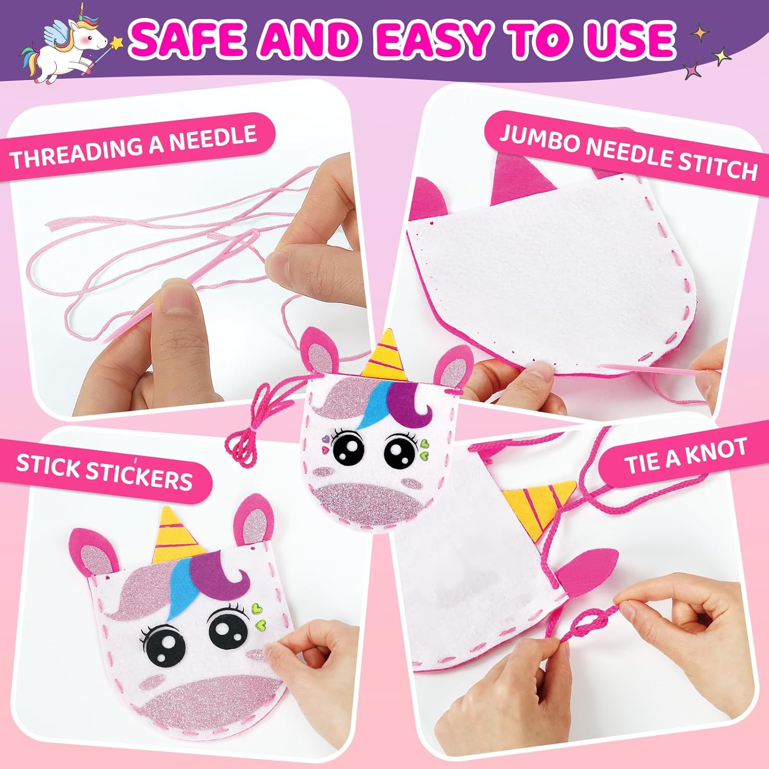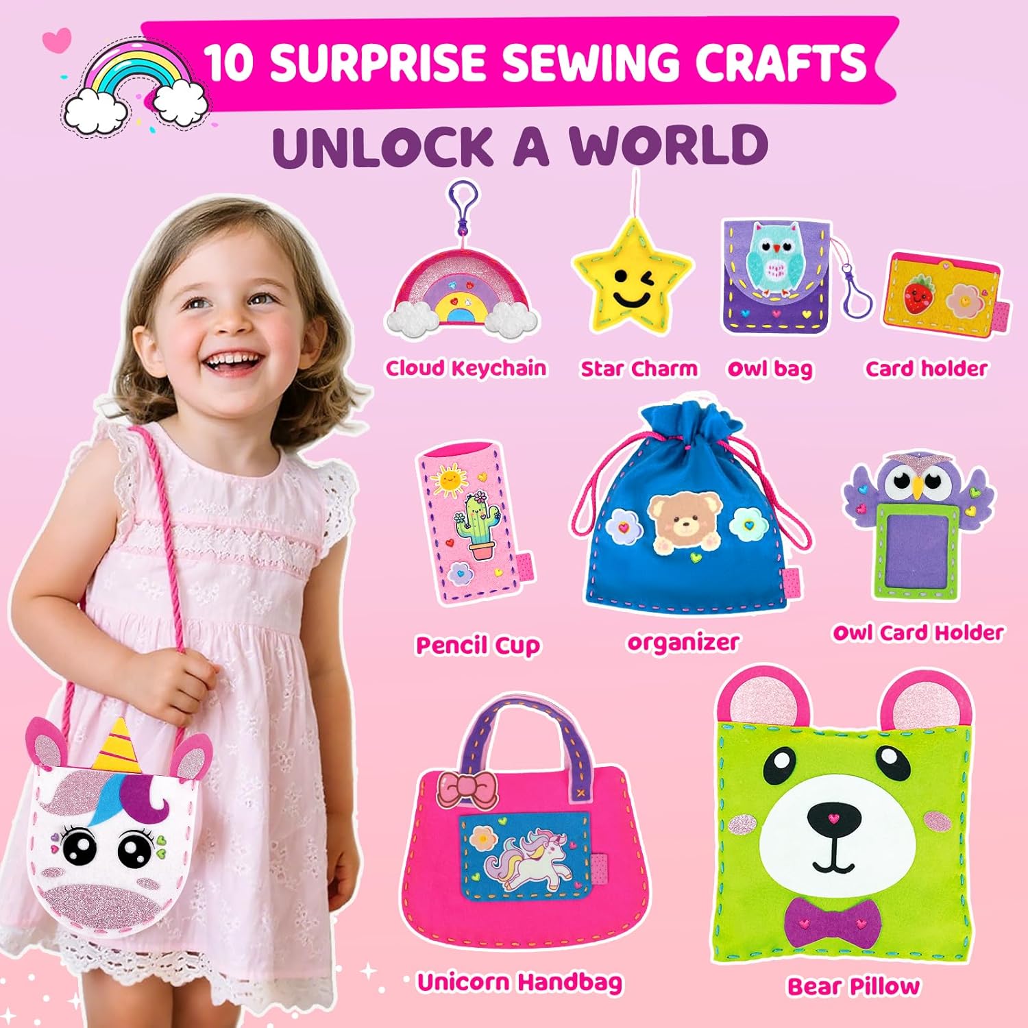10 progetti di cucito a sorpresa in una scatola. Questo kit da cucito completo per bambini include 10 progetti adatti ai principianti: uno zaino a forma di unicorno, un ciondolo decorativo a forma di stella, un cuscino, una borsetta, due sacchetti per gufi, una mini custodia per carte, un portapenne, una custodia per riporre oggetti e un ciondolo arcobaleno. Per imparare senza stress e divertimento immediato senza conoscenze preliminari! Giocattolo educativo creativo: promuove le capacità motorie e la concentrazione a partire dai 6 anni. Questo set da cucito allena giocosamente la pazienza, la creatività e le capacità motorie. Un ottimo modo per indurre i principianti all'arte e al bricolage! Questi kit da cucito promuovono la creatività e la capacità del bambino di affrontare compiti più complessi. Fai da te semplice e pulito: in ciascuno dei 10 scomparti troverai tutto per un progetto: pezzi in feltro pretagliati, lana, una grande spilla da balia, ovatta, bottone di chiusura, pietre decorative e adesivi per la decorazione. Basta unirlo con l'ago di plastica o le mani. Include istruzioni chiare per il kit da cucito a forma di peluche. Tutto per un divertimento immediato Ampiamente usato: i set di artigianato in feltro non sono solo un giocattolo educativo, ma anche un bel mestiere e una decorazione. Versatile: si può portare sulla schiena, tenere in mano, attaccarlo alla borsa o semplicemente ovunque vi piaccia! Il regalo ideale per feste di compleanno per bambini, Natale: stai cercando un regalo creativo per ragazze o ragazzi dai 4, 5, 6, 7, 8, 9, 10, 11, 12 anni? Questo set da cucito entusiasmerà! Confezionato in una scatola splendidamente progettata, pronta per essere regalata e far brillare gli occhi dei bambini. È un regalo perfetto per un bambino o un amico.
