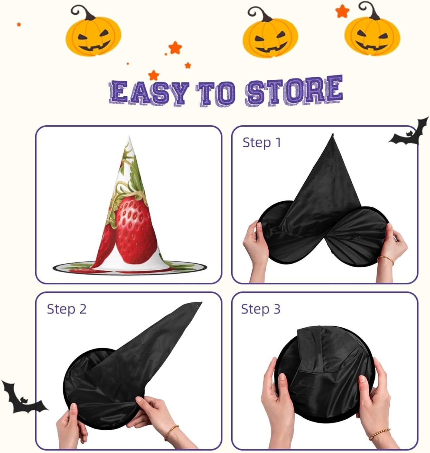 Fai Un'Impressione Questa Fragola Clipart Stampa Halloween Con La Nostra Splendida Decorazione Cappello Strega. Costruito in tessuto Oxford, questo cappello di Halloween con stampa clipart fragola offre comfort e durata, promettendo un accessorio di Halloween che resisterà alla prova del tempo. Il suo design unico permette di essere piegato e attorcigliato per risparmiare spazio, e il materiale leggero lo rende facile da trasportare. Con un'attenta costruzione accessoria, è realizzato per adattarsi alla maggior parte delle persone, assicurando che tutti possano godersi le feste di Halloween. Che tu sia fuori a una festa, Carnevale, mascherata o semplicemente godere di gioco di ruolo, il nostro cappello da strega con stampa clipart fragola promette di essere la vita dell'evento. Inoltre, la manutenzione è un gioco da ragazzi: basta gettarlo nel lavaggio ed è come nuovo.