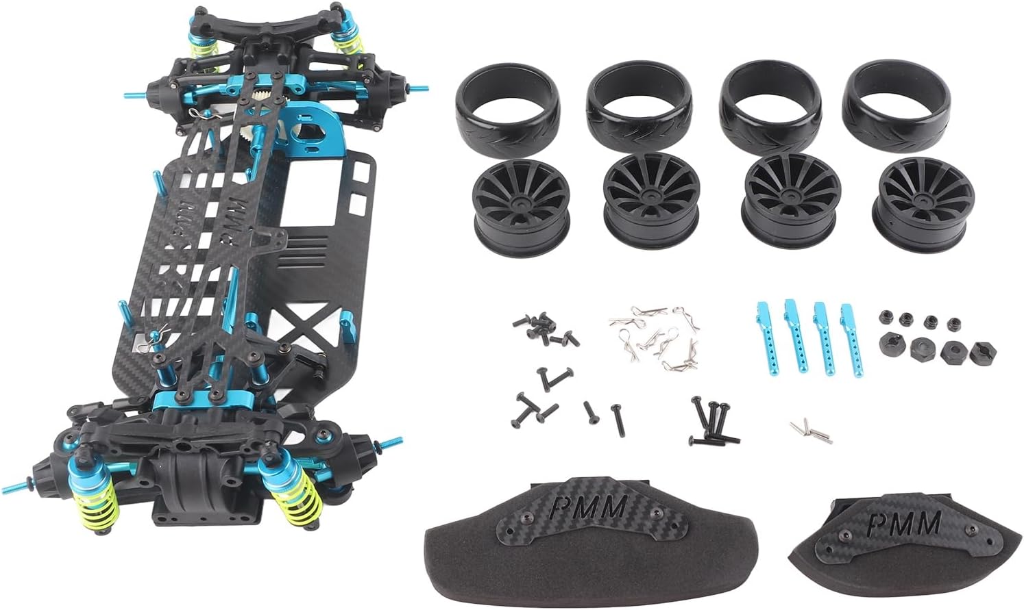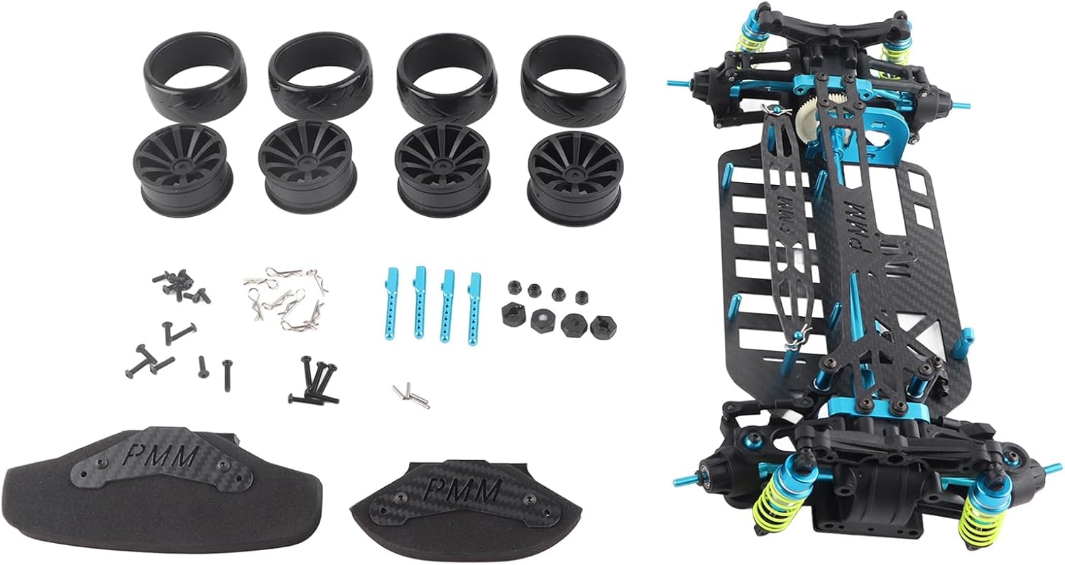 [Shocks Struts Damper] - 4 pcs Shocks Scorse Smoper per ridurre efficacemente dossi e shock durante la guida. [Base motori in lega di alluminio CNC stabile] - Garantisce stabilità e robustezza, riparando saldamente il motore in posizione. [Easy Assembly and Operation] - Semplice da assemblare, gestire e aggiunge più divertimento alla tua esperienza in auto RC. [Alberi di trasmissione in acciaio] - Quattro alberi di trasmissione in metallo in acciaio con elevata durezza e proprietà di lucidatura. [telaio in fibra di carbonio di alta qualità] - fornisce durata e stabilità, prevenendo graffi accidentali.