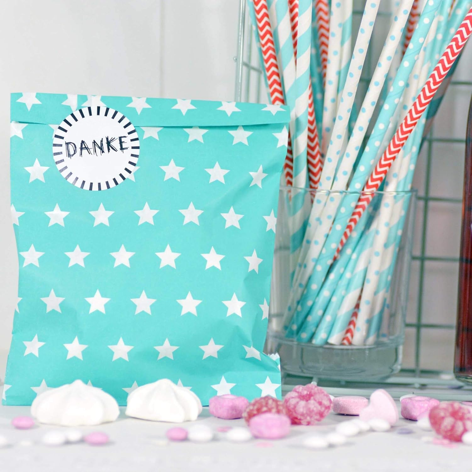 Sacchetti di carta piatti e non patinati in diversi colori vivaci e design adorabili 45 grammi di carta, dimensioni 13 x 16,5 cm più 2 cm di patta da piegare Adatti per alimenti e quindi ideali per barrette di cioccolato, tavole dolci, calendari dell'Avvento, regalini per compleanni di bambini Adatti per confezionare alimenti secchi come caramelle, soda, cioccolato, noci, marshmallow Suggerimento per il design: piegare la patta due volte e utilizzare un adesivo come chiusura. Sembra fantastico!