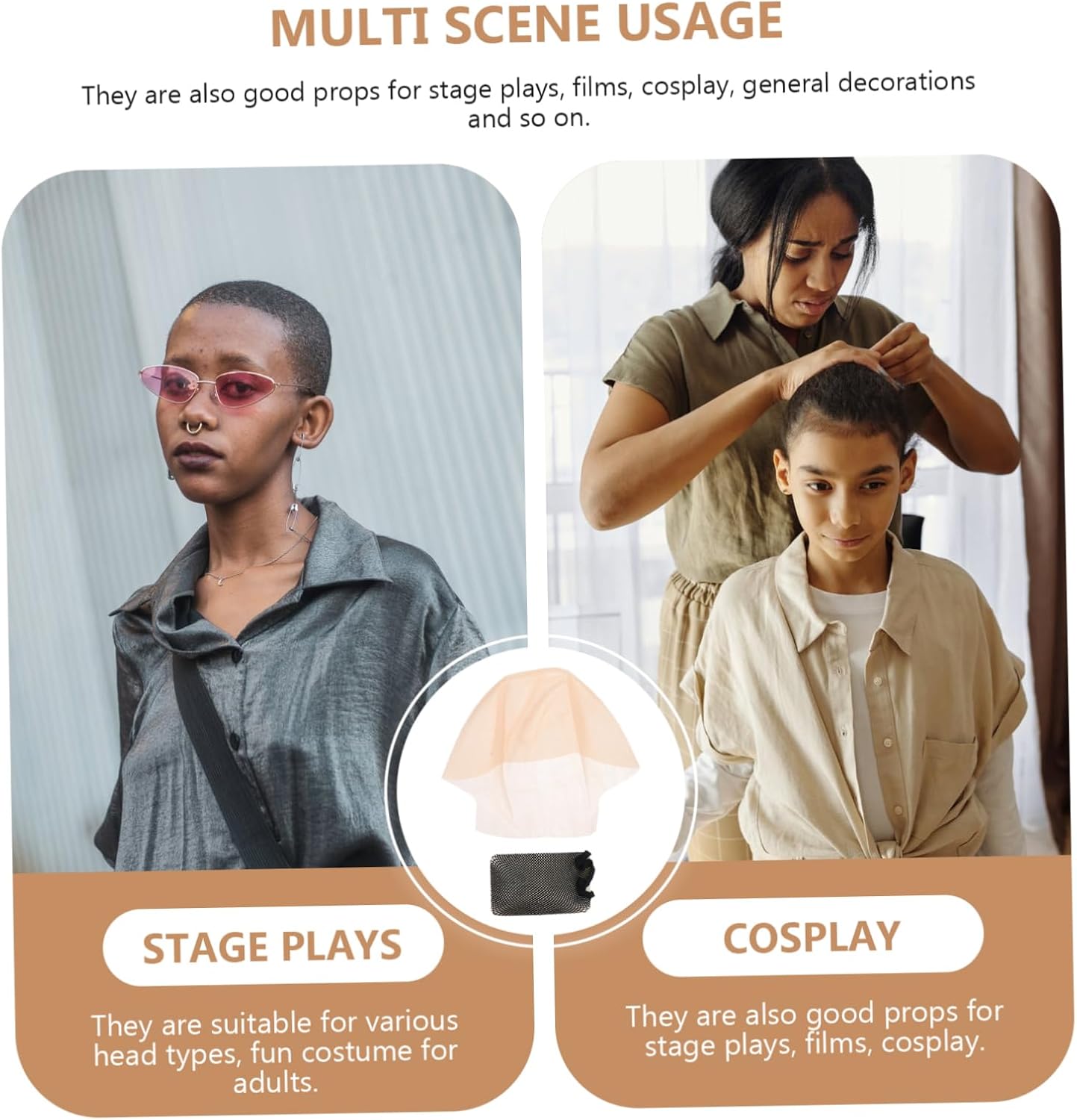 Dopo aver sistemato sulla testa, può usare i cosmetici per renderlo lo stesso della tua pelle. Questo berretto calvo ti darà una sensazione realistica e ti renderà più attraente e alla moda. I tappi elastici sono adatti per vari tipi di testa, buoni oggetti di scena da vestirsi in occasione o festival speciale. Aggiungi atmosfera da festa, rendendo la tua festa piena di divertimento e rendendo i tuoi ospiti completamente colpiti. Balding Hat, un design unico, abbinano e adatto tuo compleanno, Partito Costume.