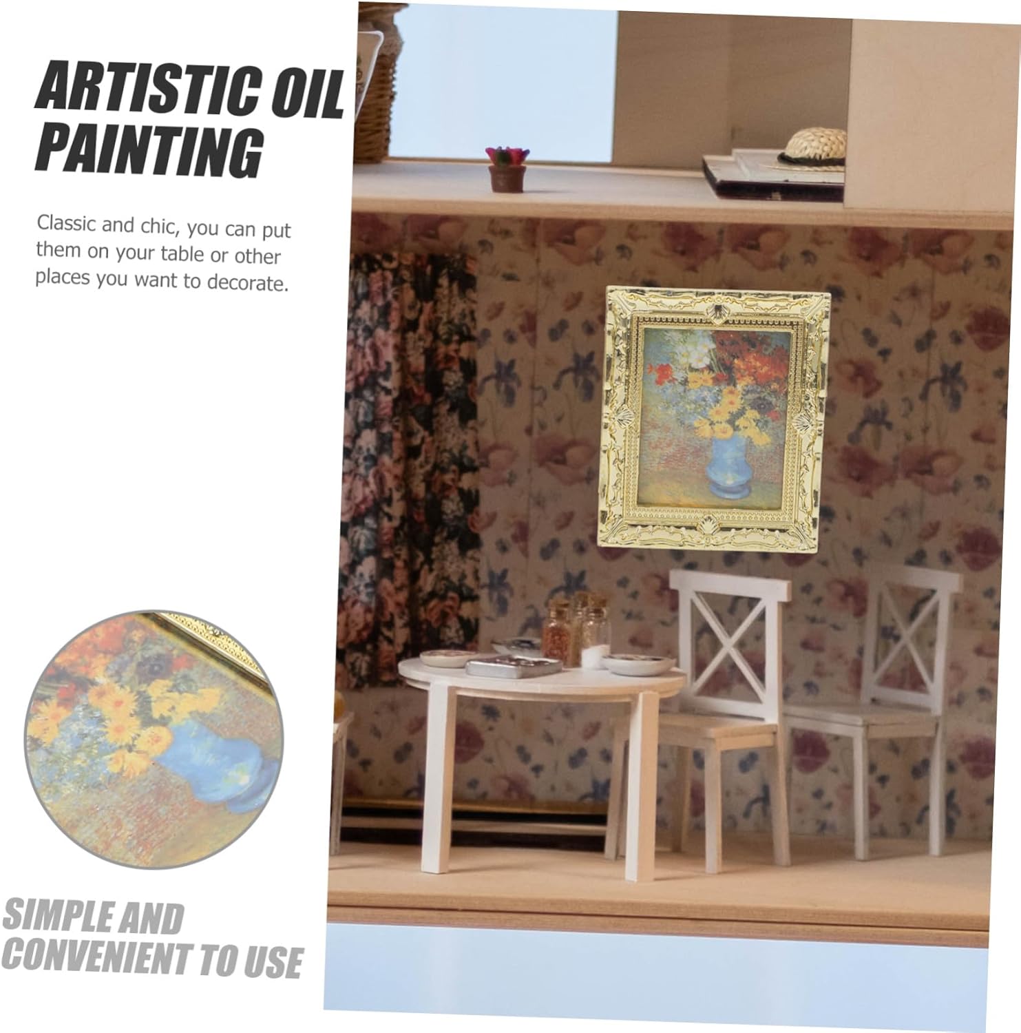 Accessori : delicato mini dipinto a olio, attraente e aggiungerà un'atmosfera piacevole mini casa, mini cose Mini oggetto : con eccellente fattura e design, dipinto a olio in miniatura è decorativo e delicato, cornici in miniatura per casa delle bambole Dipinti in miniatura per case delle bambole: eccellente fattura e superficie liscia e lucida, la pittura in miniatura è facile da pulire, pittura a olio per mini case Cornice per casa delle bambole in miniatura: come decorazione, dipinto in miniatura può essere posizionato sulla scrivania per decorare la mini casa, scrivania, tavolo, dipinto in miniatura Cornici per case delle bambole in miniatura: queste mini immagini sapore elegante possono aggiungere un tocco e bellezza , pittura per case delle bambole