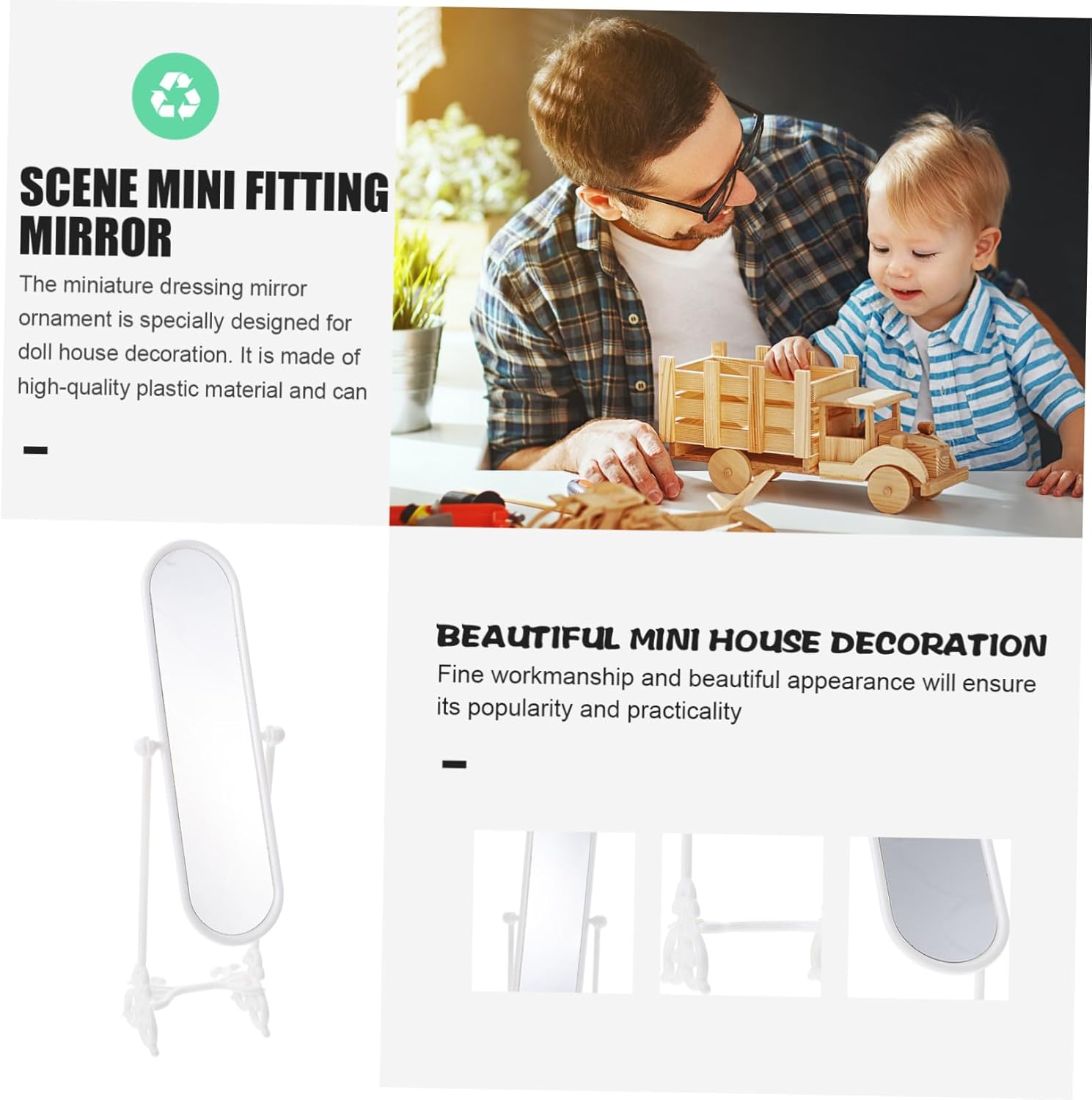 Casa delle bambole con specchio: adatta per soggiorno, camera da letto e può abbinarsi bene decorativo delle mini case, mini specchi Specchio per casa delle bambole: materiale e lavorazione pregiata, robusto e durevole a lungo, accessori per case in miniatura Decorazione per piccole case: decorazione multifunzionale può essere utilizzata come decorazione per la casa delle bambole e come oggetto di per foto, mini decorazione per la casa Specchio in miniatura per casa delle bambole: è adatto per l'arredamento della casa delle bambole, ottimo per i tuoi progetti da te, mini specchio da salone per casa delle bambole Specchio da pavimento per casa delle bambole in miniatura: dimensioni ridotte e peso leggero rendono facile da trasportare e riporre, arredamento in miniatura