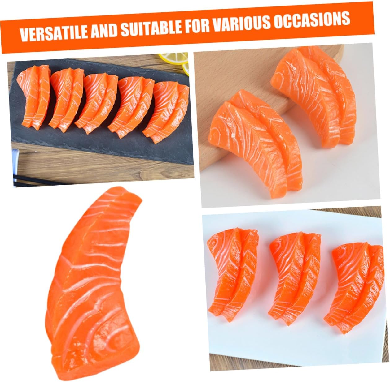 Cibo realistico: fette salmone può essere utilizzato per pubblicità, celebrazioni conferenze, ciondoli per l'arredamento della casa, decorazioni, cibo realistico Carne realistico: materiale in pvc è robusto e facile da curare e mantenere, piacerà a molti , cibo simulato Modelli carne : fette salmone ha una consistenza e un aspetto realistici, è vivido e realistico e decorativo, modelli alimentari Modelli carne artificiale: possono essere un giocattolo educativo precoce, oggetti per la fotografia, esposizione cibo, decorazione per matrimoni e feste, cibo artificiale da esposizione Cibo : fette salmone non si danneggia cambia colore, sicuro e protetto per una decorazione a lungo termine, cibo simulato