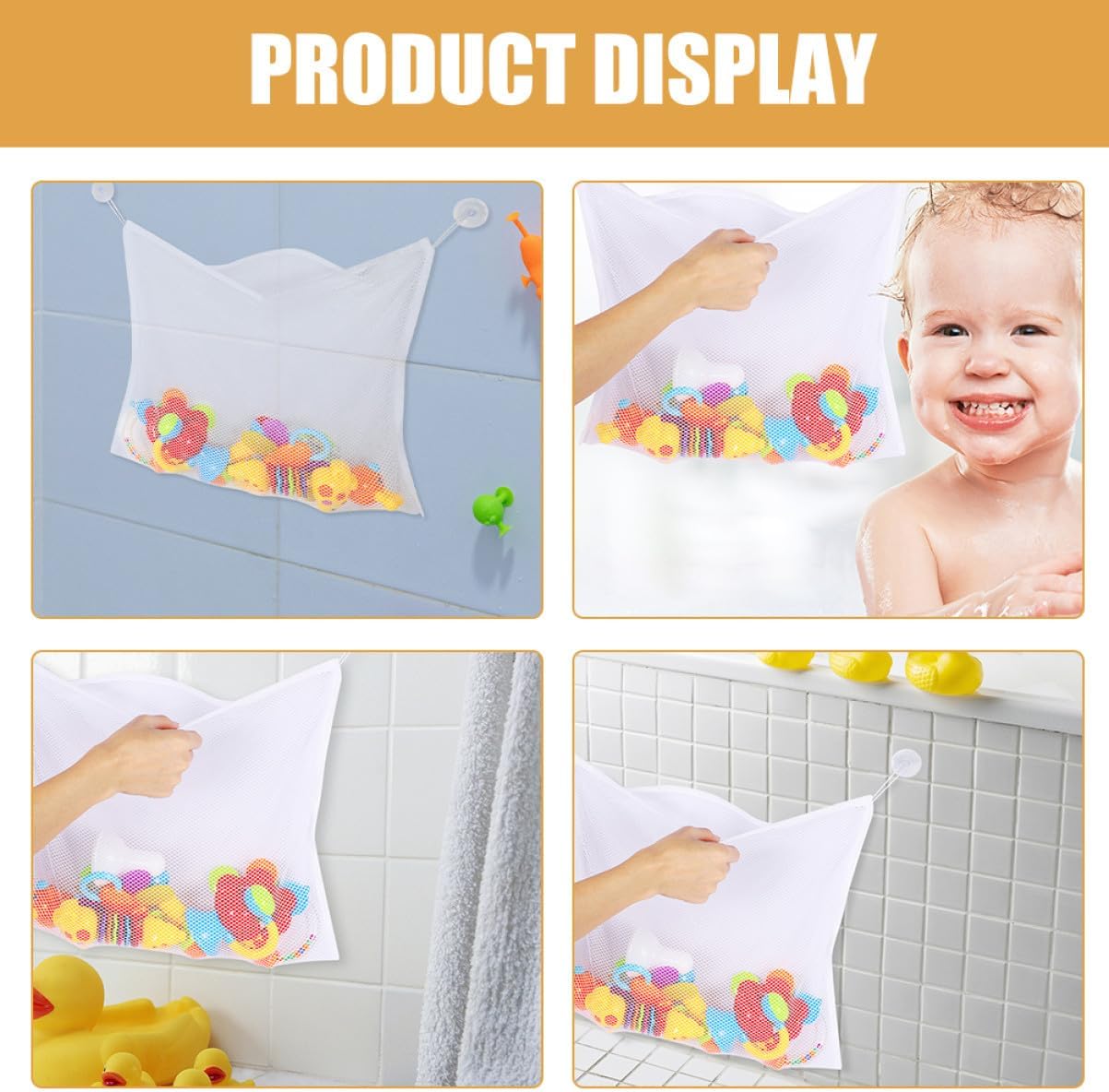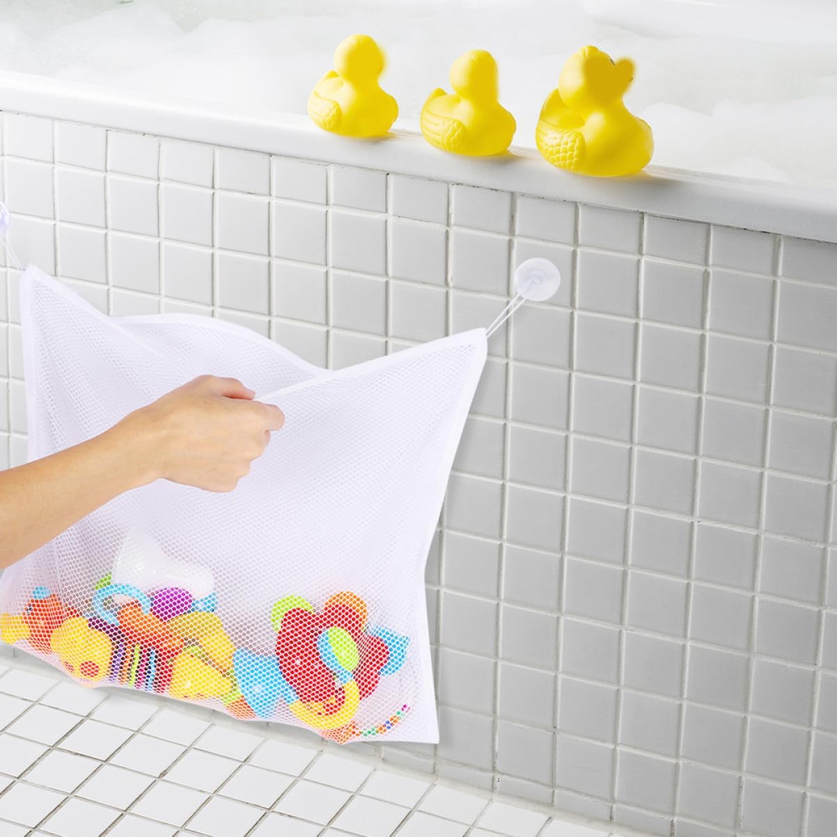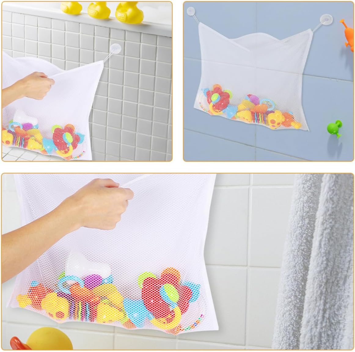Design a rete ventilata: realizzato con materiale a rete consente un'eccellente circolazione dell'aria, garantendo i giocattoli si asciughino completamente e rimangano puliti, contenitore per giocattoli da bagno per , giocattoli da bagno per Capacità: in contenere un'ampia giocattoli, rendendo momento del bagno più piacevole e organizzato, rete da bagno per giocattoli, giocattoli da doccia Ventose: dotato ventose robuste garantiscono una presa salda su superfici lisce, garantendo stabilità e affidabilità, borsa portaoggetti per giocattoli da bagno, borsa portaoggetti in rete per bagno Ampia capacità stoccaggio: offre sufficiente per riporre una varietà giocattoli, migliorando l'esperienza del bagno, giocattoli per vasca da bagno, rete giocattoli Giocattoli da bagno in rete: la borsa è dotata potenti ventose si attaccano saldamente alle pareti del bagno o alle vasche da bagno, assicurando rimanga in posizione, borse giocattoli