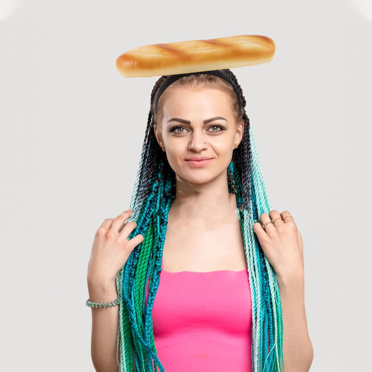 DIVERSE OPZIONI DI STILE: questa fascia distintiva può essere abbinata a una varietà di , rendendolo un accessorio versatile per look diversi ALLA MODA E DIVERTENTE: il design elegante di questa fascia lo rende adatto a vari eventi, aggiungendo un tocco di divertimento e moda al tuo outfit DESIGN CREATIVO: questa fascia per il pane presenta un design di baguette unico e creativo, rendendolo un accessorio straordinario per ogni occasione LEGGERO E COMODO: realizzato con materiali leggeri, questa fascia è comoda da indossare e rimane in posizione senza USO VERSATILE: per lo streaming live, i servizi fotografici e persino il lavaggio del viso, questa fascia è un'aggiunta versatile alla tua collezione di accessori