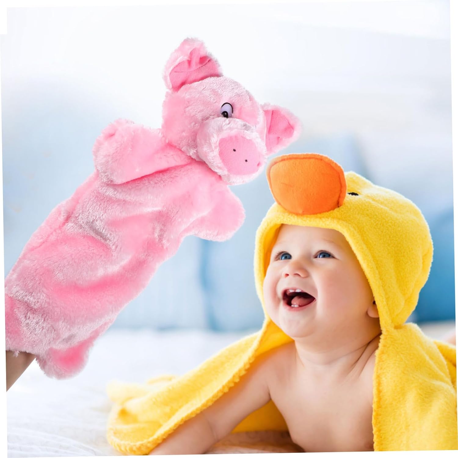Marionette giocattolo - Offre un tocco delicato e rilassante e un senso di comfort con il suo morbido peluche e materiale in cotone PP, Marionette per bambini per - Incoraggia la creatività e le abilità linguistiche attraverso la narrazione interattiva con questa marionetta a forma di cartone animato, Marionette interattive per narrazione di storie con personaggi animali - Comode da usare, ideali per interagire con i bambini e raccontare storie. Materiale morbido, più sicuro, più sicuro, più comodo, burattino da mano giocattolo per bambini per raccontare storie - morbido peluche e materiale in cotone PP per una sensazione confortevole durante il gioco, design unico e adorabile a forma di maiale, burattino da mano per burattino da mano decorativo - realizzato in morbido peluche e cotone PP, mentre l'uso del burattino da mano fornisce un tocco accogliente e rilassante, burattini da mano per