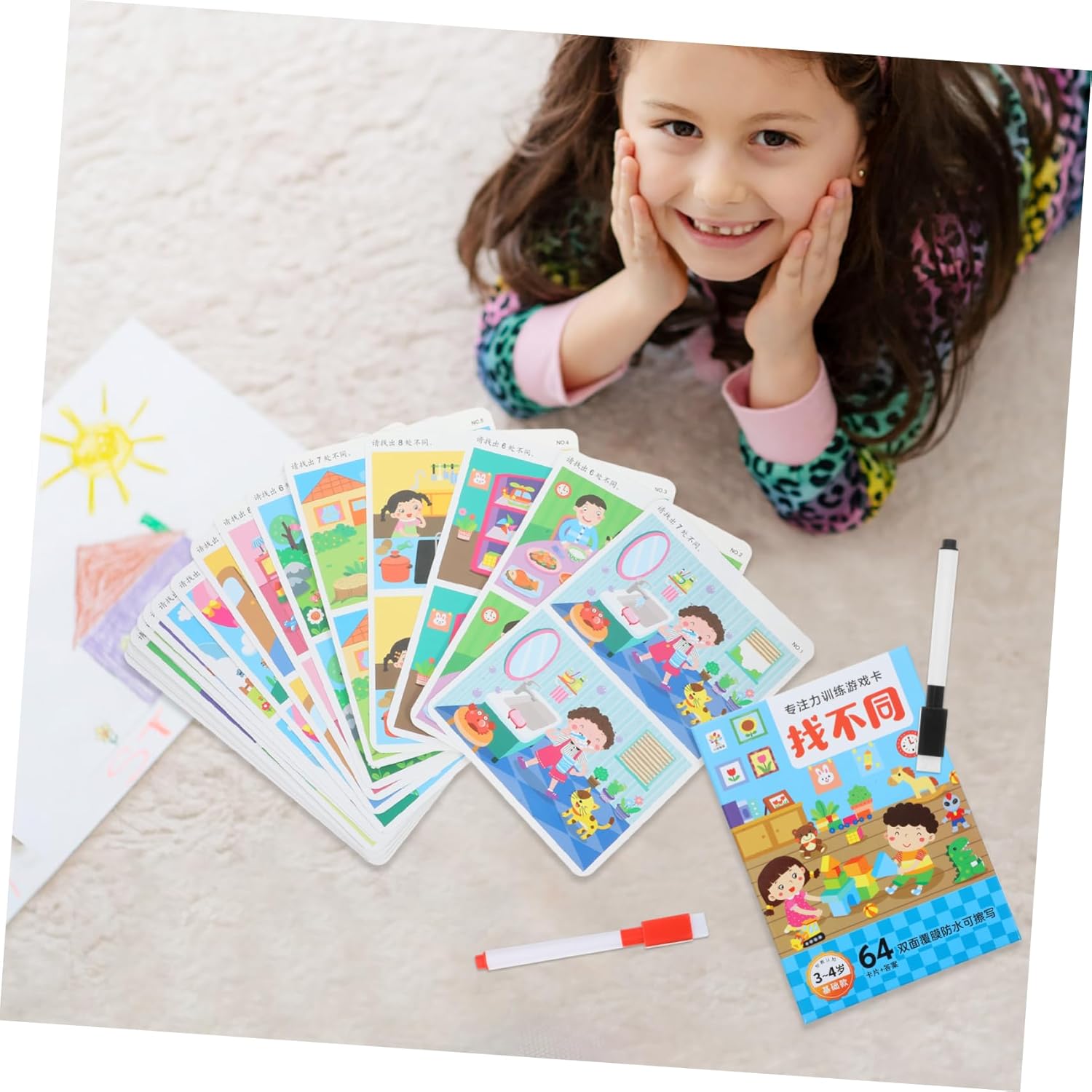 GIOCATTOLI PER BAMBINI - Questo giocattolo educativo è un ottimo modo per imparare e li incoraggia a esplorare diverse possibilità. Giocattoli educativi per bambini Puzzle con piccole carte - Cerchia le differenze, può sviluppare le capacità critiche e di osservazione dei bambini, migliorare la concentrazione, carte cognitive per allenare la concentrazione e il pensiero - Meraviglioso regalo di compleanno per bambini, giocattoli per feste, regali di Natale, premi giocattolo per giochi competitivi, giocattoli educativi per l'apprendimento precoce per bambini in età prescolare - Incoraggia le capacità critiche e logiche attraverso le sfide dei giochi di carte che possono usare, giochi di concentrazione giocattoli per bambini - possono allenare il loro pensiero abilità e migliorare le loro capacità cognitive, giocattoli di carta di carta