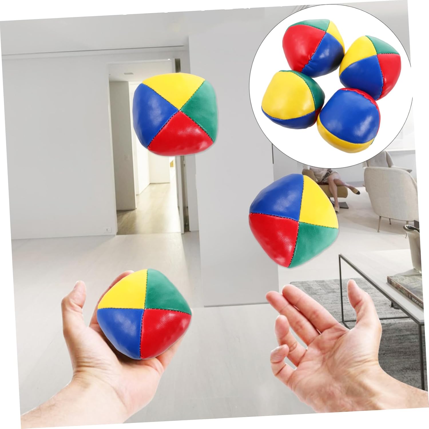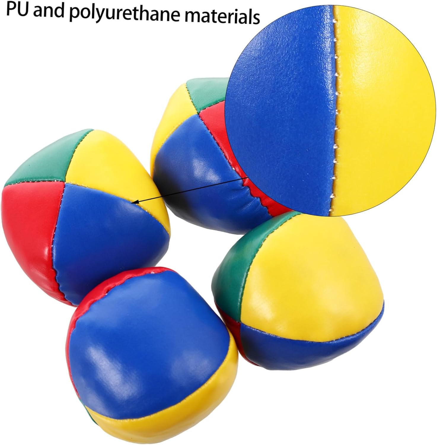 INTERATTIVO PER - Ogni campo da gioco è accuratamente cucito per garantire che non si rompa facilmente. Palla da giocoleria in PU - I 4 colori vivaci sono divisi in zone medie, sembrano belli e interessanti, palline da giocoleria a 4 pannelli per principianti - il materiale liscio offre una sensazione confortevole alla mano, accessori da giocoleria giocattolo da palla da circo - il design delle cuciture assicura che queste palle da giocoleria non vadano facilmente. Juggling Toys Palline da giocoliere da 5 cm - Ogni set contiene 4 palline da giocoleria multicolori in stile circo con 4 pannelli, giocattoli sportivi all'aperto