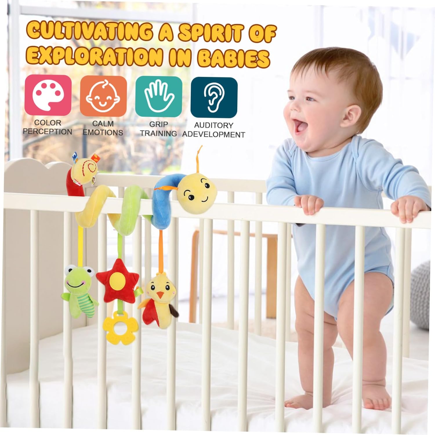 Comoda portabilità: le sue dimensioni compatte e leggere lo rendono facile da trasportare e riporre, giocattoli per bambini per ragazze, giocattoli a spirale per culle Il materiale utilizzato è cotone, il tessuto è sicuro per i bambini da coccolare e coccolare, giocattoli per passeggino da 6-12 mesi, giocattolo da appendere a spirale Pratico: questo giocattolo per bambini migliora l'interazione tra i genitori e il loro bambino, giocattoli per passeggini per bambini piccoli, Pregevole fattura: realizzato in cotone, materiale in tessuto, leggero è, con e buona fattura, giocattolo per passeggino, sviluppo giocattolo per bambini: questo è stato sviluppato appositamente per promuovere lo sviluppo uditivo e tattile. giocattoli per seggiolini auto per bambini piccoli, giocattoli per seggiolini auto per bambini